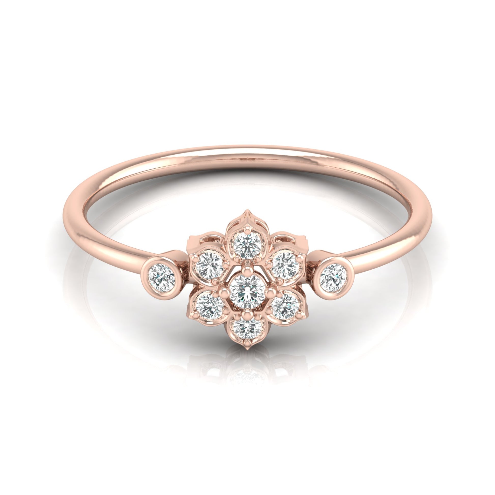 • 0.14 CT Round Cut Bezel Set Floral Wedding Ring Nature-Inspired Jewelry For Women's