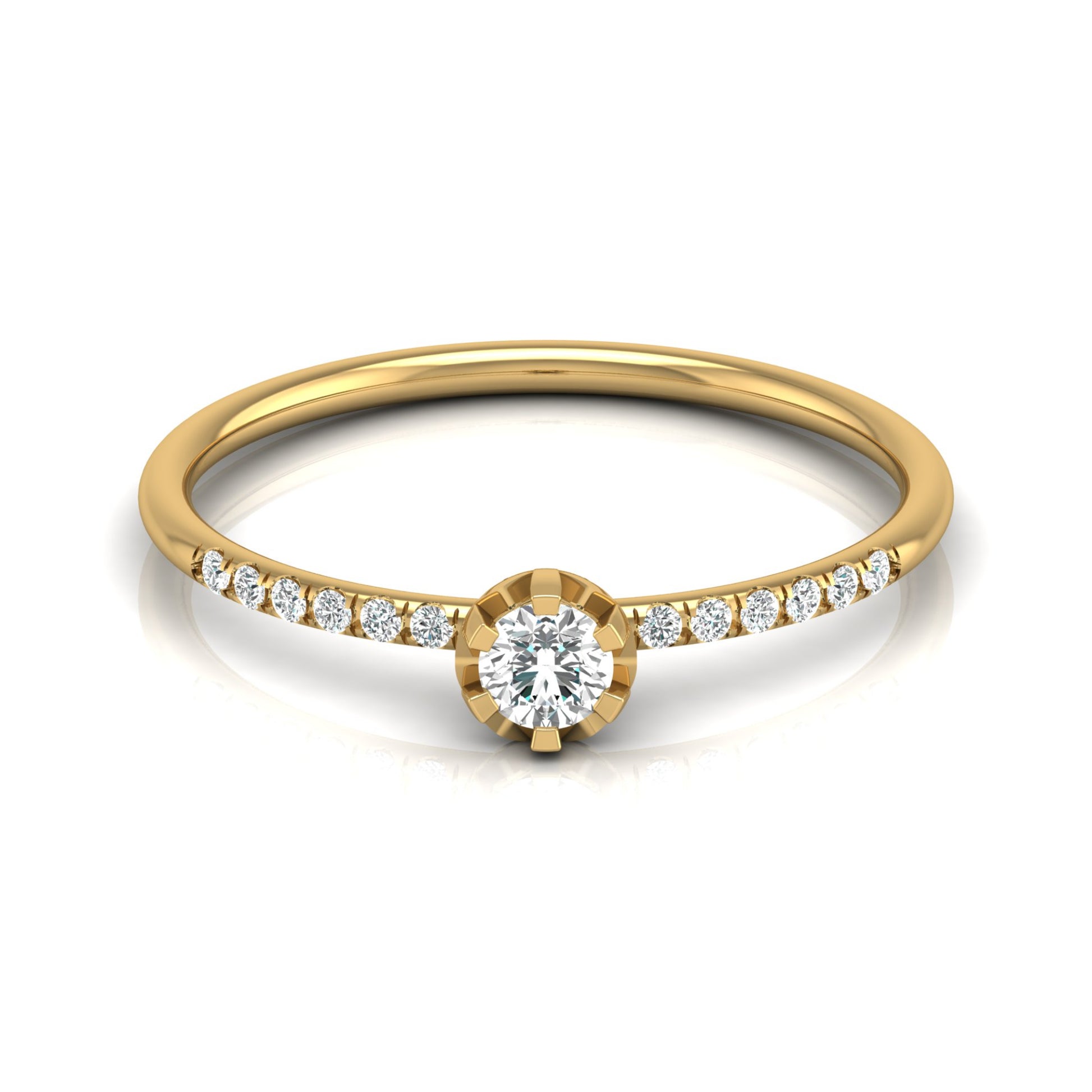 0.19 CT Round Shape Diamond Band Ring In 14KTSolid Yellow Gold Timeless Single Stone Beauty