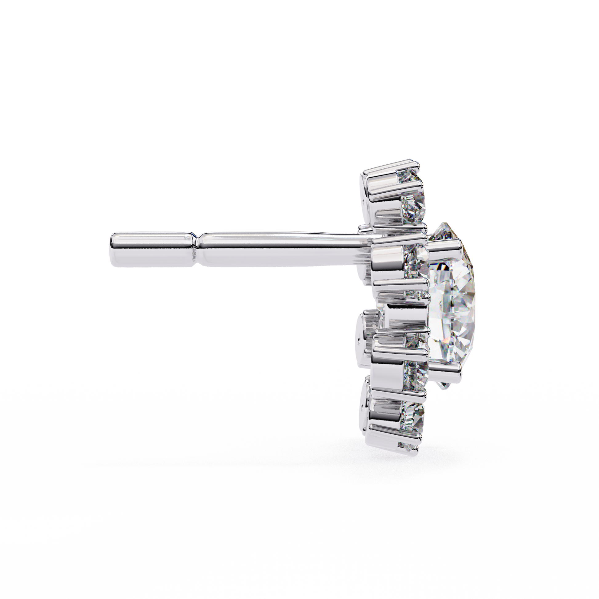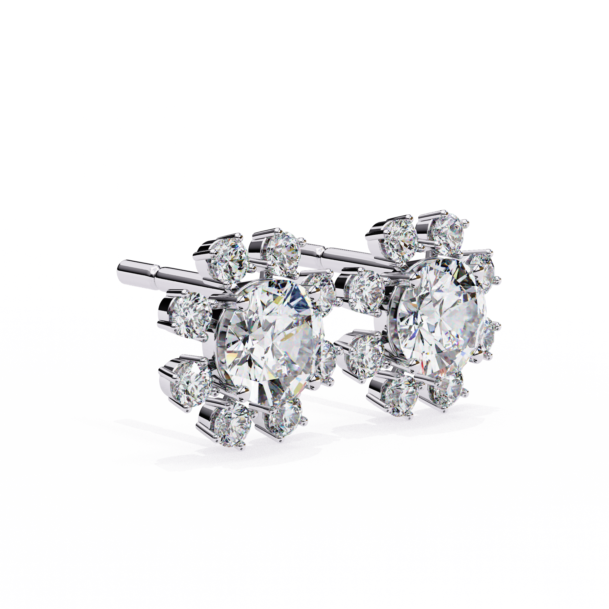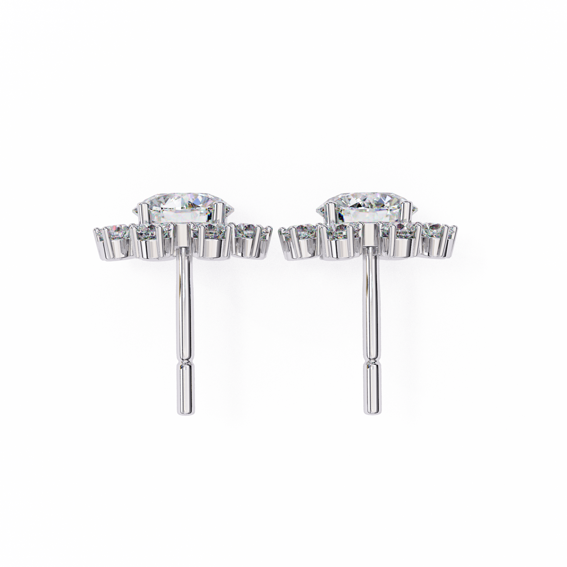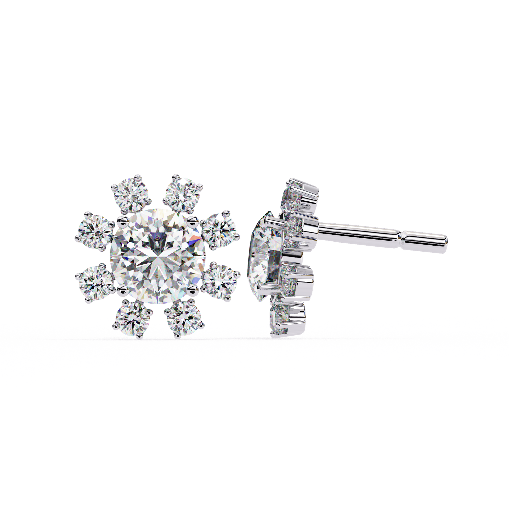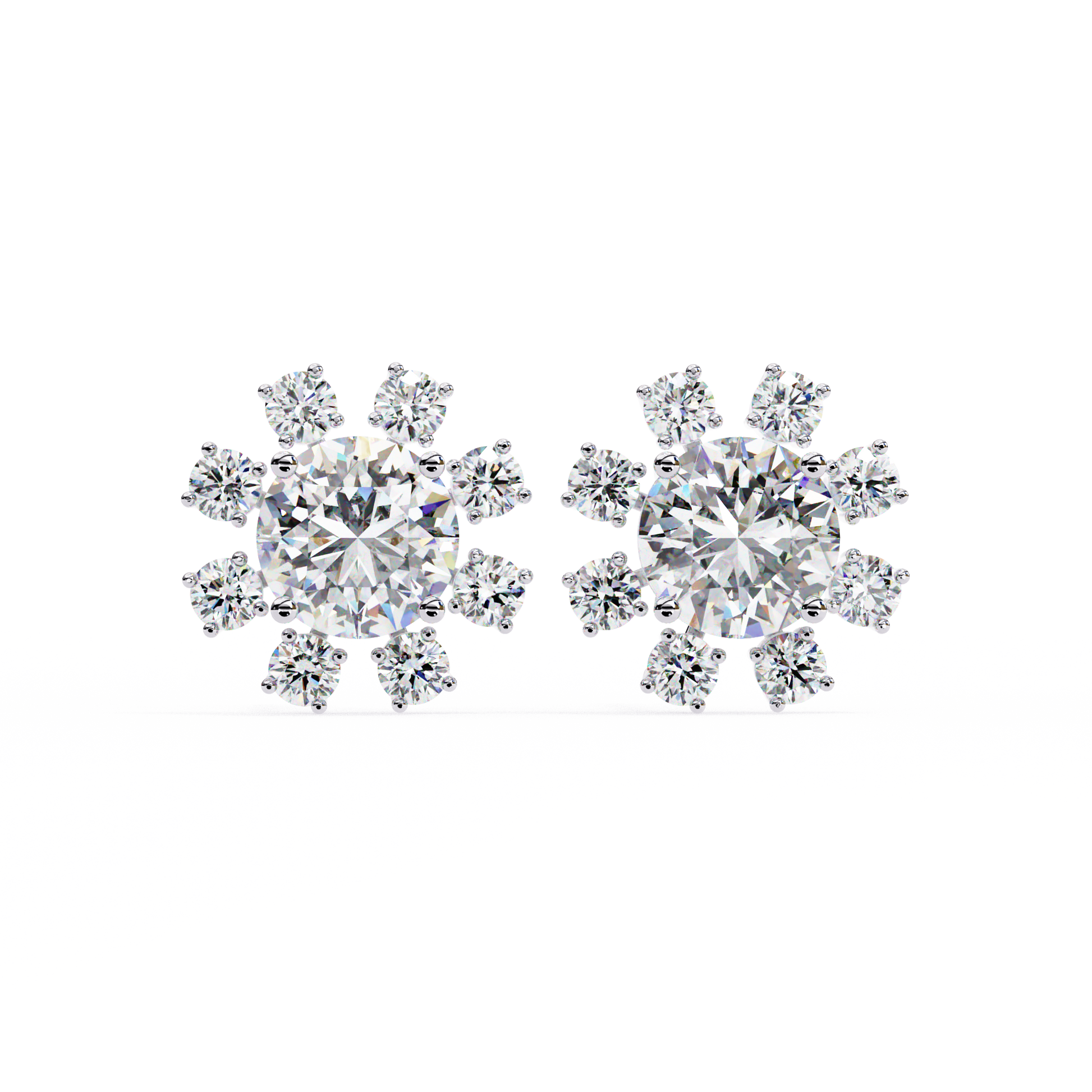 Romantic and timeless, these delicate flower-shaped stud earrings feature brilliant 1.22Ct round-cut lab-grown diamonds arranged in an 14k solid White Gold elegant vintage-inspired design. Each petal sparkles with exceptional brilliance, making them a perfect choice for engagements or as a meaningful gift. A beautiful blend of charm and sophistication that she will treasure forever.