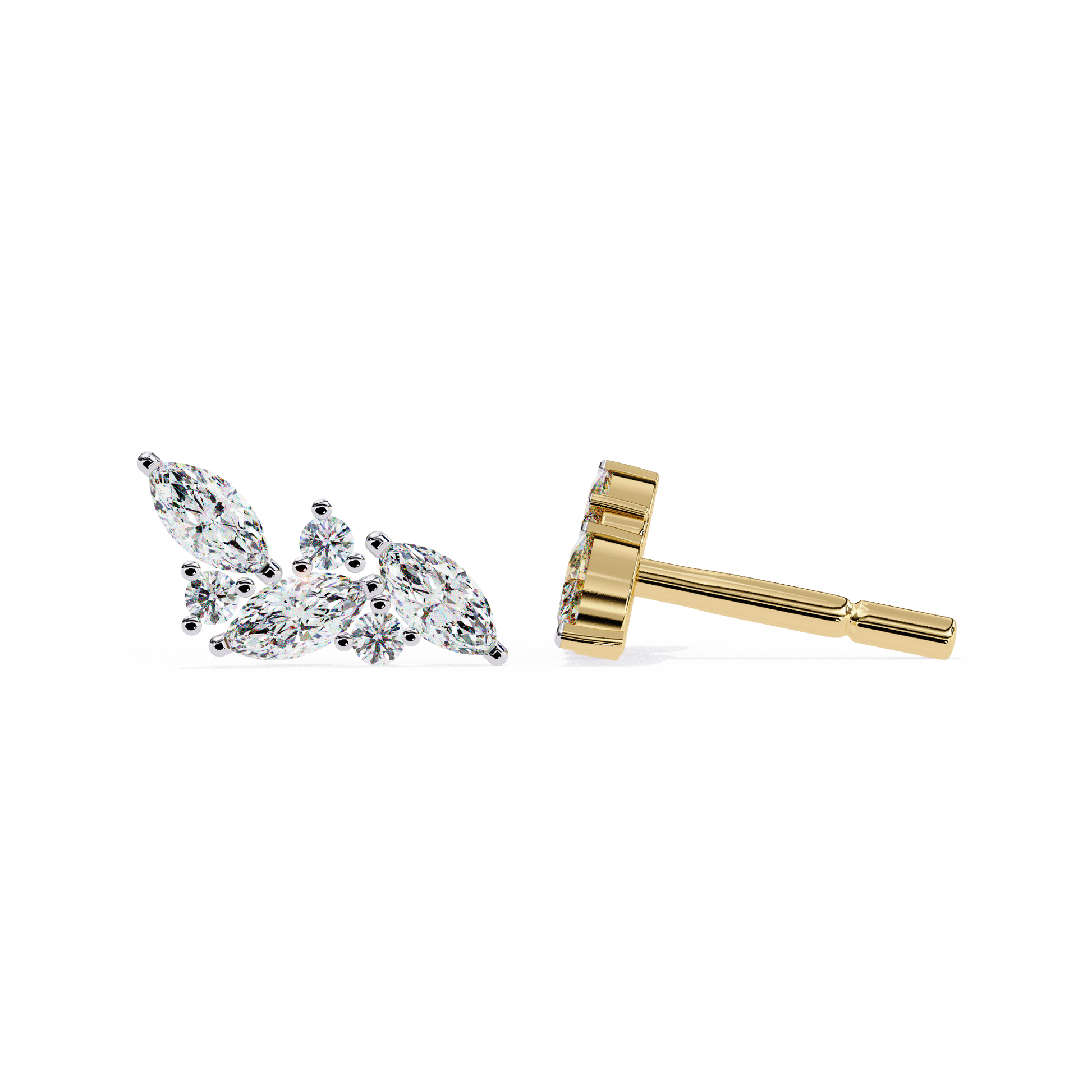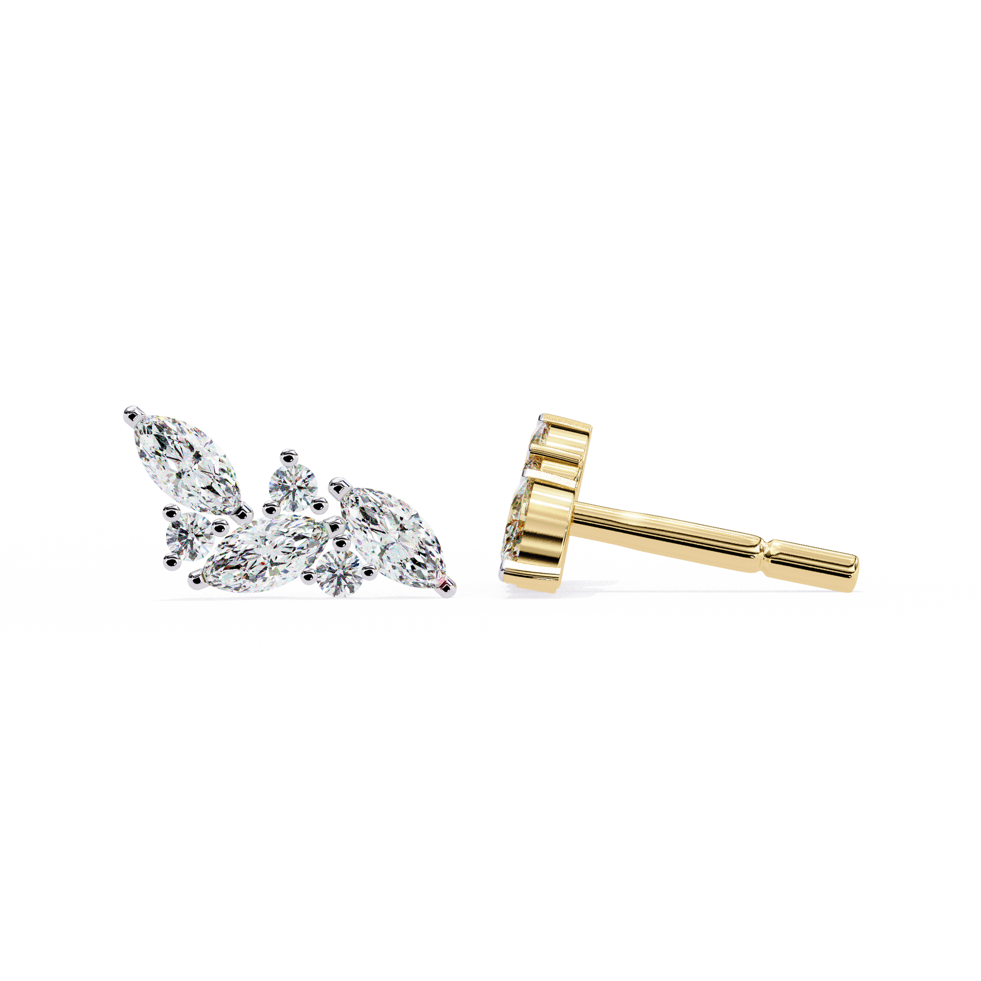 Inspired by the elegance of the Art Deco era, these unique stud 10k solid yellow gold earrings feature a striking combination of 0.35Ct marquise and round-cut top-grade lab grown diamonds in a secure prong setting. The antique-inspired design blends vintage charm with timeless sophistication, making them a perfect choice for an engagement or a meaningful gift she will treasure forever.