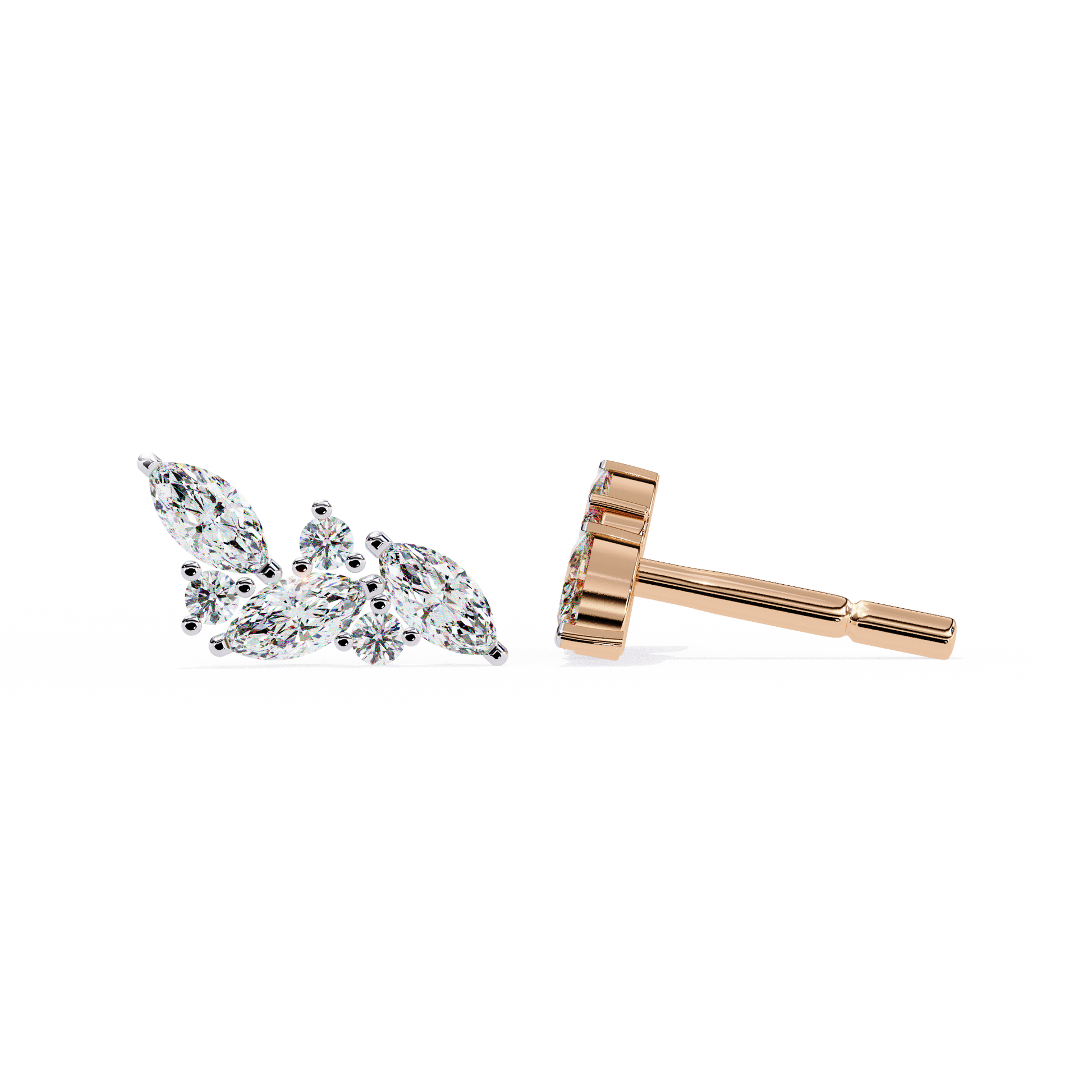 Marquise And Round Cut Top Grade Diamond Unique Prong Set Art Deco Antique Engagement Stud Earring For Her