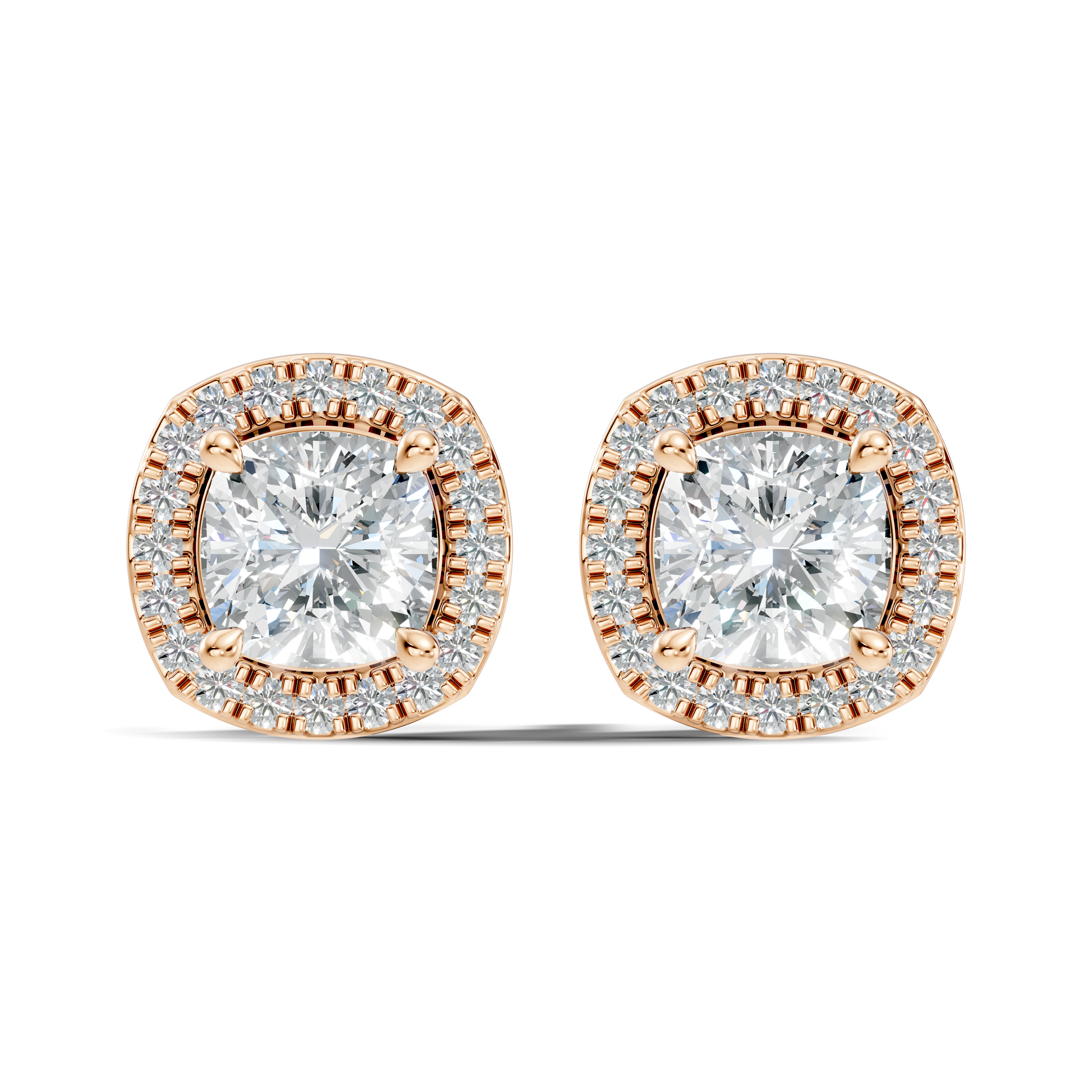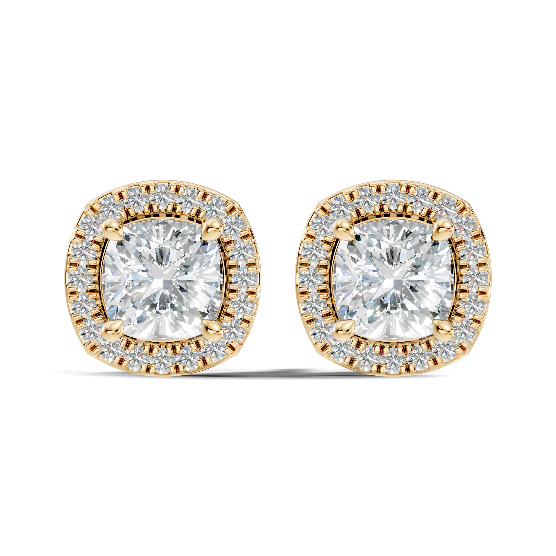 10k Solid Gold Stunning Cushion Square & Round Shape Studs Lab Grown Diamond Earrings For Women