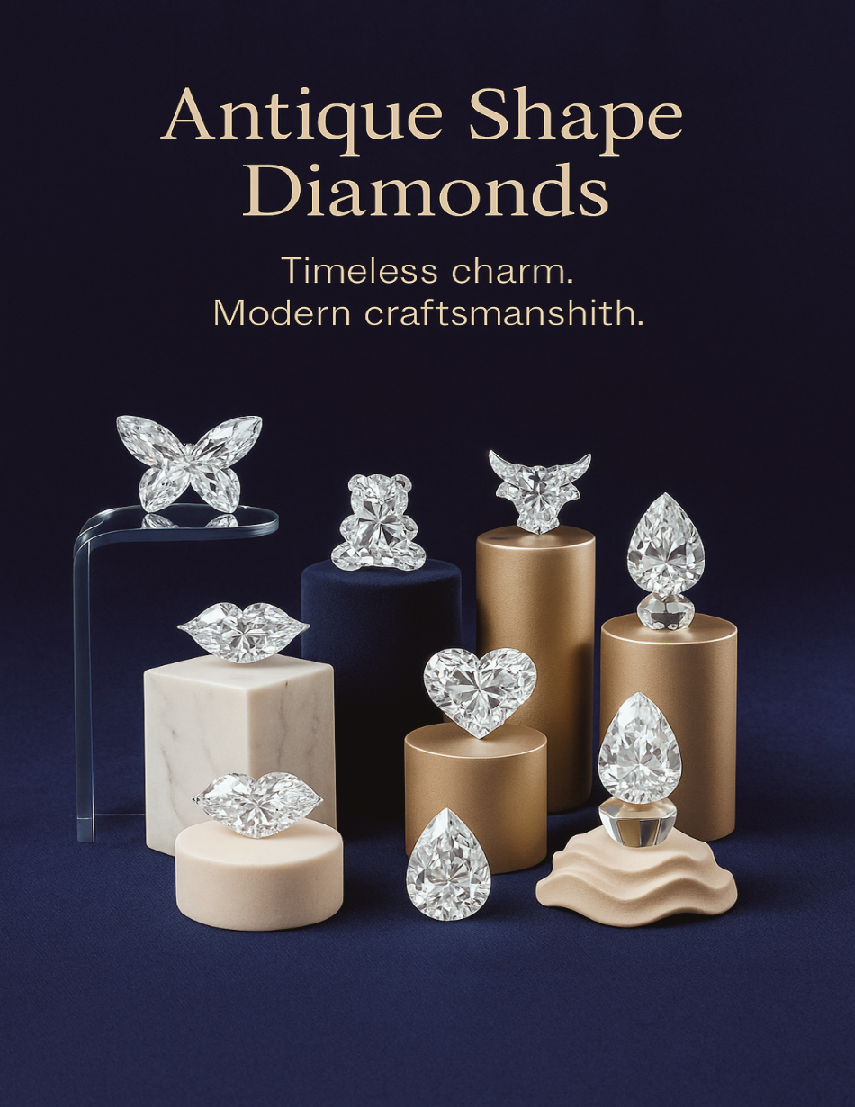 Hexagon Step Cut Antique Diamond , Elegant Vintage Cluster Classic Lab Grown Diamond, Use For Necklace