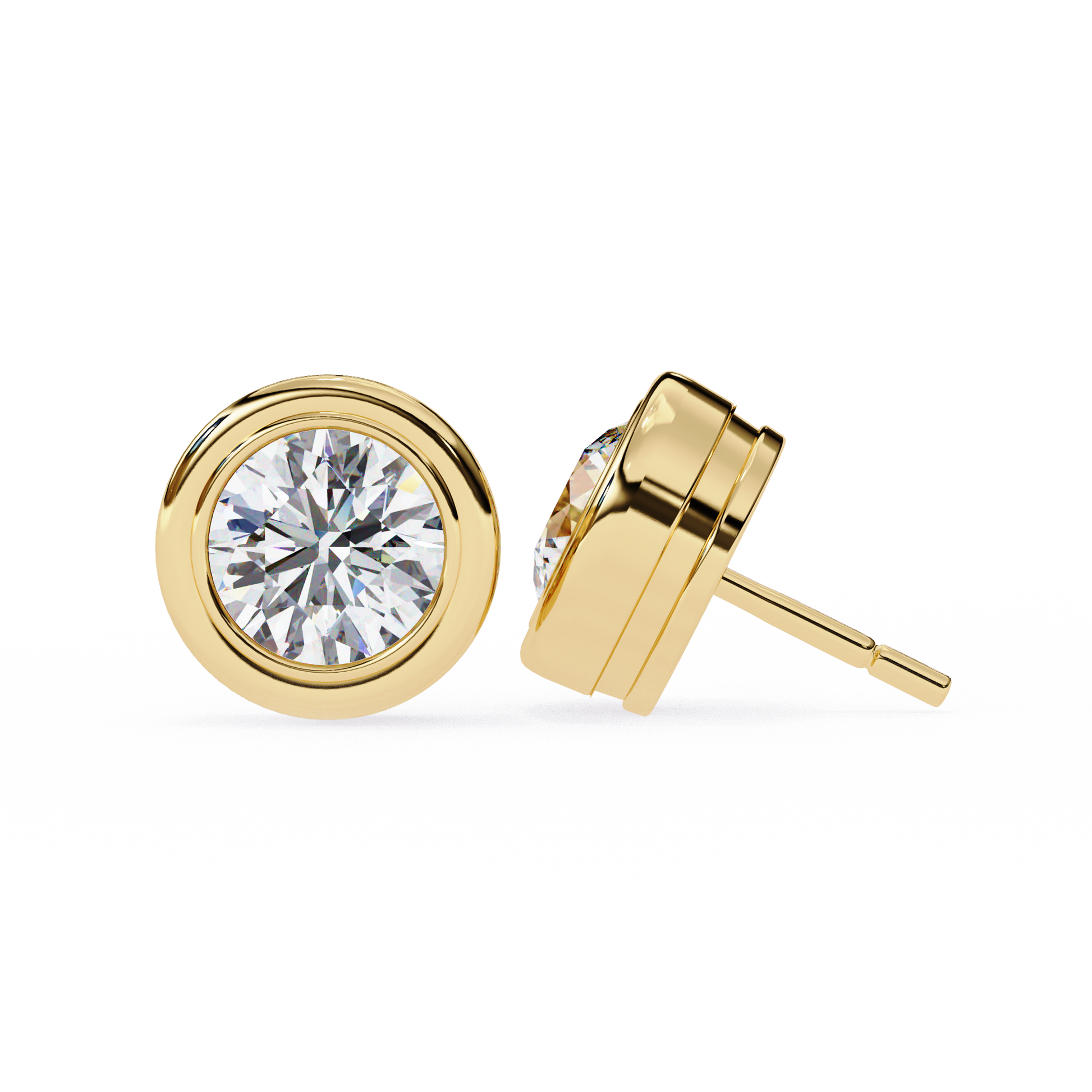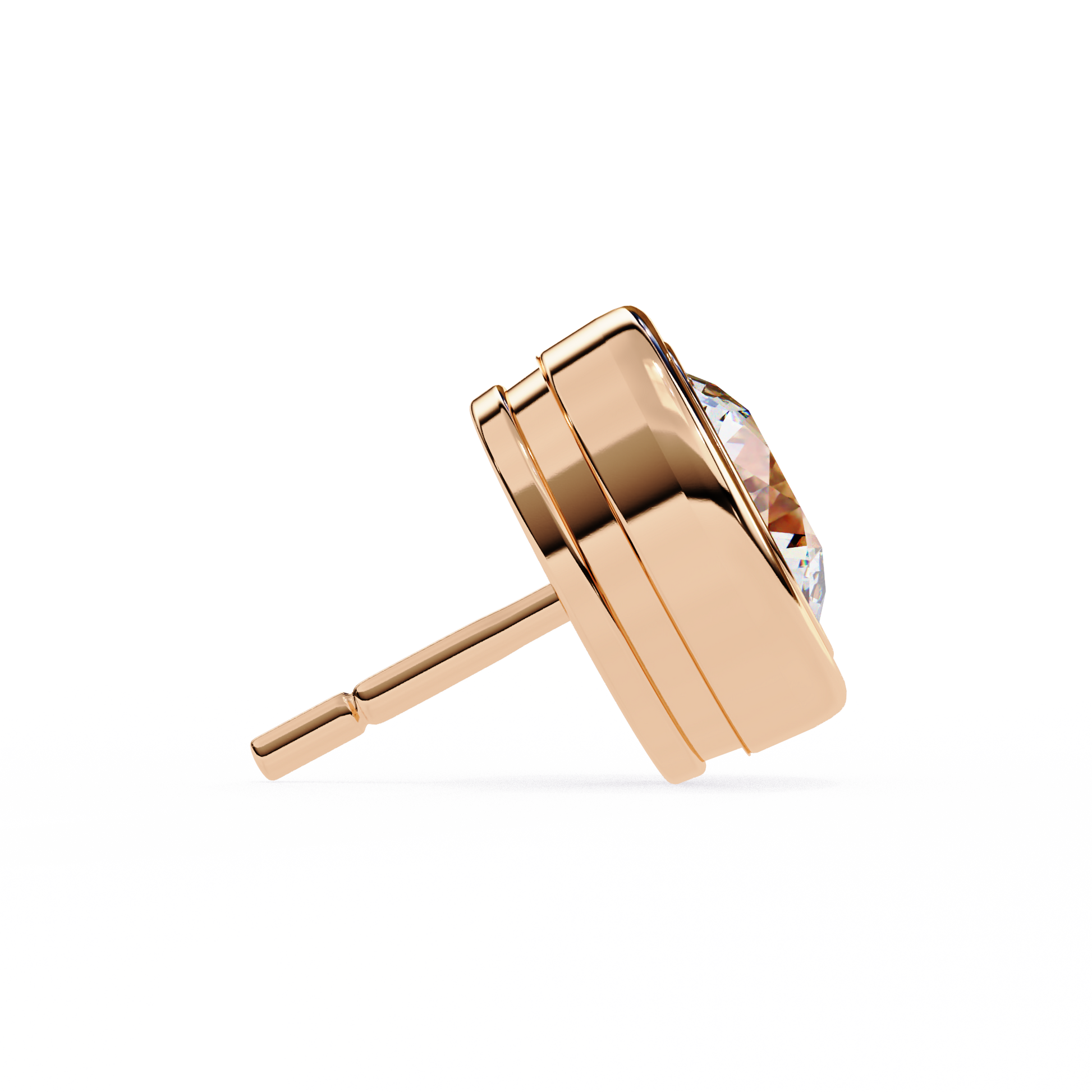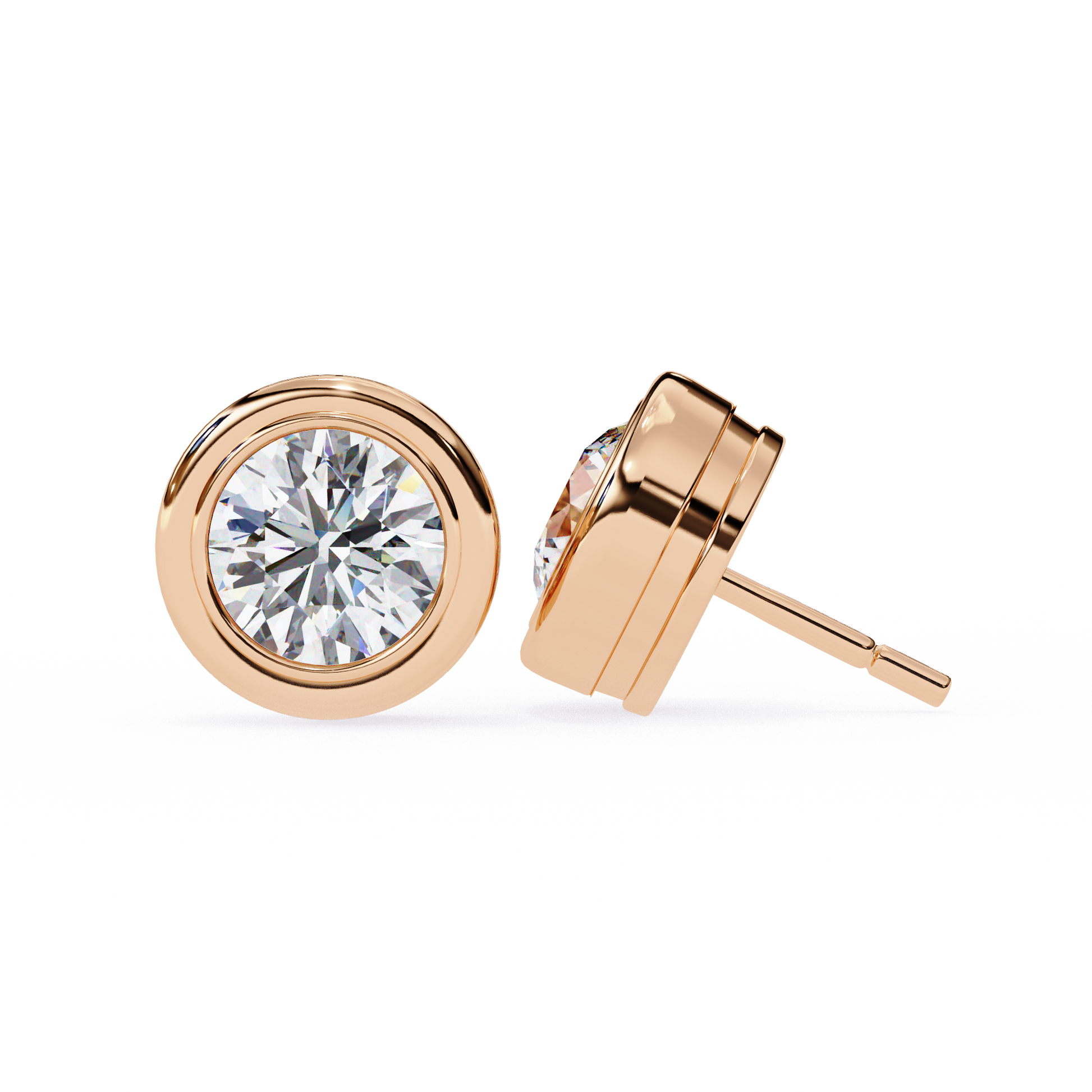 Timeless and refined, these elegant 2.57Ct round-cut lab-grown diamond stud earrings are crafted in a sleek bezel setting that highlights the diamond’s brilliance from every angle. The warm glow of 18K rose gold perfectly complements the sparkling solitaire design, creating a dainty yet sophisticated look. Ideal for daily wear or special occasions, these earrings are a classic addition to any jewelry collection