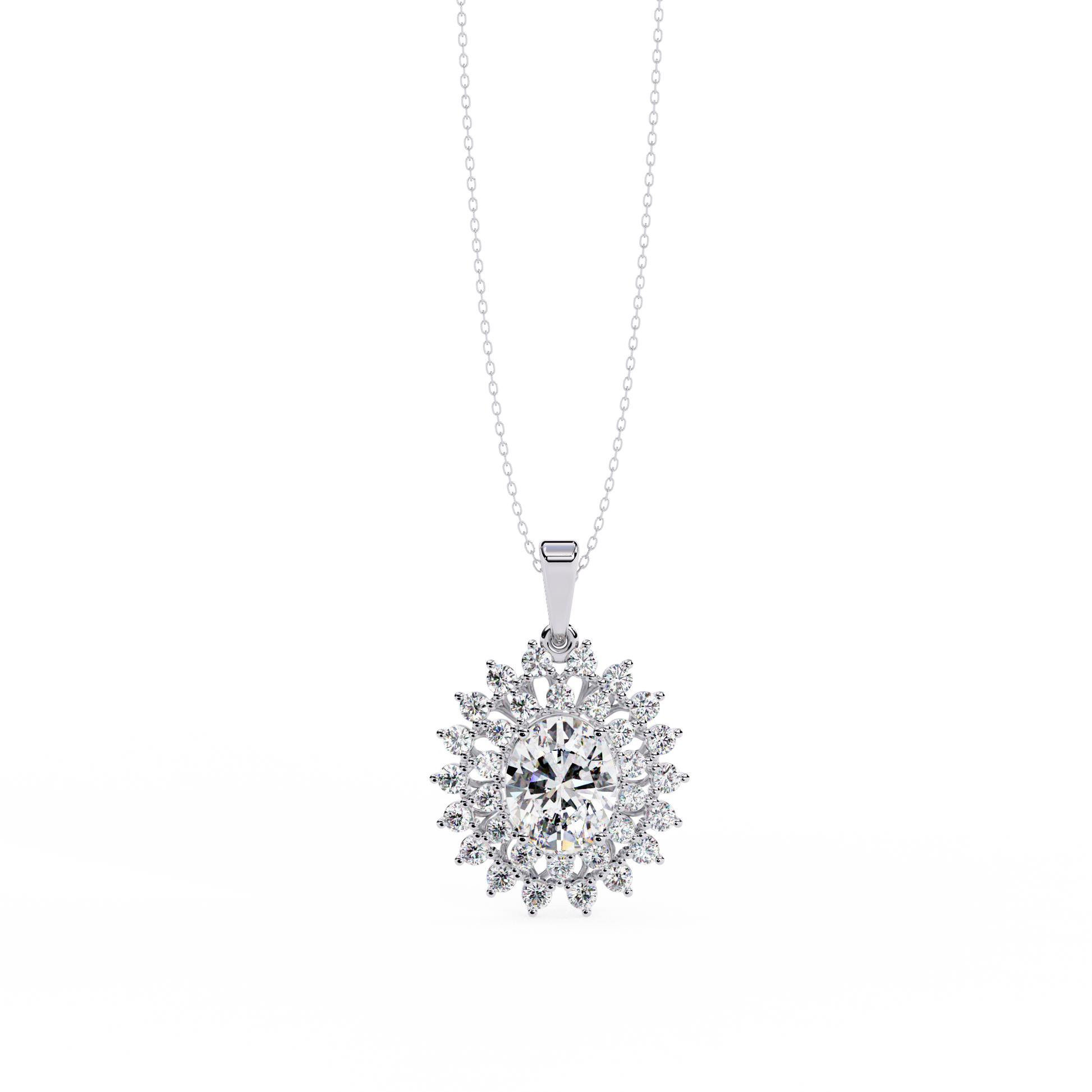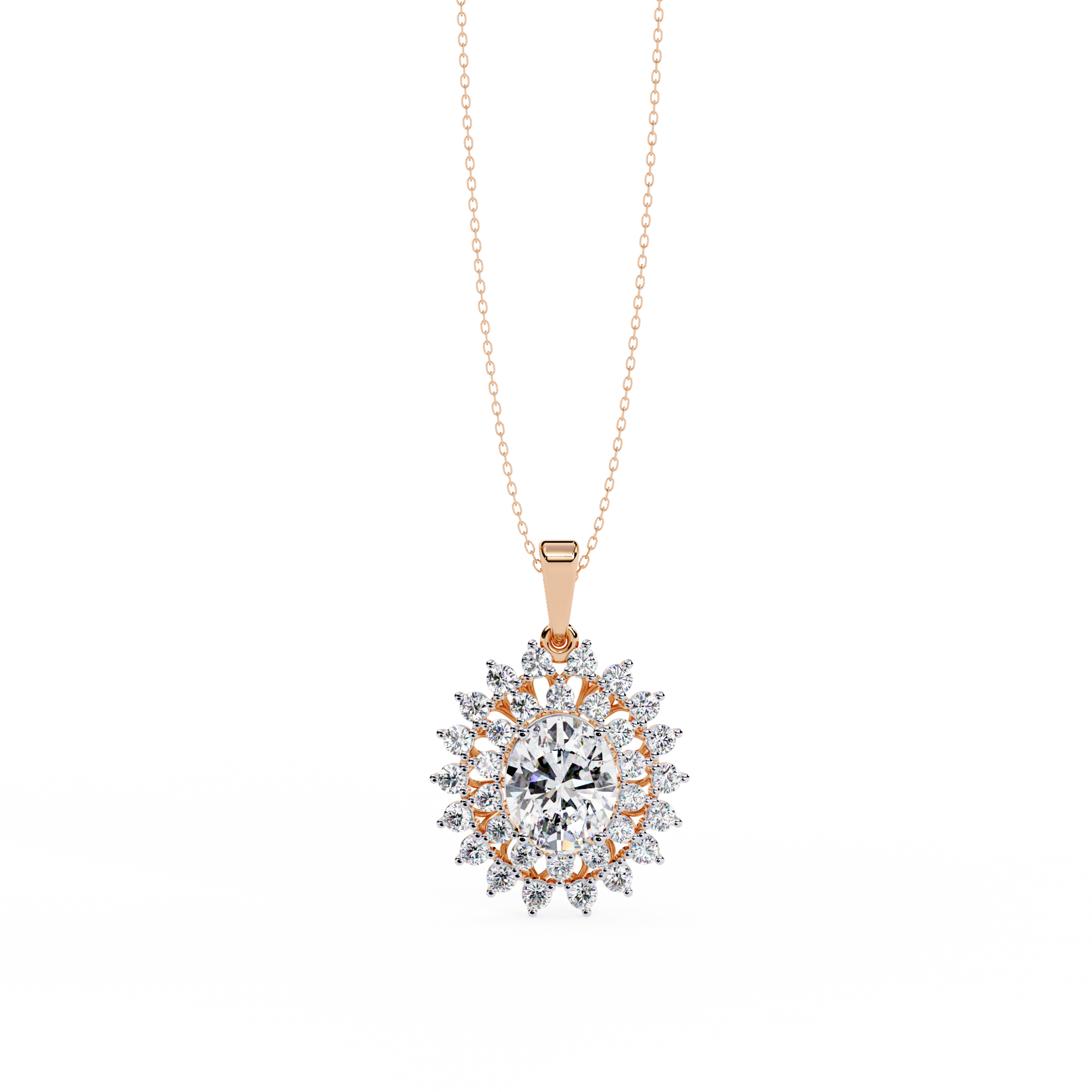 Add a touch of elegance to your collection with this stunning 3.41 CT Oval and Round Cut Lab-Grown Diamond 14k Rose Gold Pendant Necklace. The dainty design is perfect for her, making it a classic piece for any occasion. Surprise your mother with this timeless gift on your anniversary.