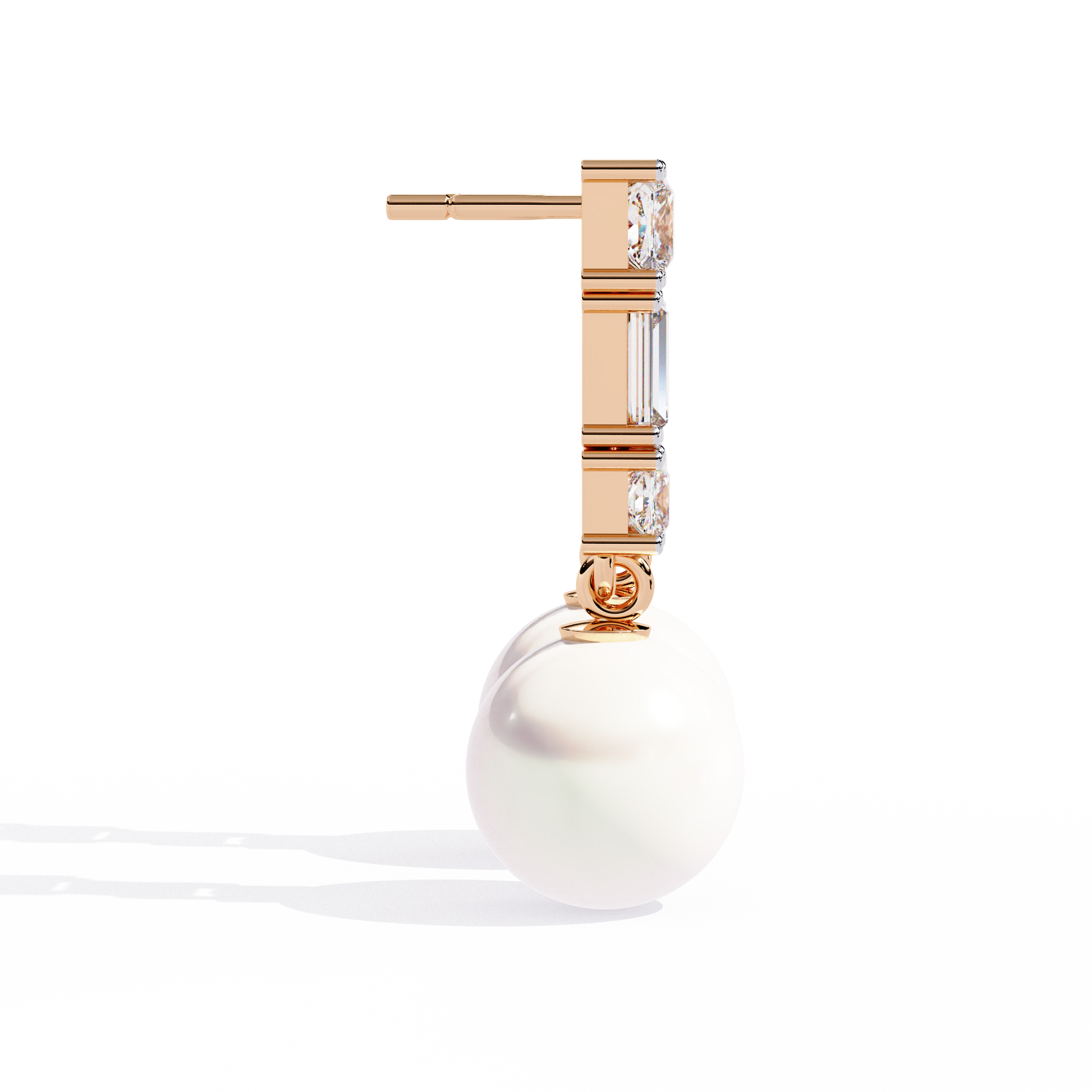 Prong Set 2.08Ct Baguette And Princess Cut Diamond Pearls Minimalist Classic Bridal Drop Earring For Her