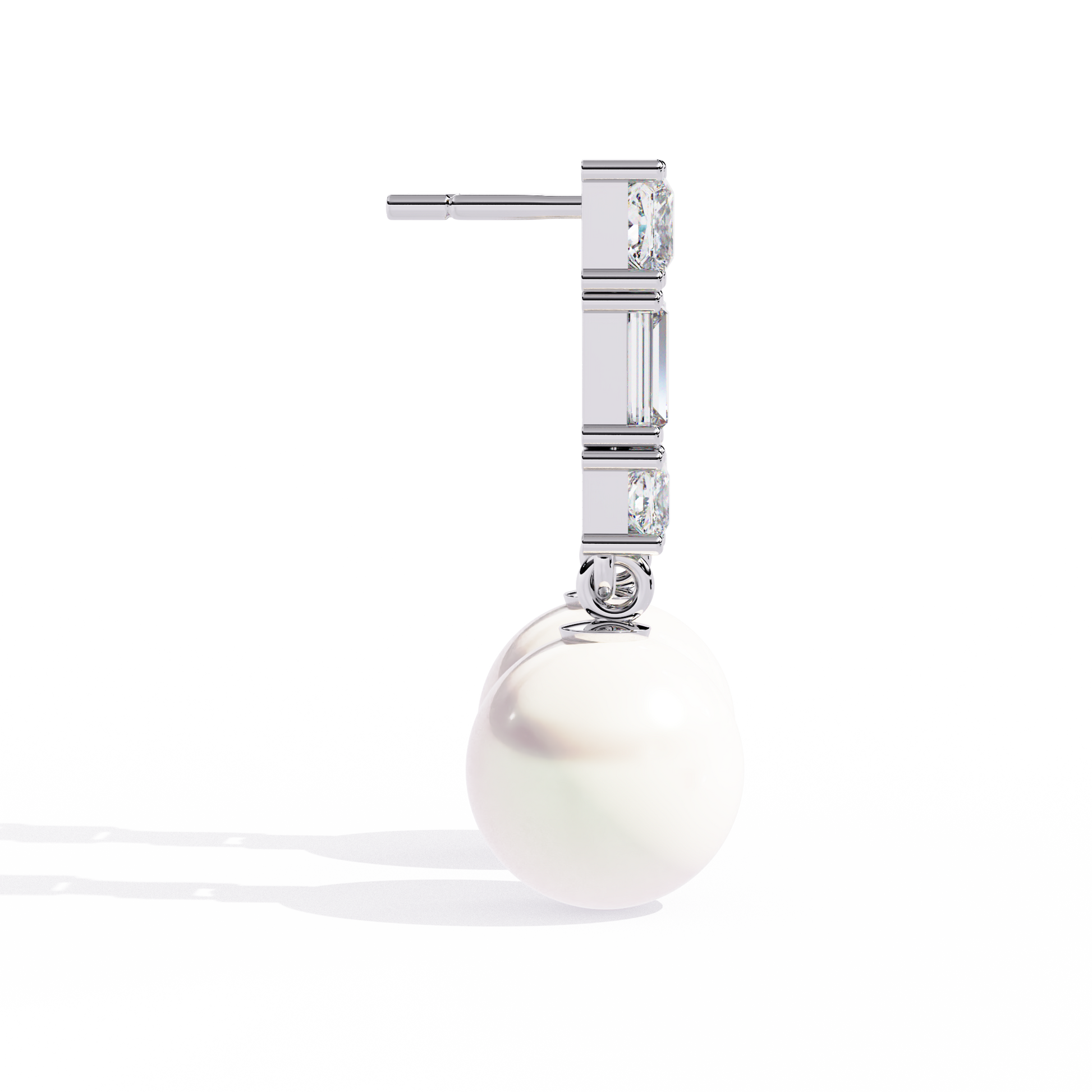 Exude elegance on your special day with these 2.08Ct prong set baguette and princess cut lab grown diamond drop 10k solid white gold earrings, beautifully accented with lustrous pearls. Their minimalist yet classic design makes them the perfect choice for bridal wear, while their timeless sparkle ensures they remain a cherished keepsake. A graceful and luxurious gift for her.