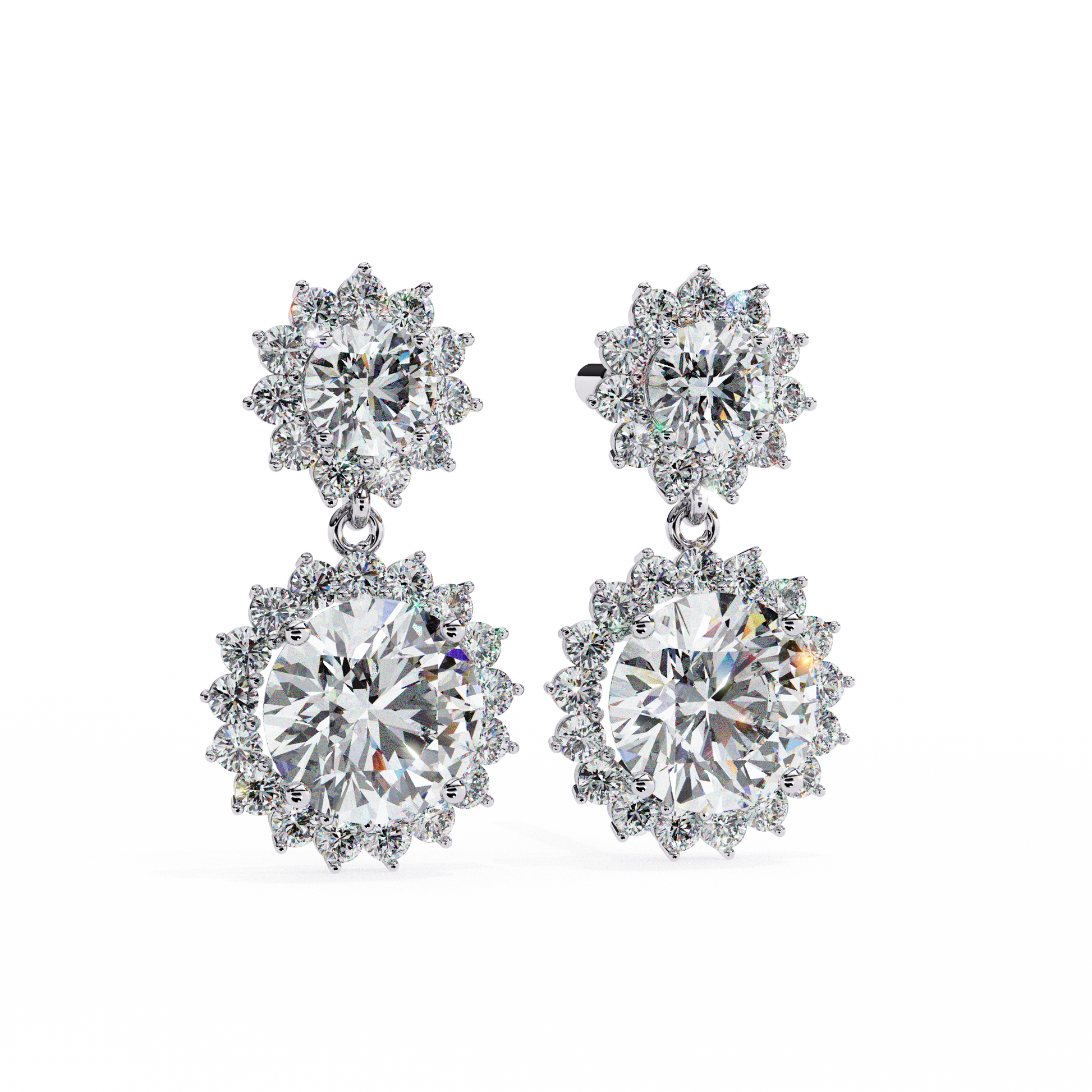 1.37Ct Round Cut Lab Grown Diamond Flower Shape Antique Elegant Classic Dainty Perfect Drop Earring For Gift