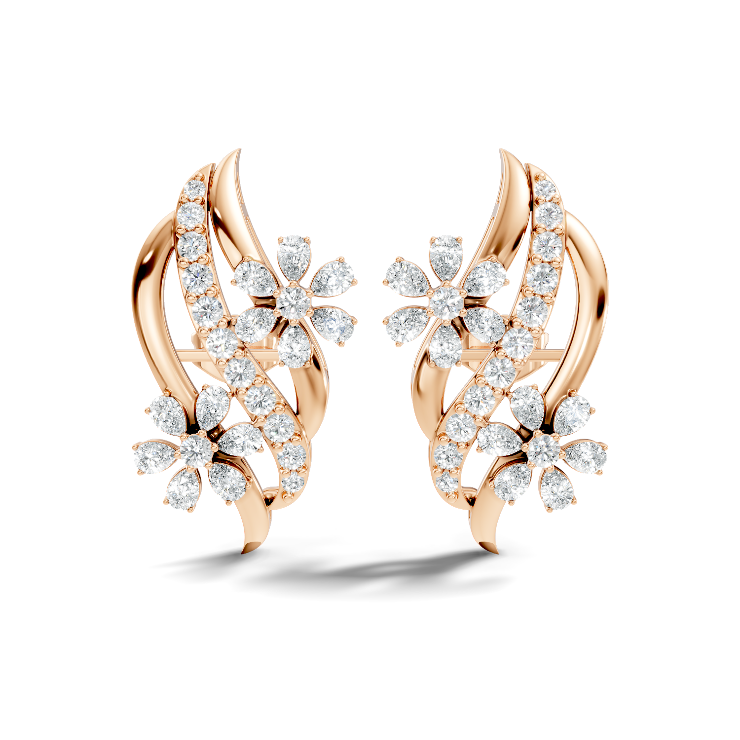 • 3.80 Ct Pear & Round Shapes Elegance Unique 18k Solid Gold Diamond Earrings For Her