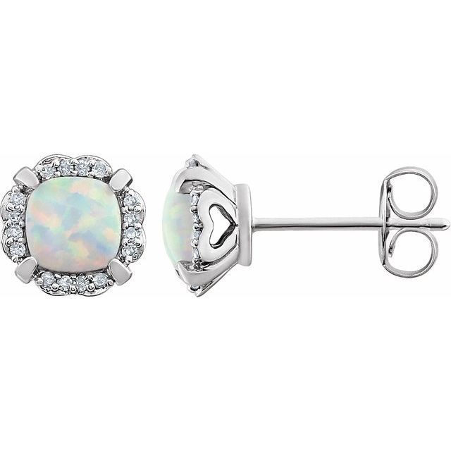 • 14K White Lab-Grown Opal & 1/10 CTW Natural Diamond Earrings