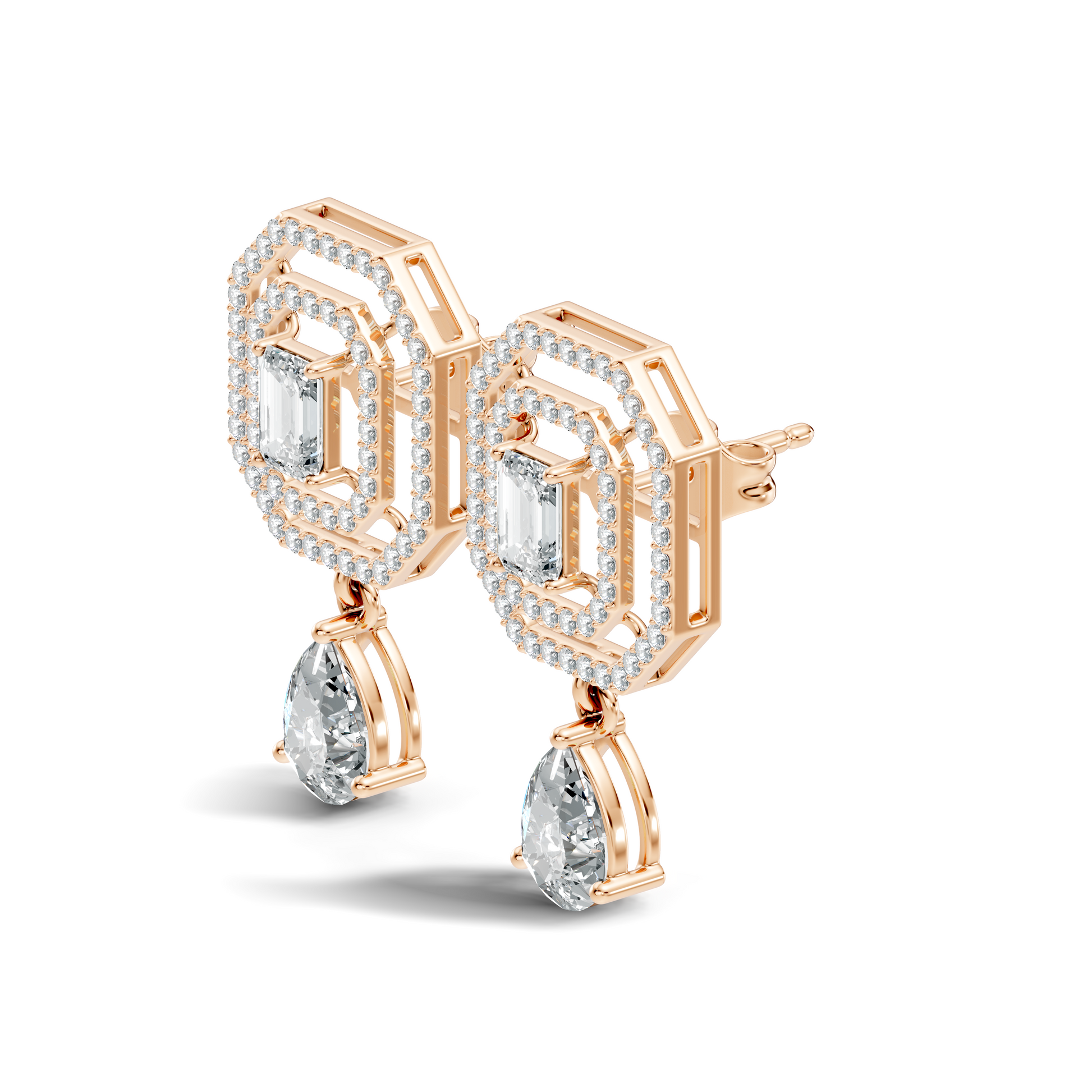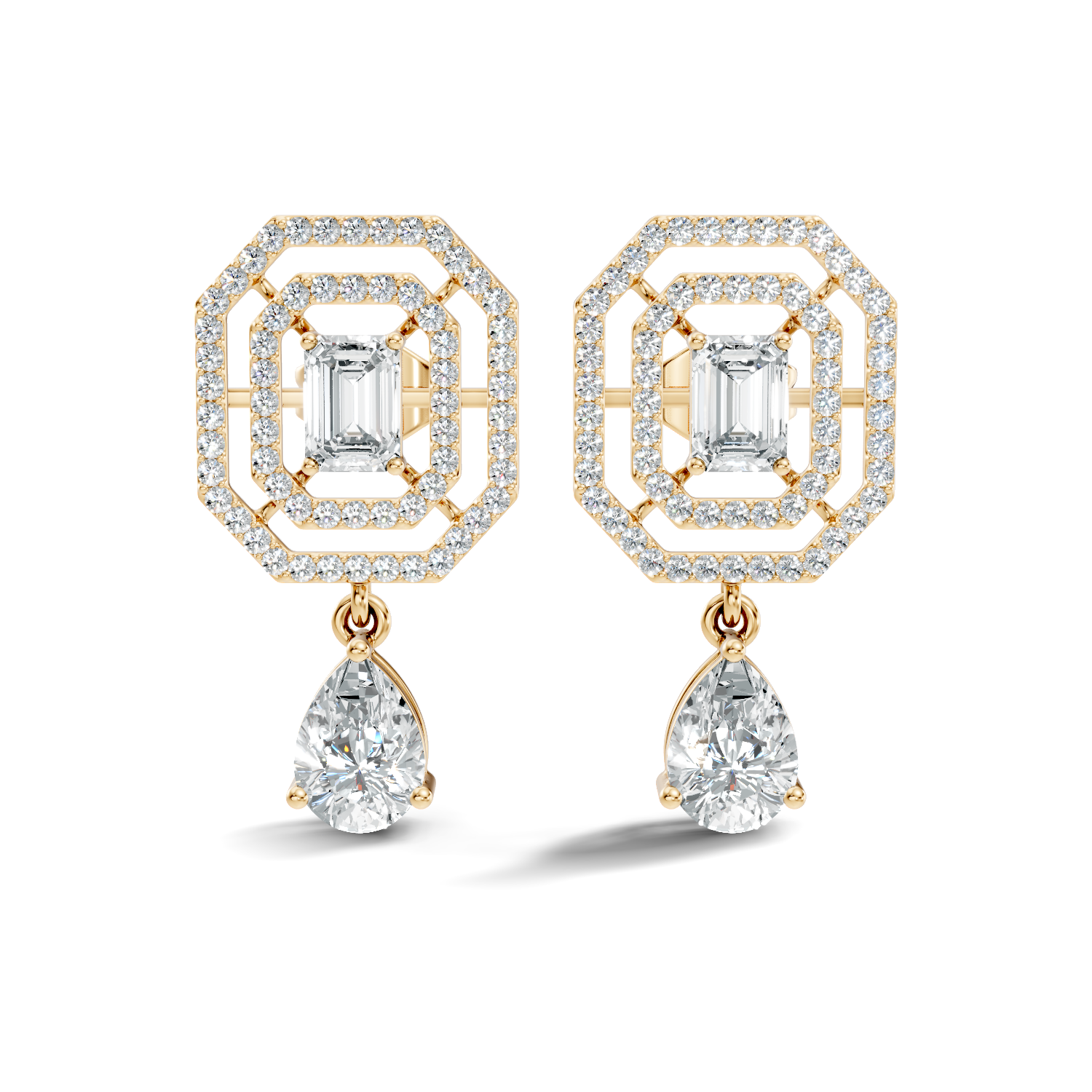 Elegant 2.48 Ct Emerald Cut Diamond Earrings with Pear Drop Accent In 14K Solid Gold