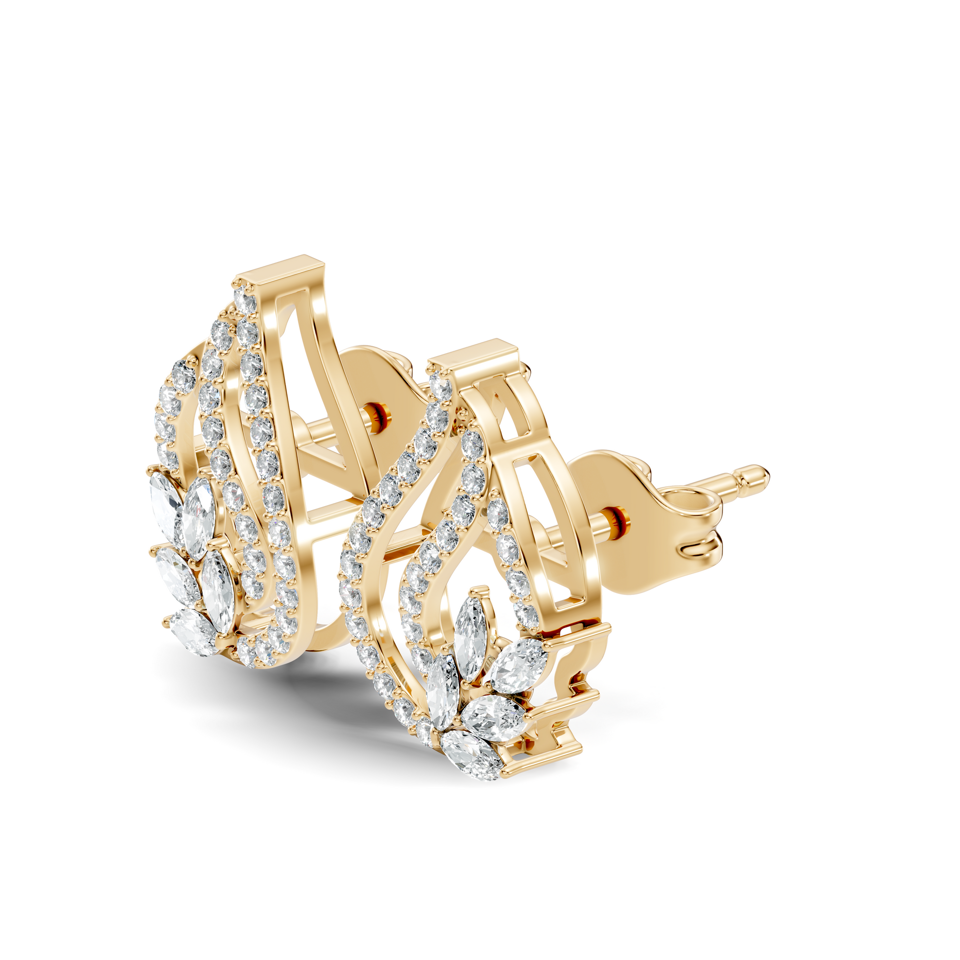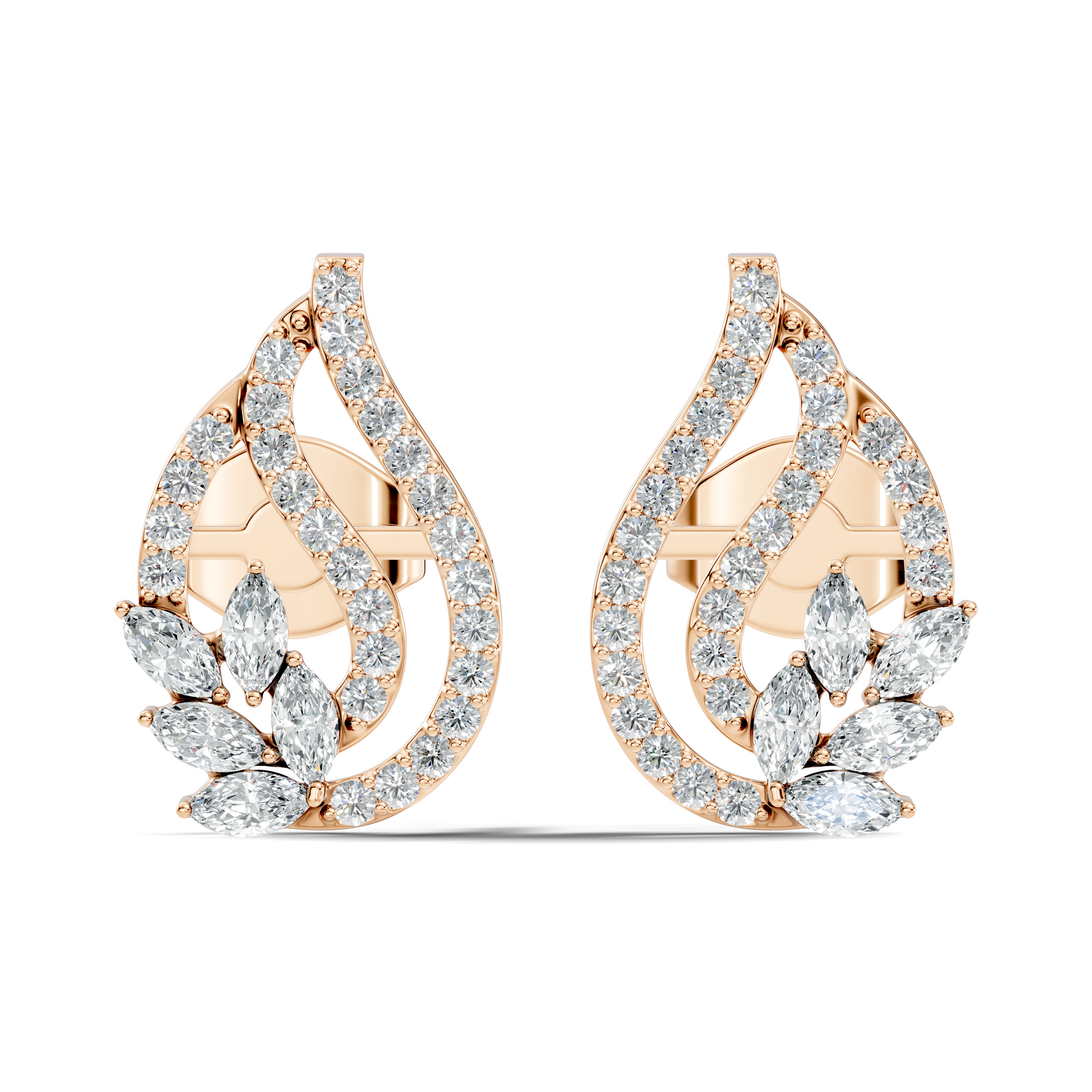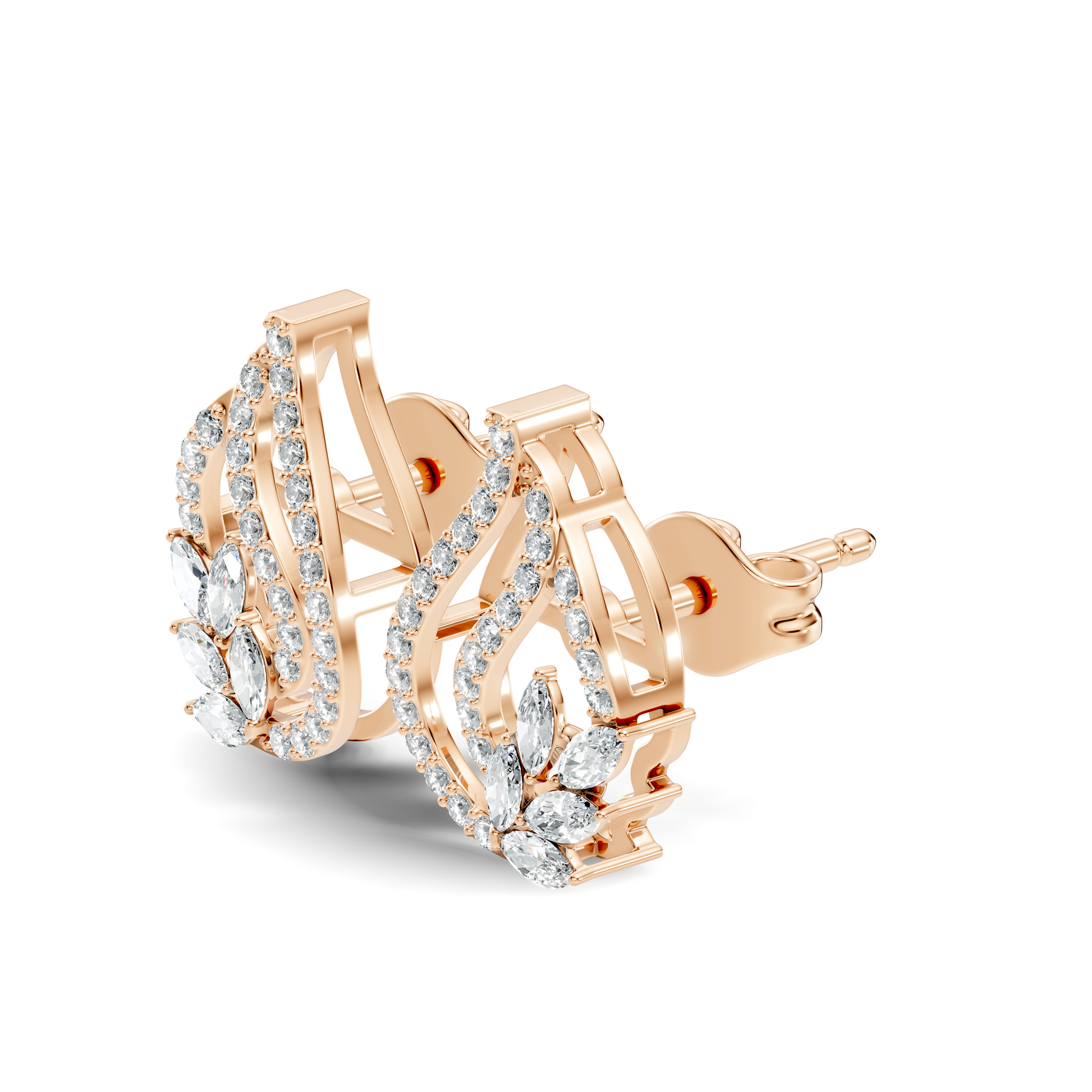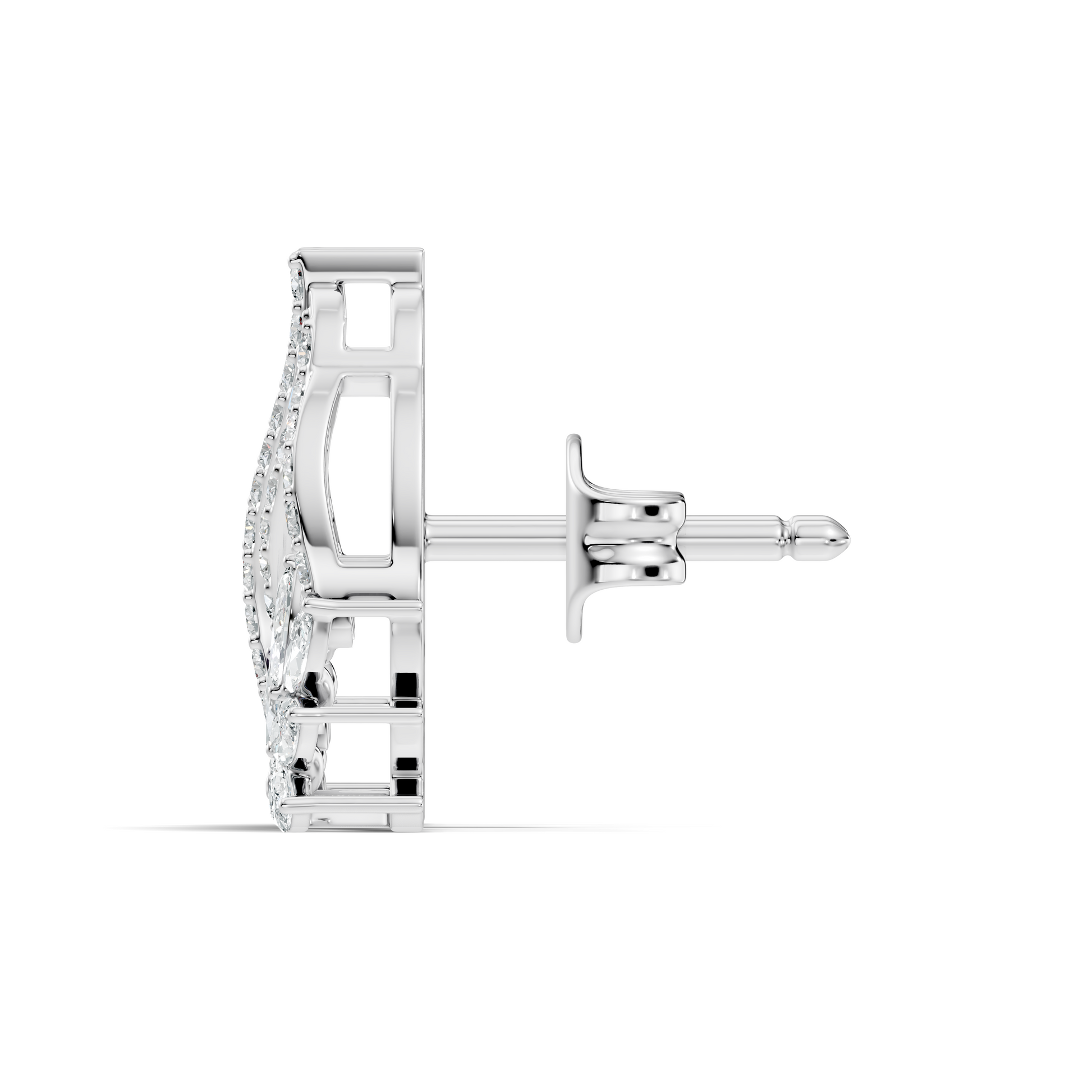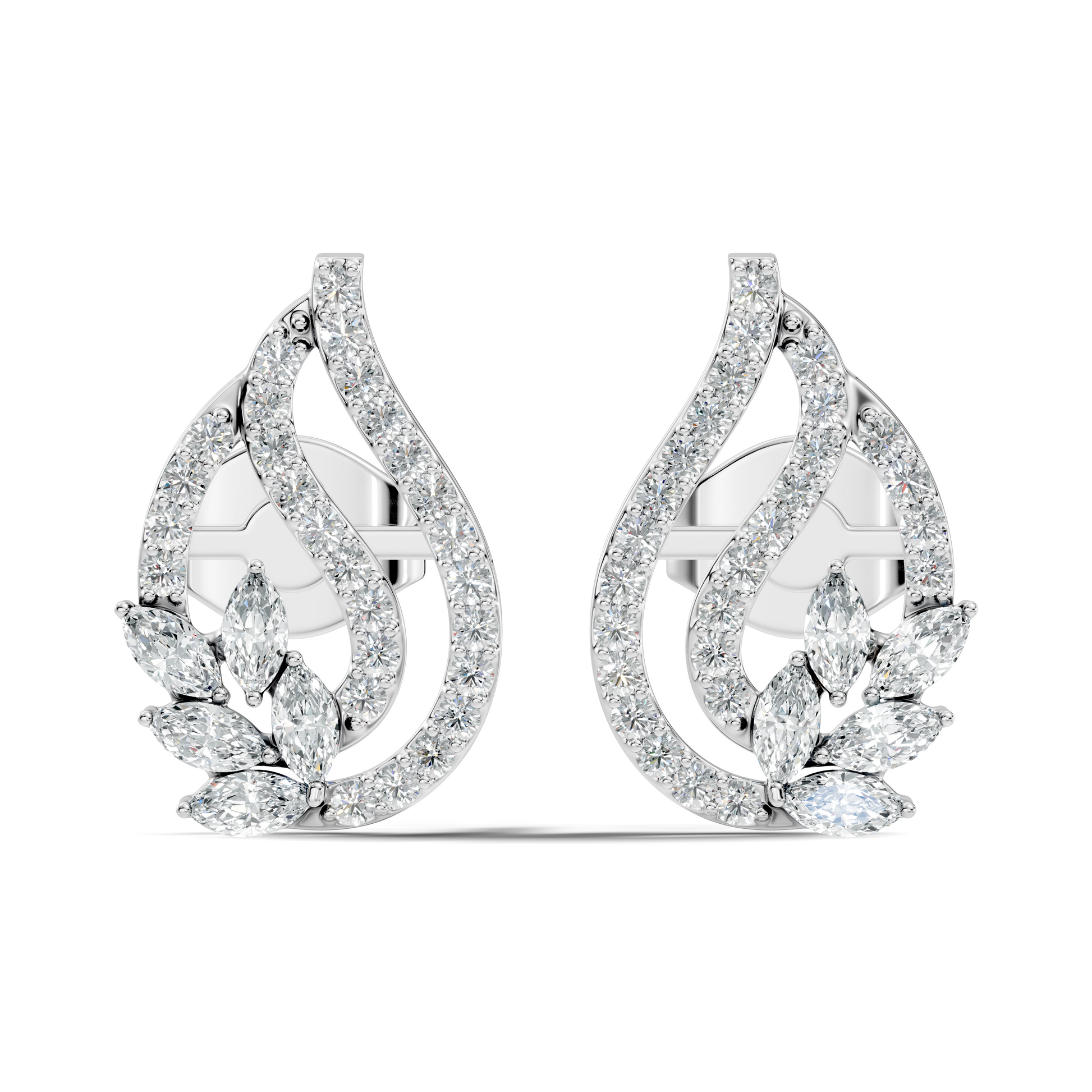 10k Solid White Gold Round And Marquise Shape Lab Grown & Natural Diamond New Style Vintage Minimalist Diamond Studs Earrings