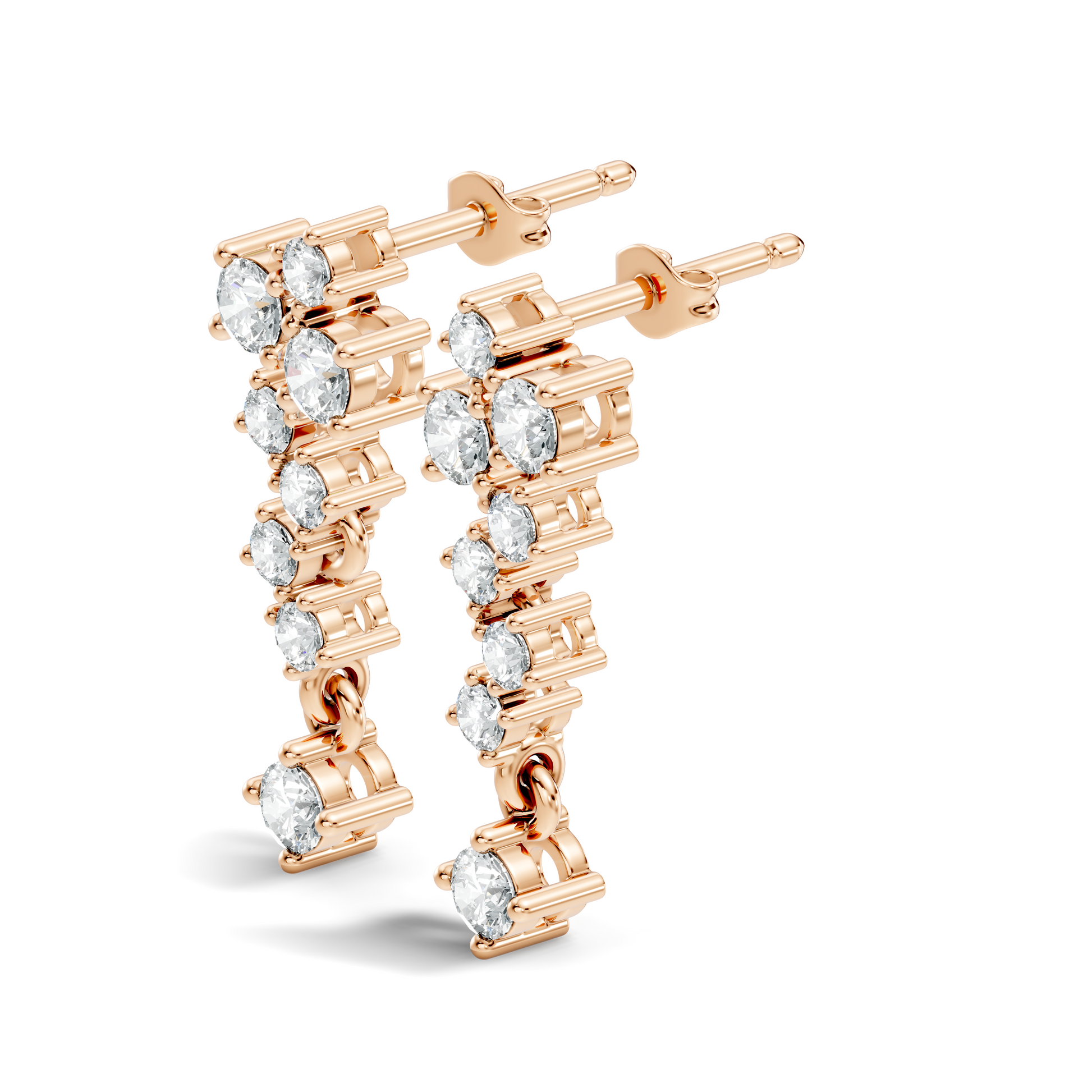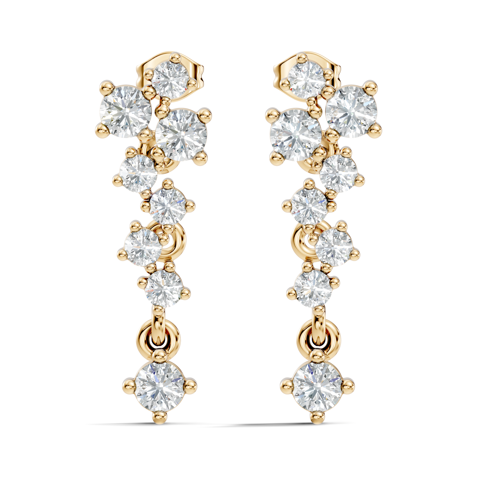 Minimalist Round Diamond Drop Stud Earrings in 14K Solid Gold Elegant Women's Jewelry