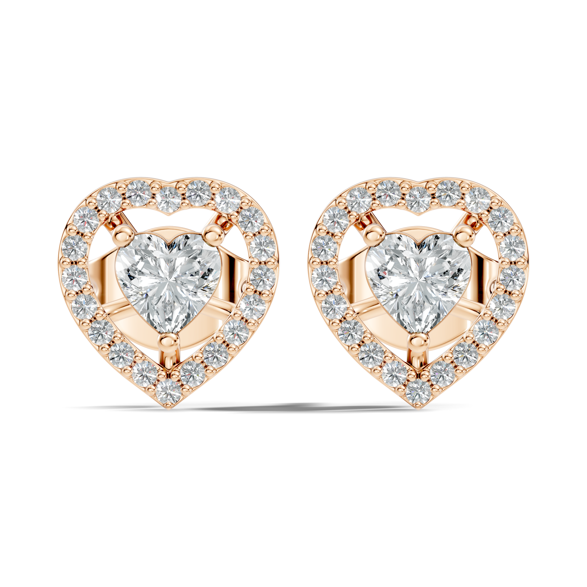 Round & Heart Shape Lab Grown Diamond 10k Solid Rose Gold Unique Diamond Earrings Anniversary Gift For Women