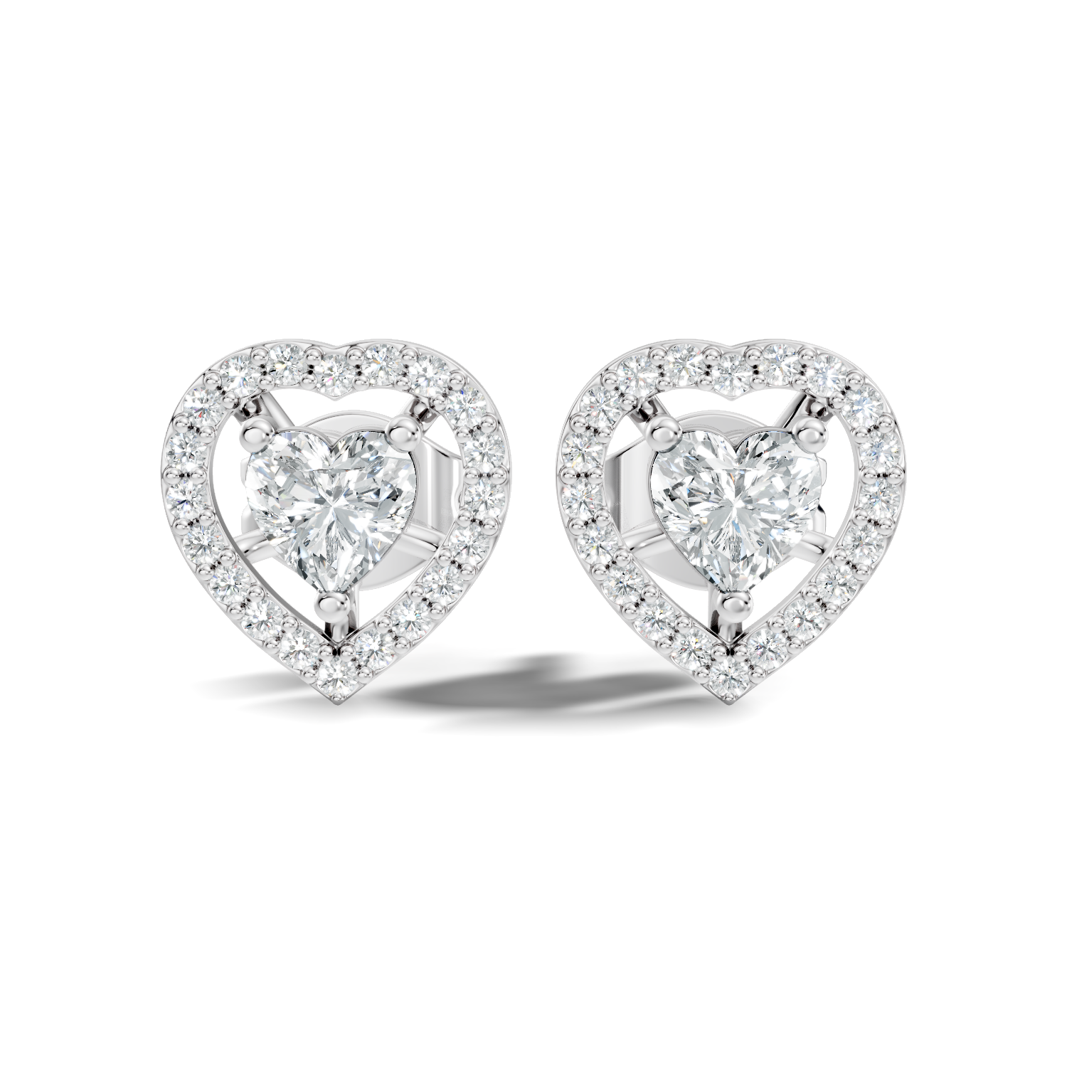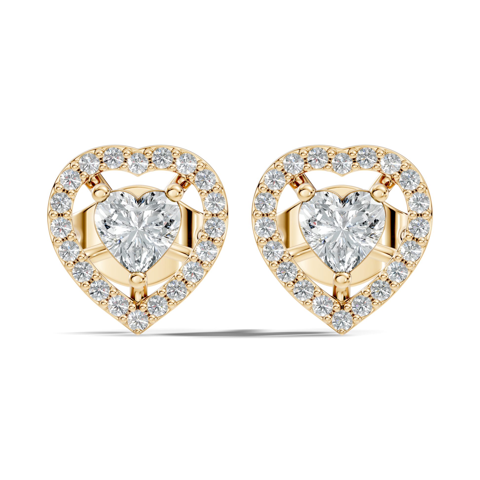Add a touch of elegance to your look with these exquisite round and heart-shaped lab-grown diamond earrings in 10k solid rose gold. A unique and stunning choice for an anniversary gift for women. Make a statement with these timeless and beautiful earrings.