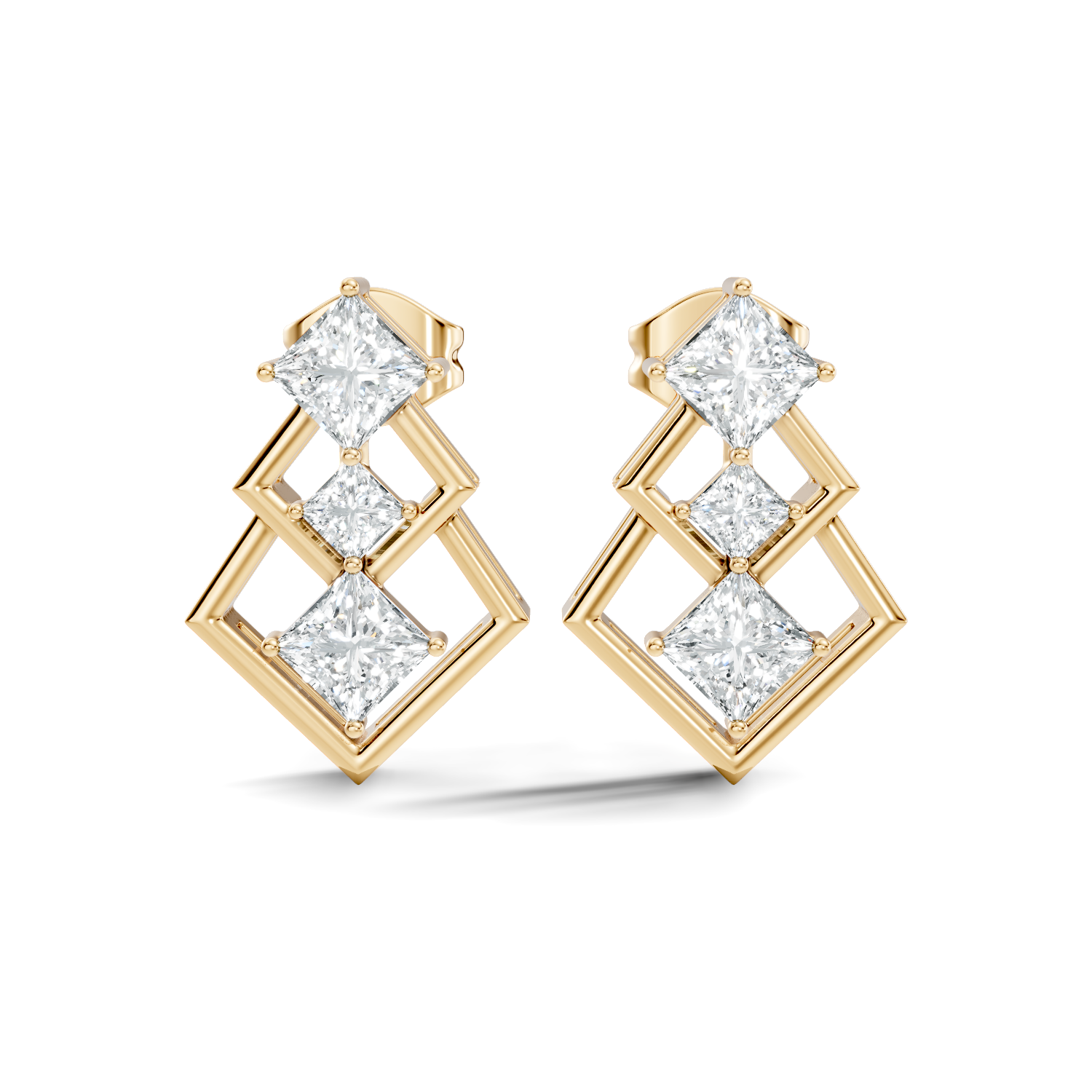 Elevate your elegance with these 6 Stones Princess Cut Diamond Earrings, a perfect blend of vintage charm and modern sophistication. Featuring a harmonious mix of lab grown and natural diamonds, these earrings offer exceptional brilliance and timeless appeal at an affordable price. Each stone is carefully set to highlight its clarity and sparkle, creating a dazzling statement piece perfect for daily wear, special occasions, weddings, or gifting