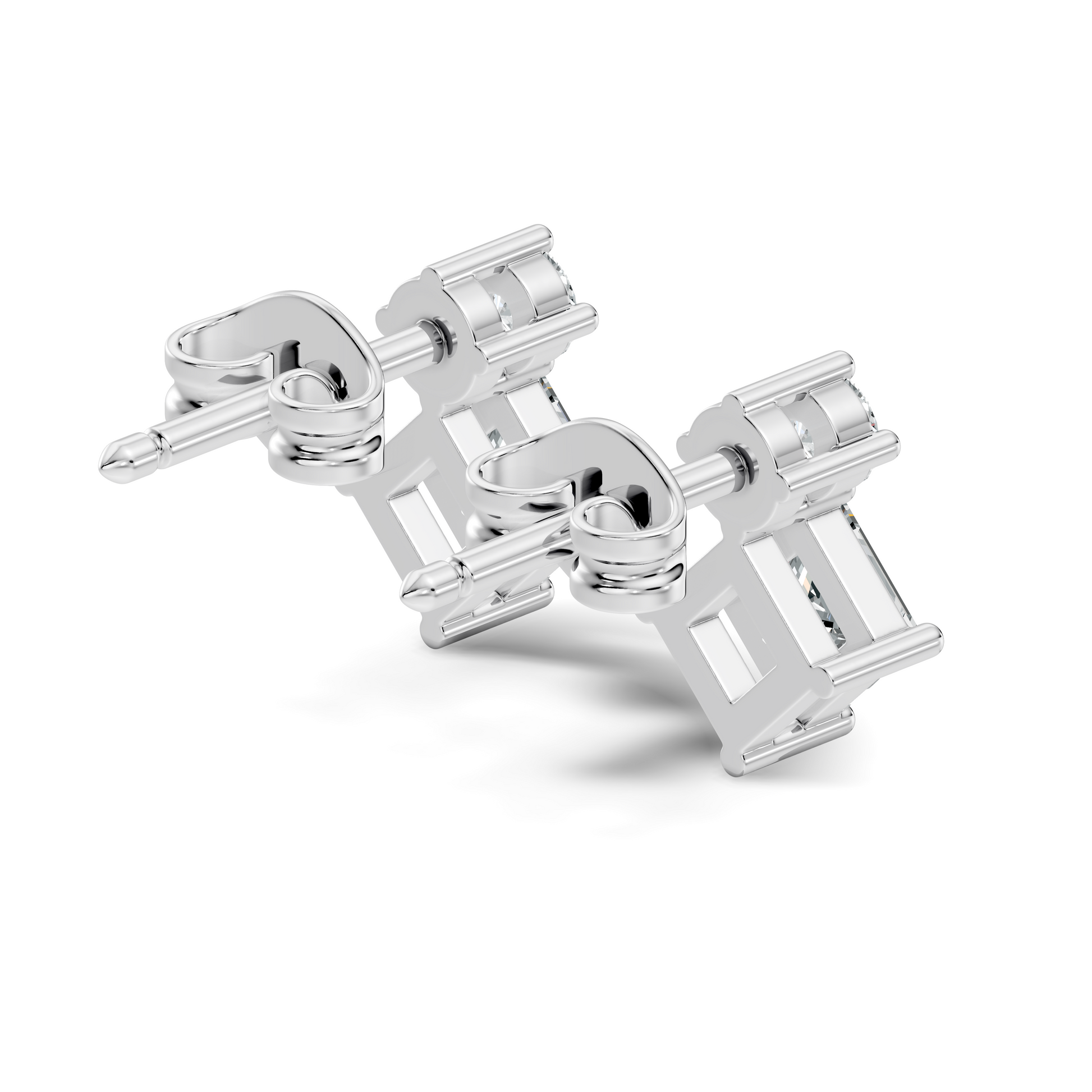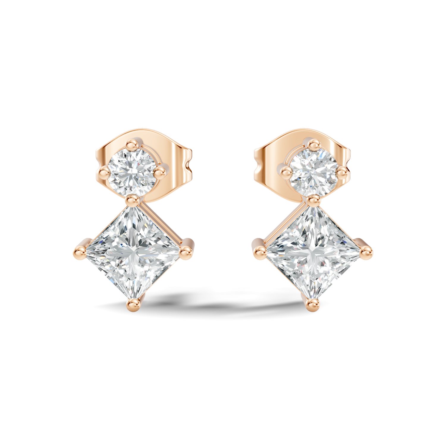 The princess cut diamonds bring a sharp brilliance, while the round cuts add a soft sparkle, creating a balanced and luxurious design. Designed for women who appreciate refined craftsmanship, these studs are perfect for daily wear or special occasions.