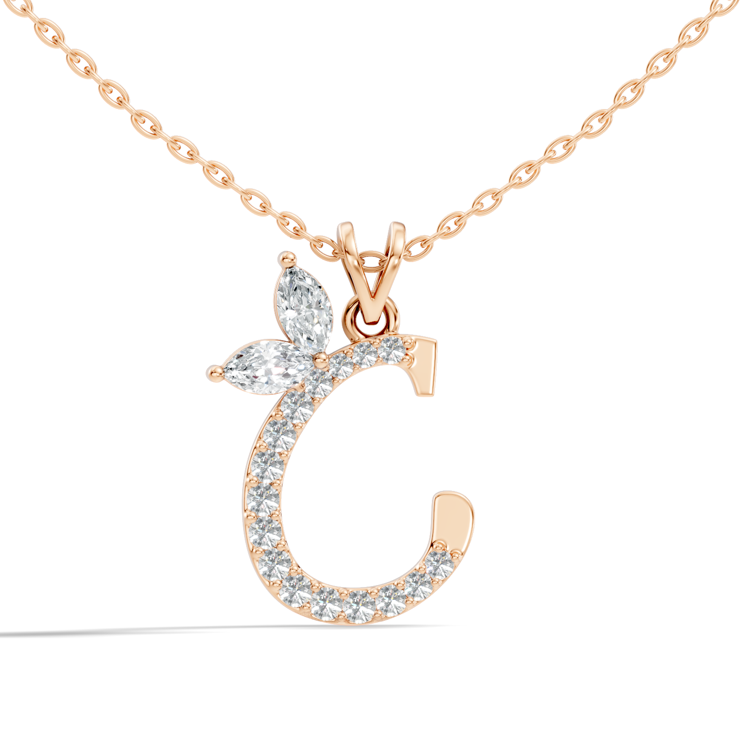 Add a touch of elegance to her look with this stunning 14K solid gold pendant. Featuring a beautiful marquise and round cut diamond design, this C alphabet inspired pendant is the perfect gift for her. Timeless and sophisticated, she'll love wearing this exquisite piece everywhere she goes