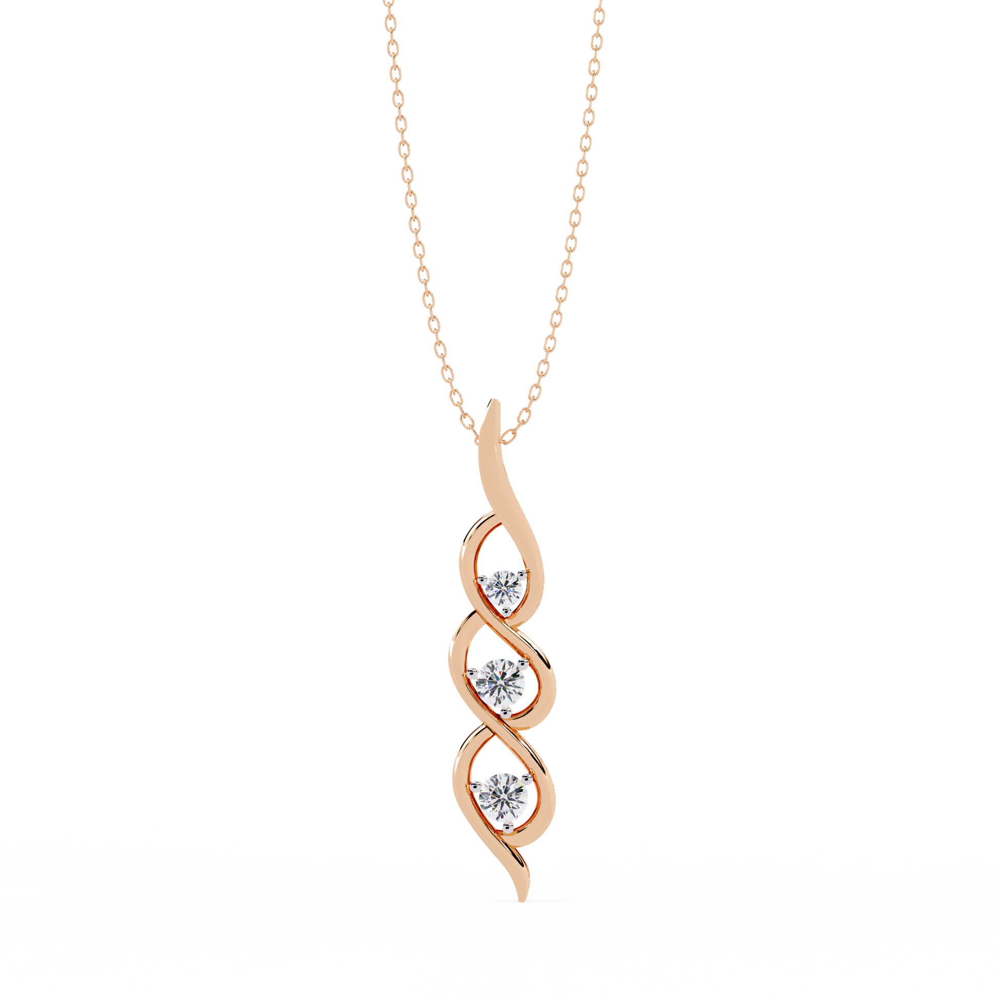 Round Cut Lab Grown - Natural Antique Shapes 14K Solid Rose Gold Delicate Vintage Necklace For bridal