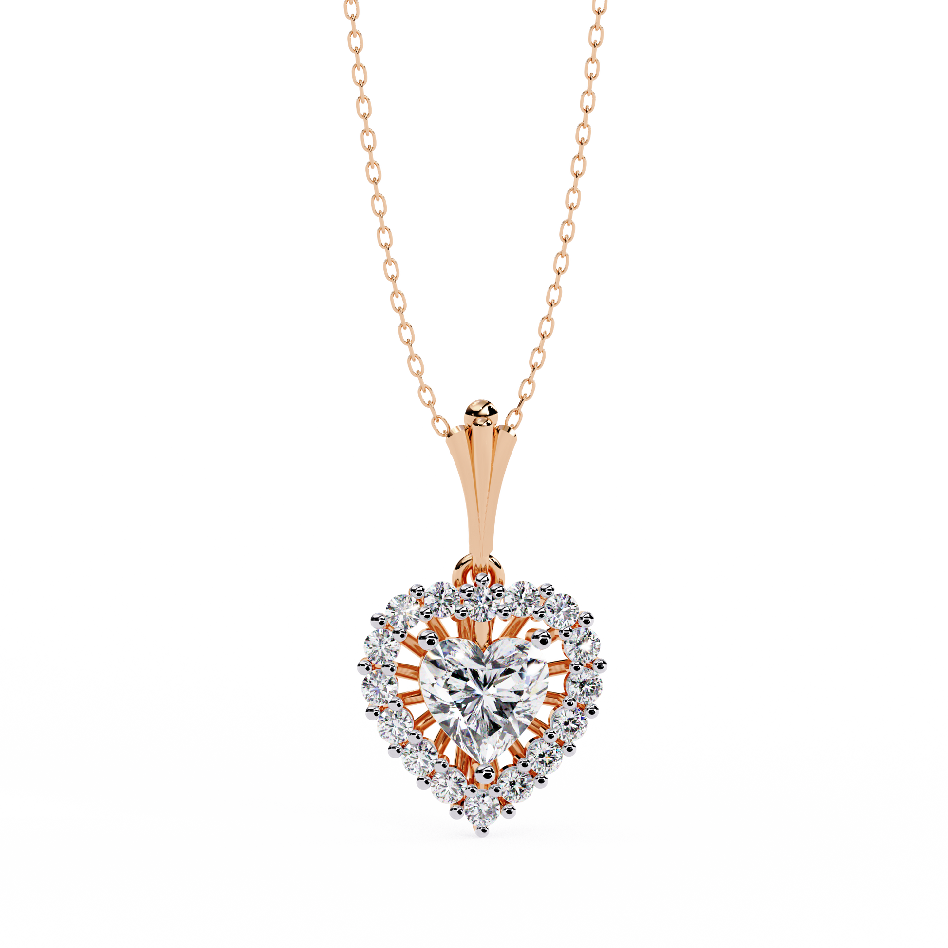 Heart and Round Cut Lab Grown Diamond Rose 14k Solid Gold Prong Set Minimalist Dainty Party Wear Pendant Perfect Gift for Her