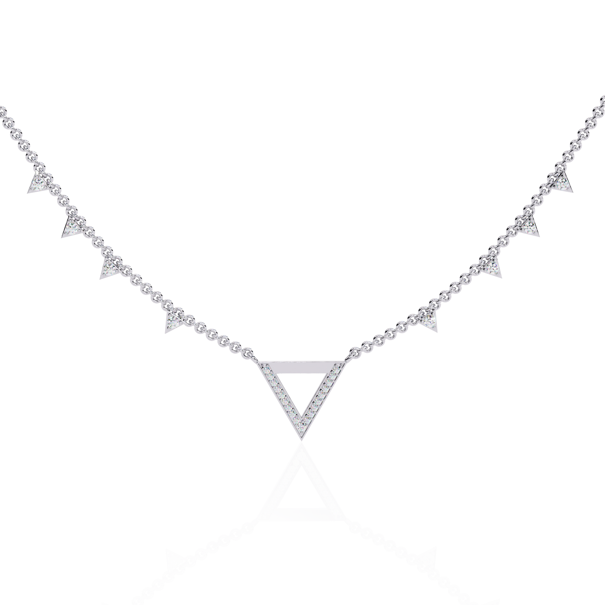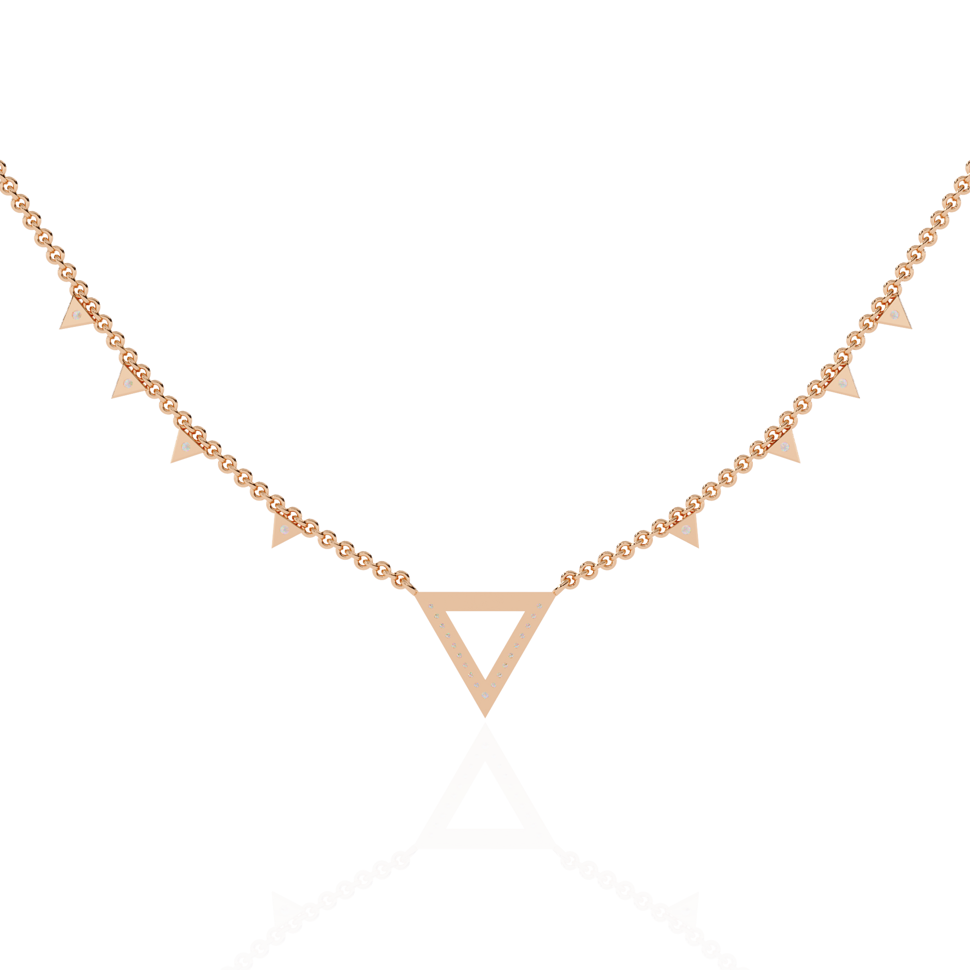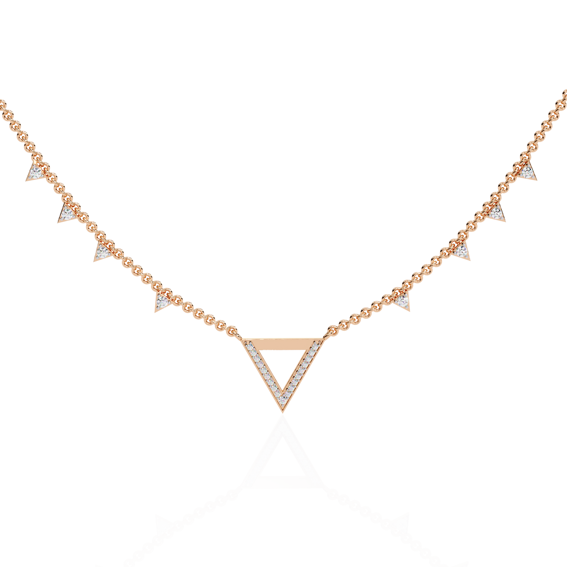 • 14k Solid rose Gold Triangle Shape Round Cut Natural & Lab Grown Both Diamond  Delicate  Graduation Necklace Daily Wear