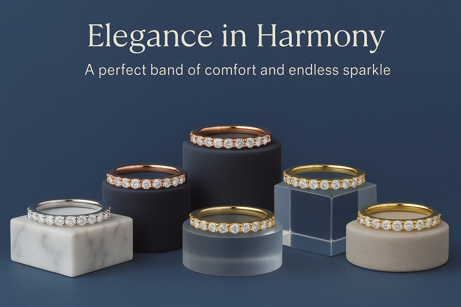 Round and Marquise Cut White Colorless Diamond Minimalist Half Eternity Band For Her