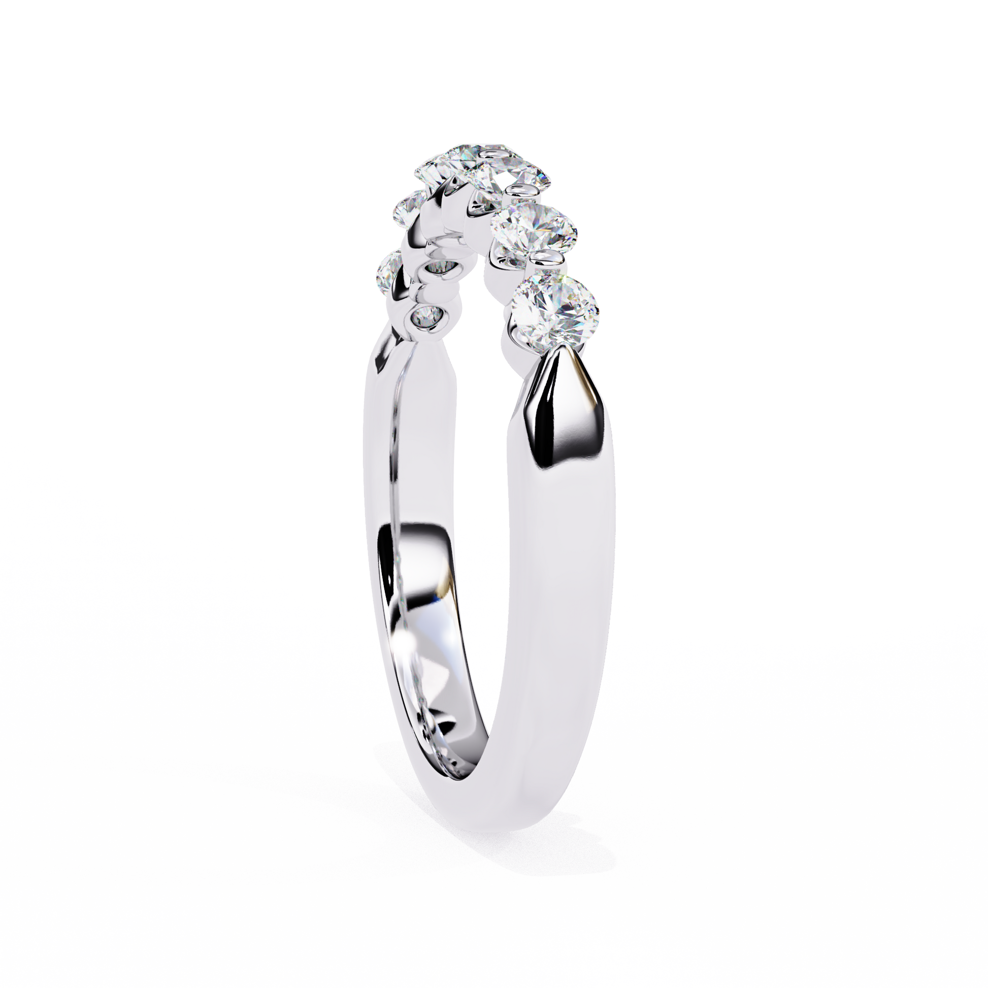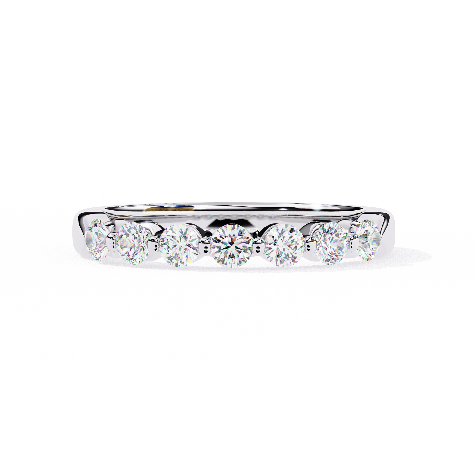 Round Cut White Colorless Lab Grown Diamond Elegant Half Eternity Stacking 7 Stone Dainty Every Day Ring