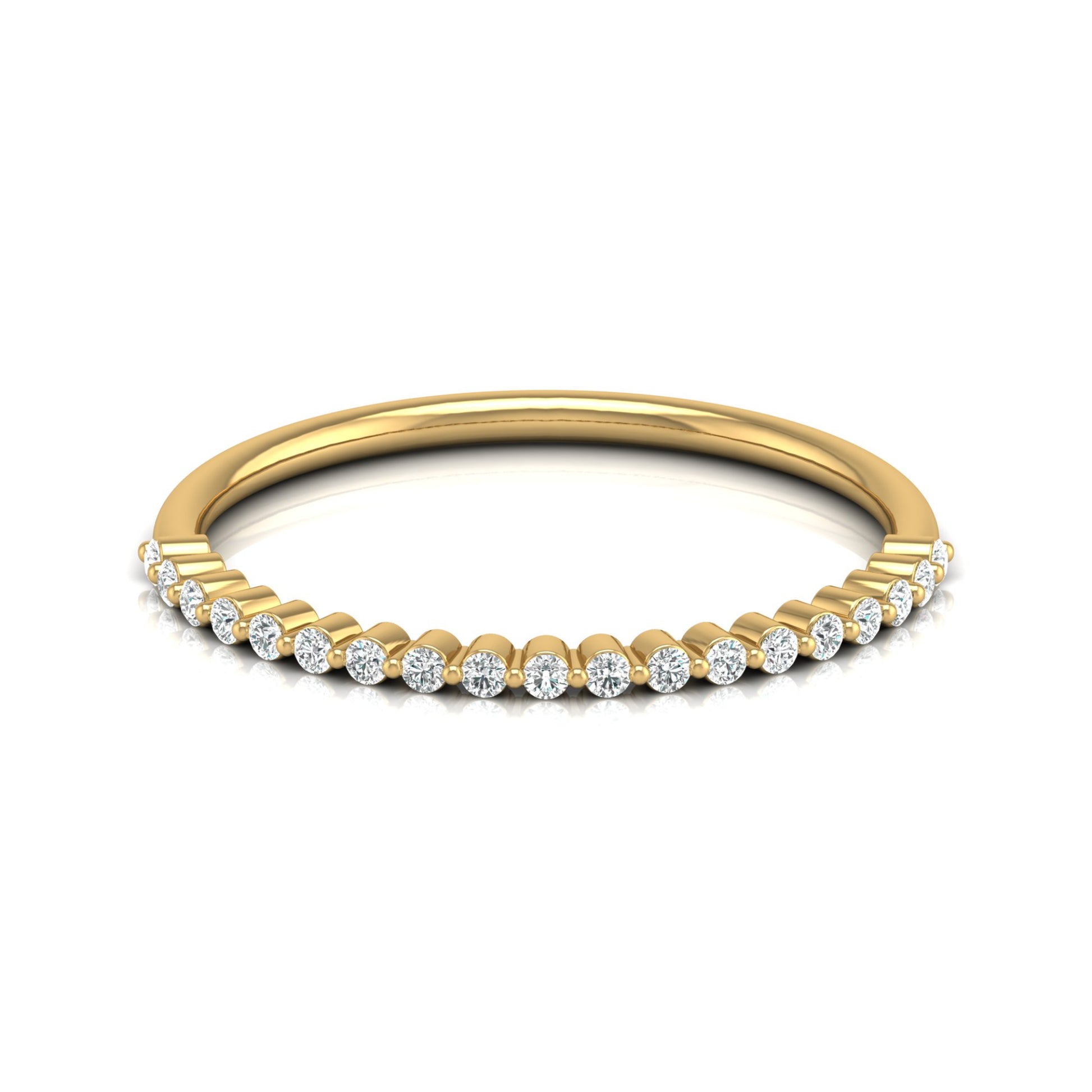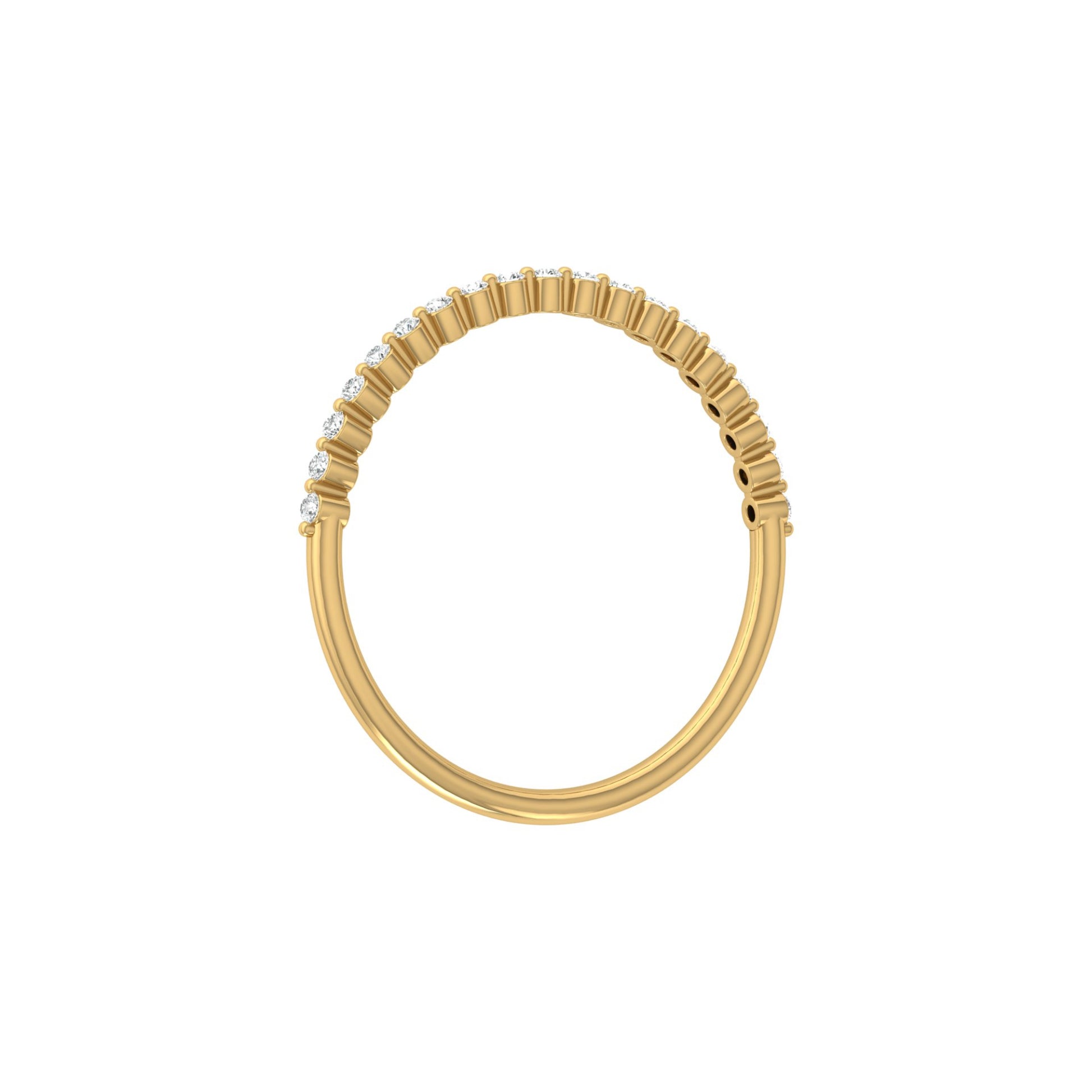 Sleek and timeless, this 0.12 CT half eternity band ring features bezel-set round diamonds for a smooth, modern finish. Crafted in 14KT gold, and available in both lab-grown and natural diamonds, it’s a minimalist piece ideal for stacking or wearing solo. A perfect everyday ring that balances subtle sparkle with lasting elegance with Highcarat
