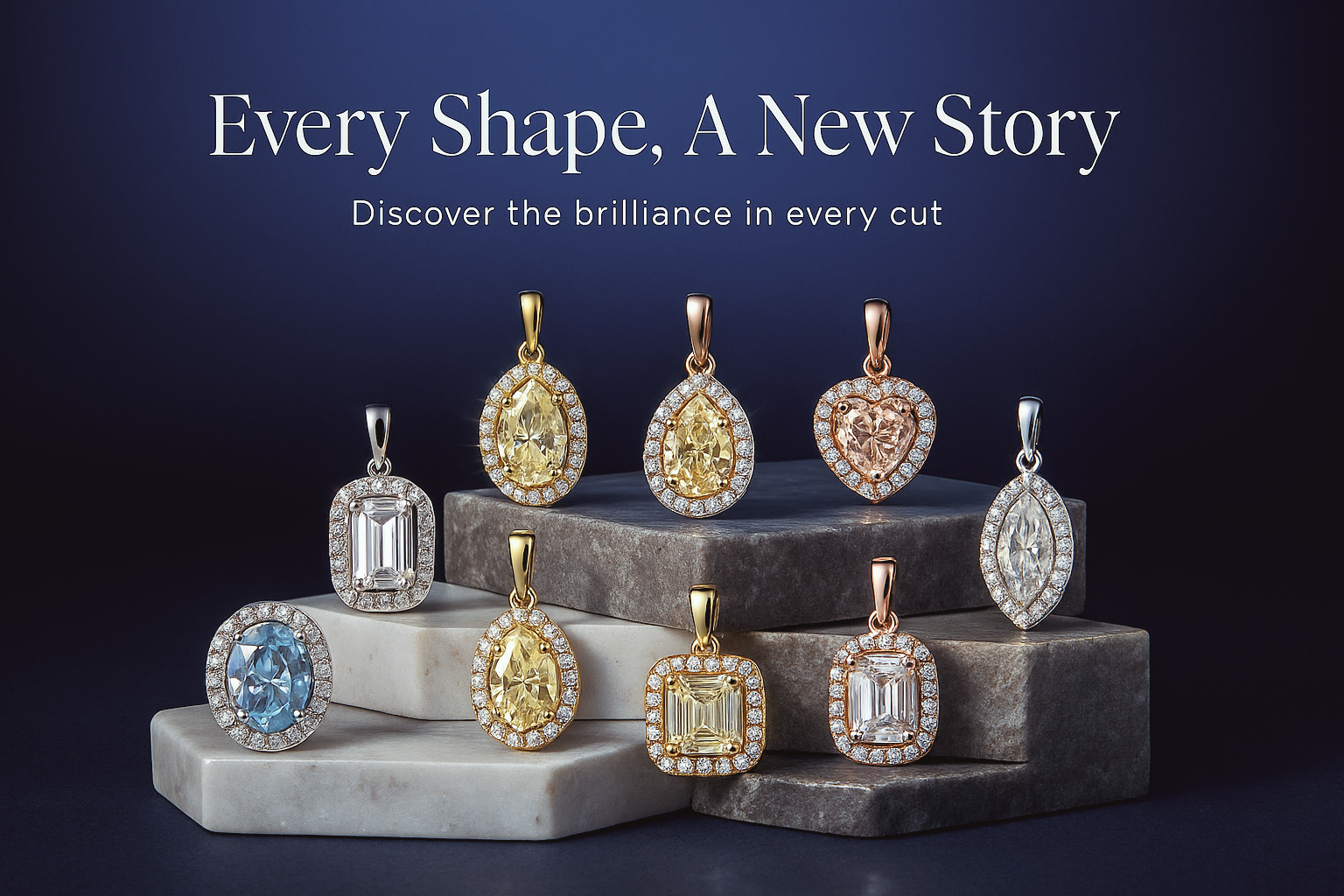 Cushion Square & Round Shape 14k Solid Gold Lab Grown Minimalist Sparkling Diamond Pendant For You