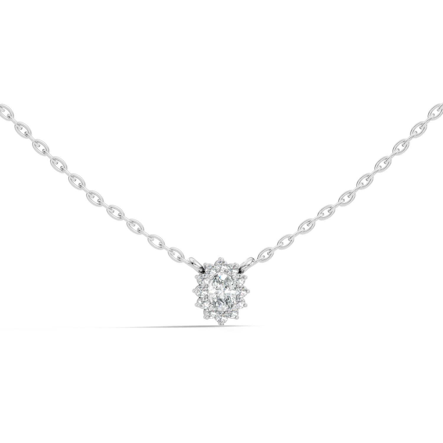Oval Cut Diamond Pendant In 14K White Gold Halo Style Necklace Pendant For Her