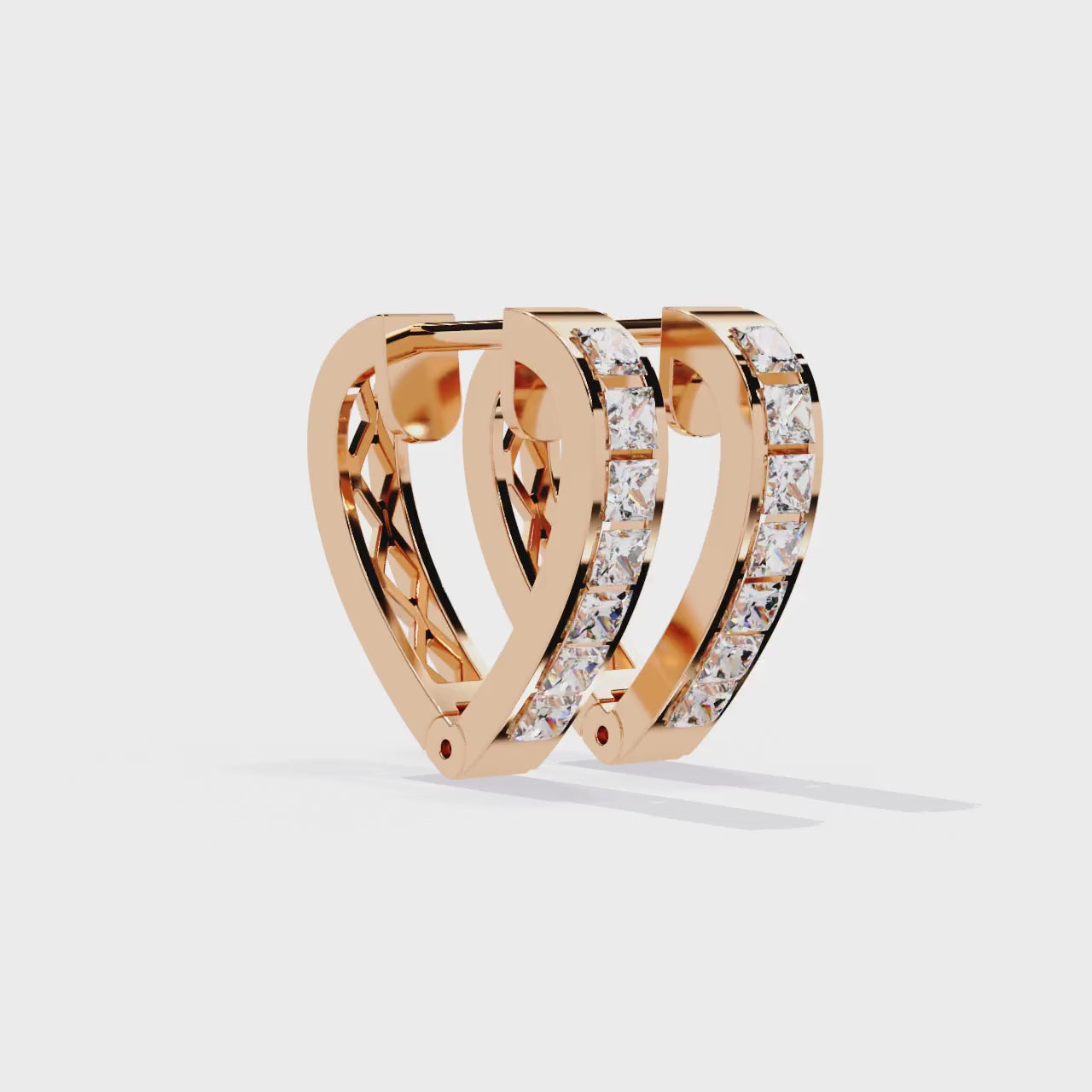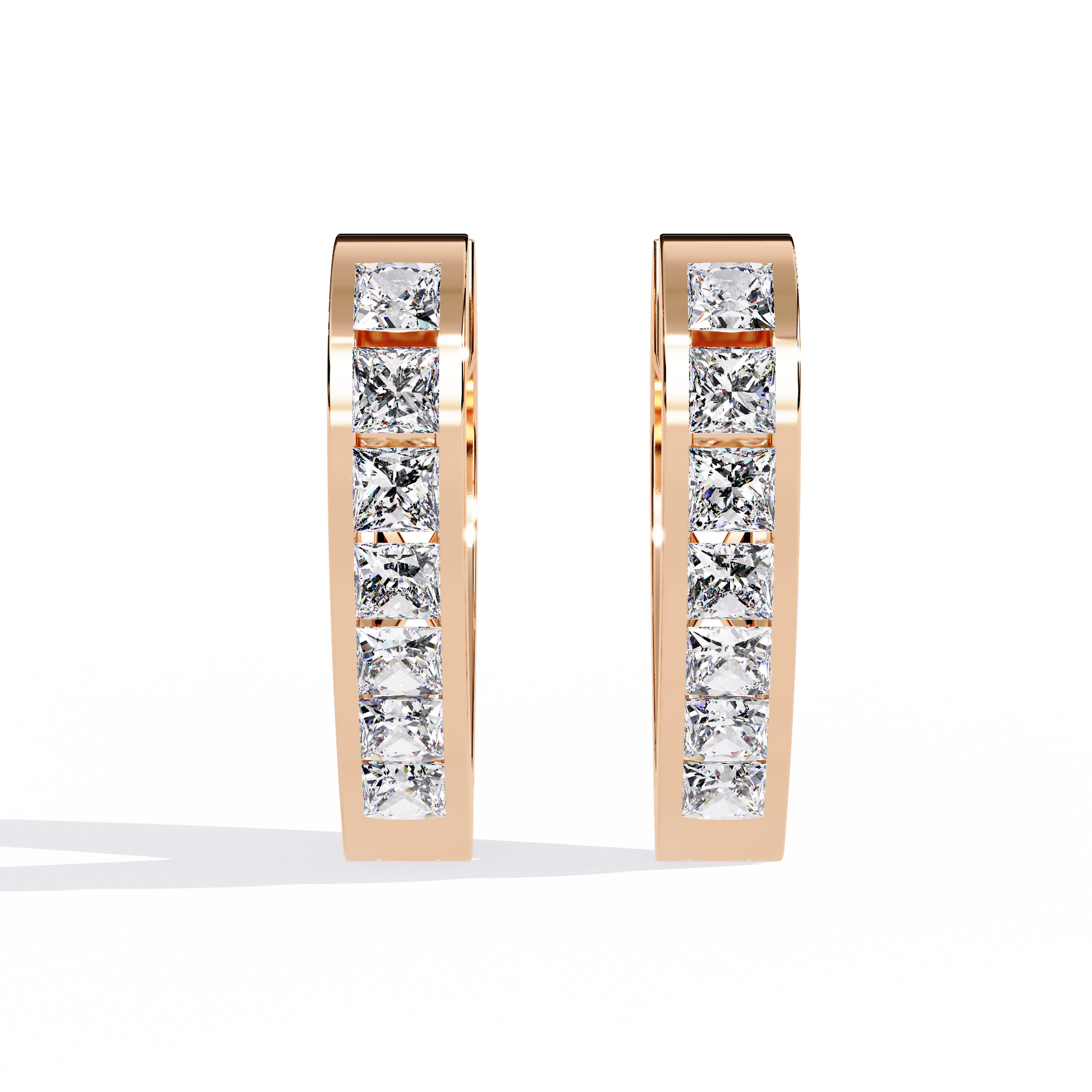 Elevate your style with these vintage-inspired hoop 18k Solid rose gold earrings, featuring 0.83Ct princess cut top-grade lab grown diamonds for unmatched brilliance. Their elegant minimalist design is carefully handmade to create a stunning statement, perfect for party wear or special occasions. A timeless and luxurious gift for her that blends classic beauty with modern sophistication.