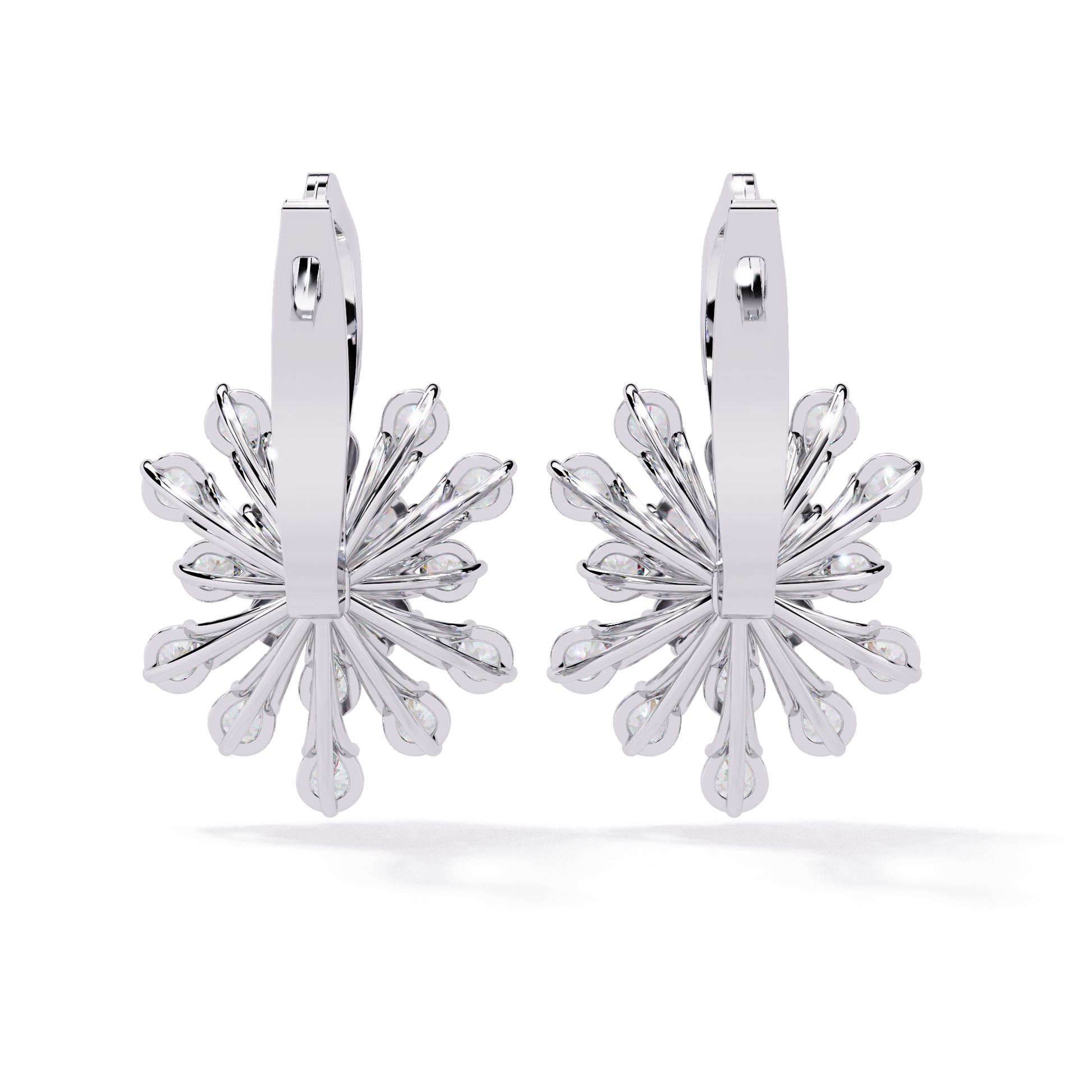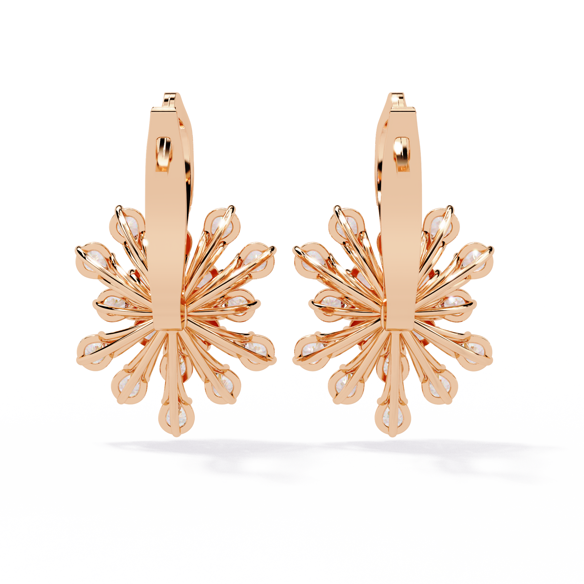 Celebrate elegance and charm with these unique flower shape hoop 18k solid rose gold earrings, featuring 1.75Ct round cut lab grown & natural diamonds in a secure prong setting. Designed to sparkle from every angle, their dainty yet stunning style makes them perfect for both everyday wear and special occasions. A timeless and thoughtful gift for her, these earrings combine delicate beauty with lasting brilliance.