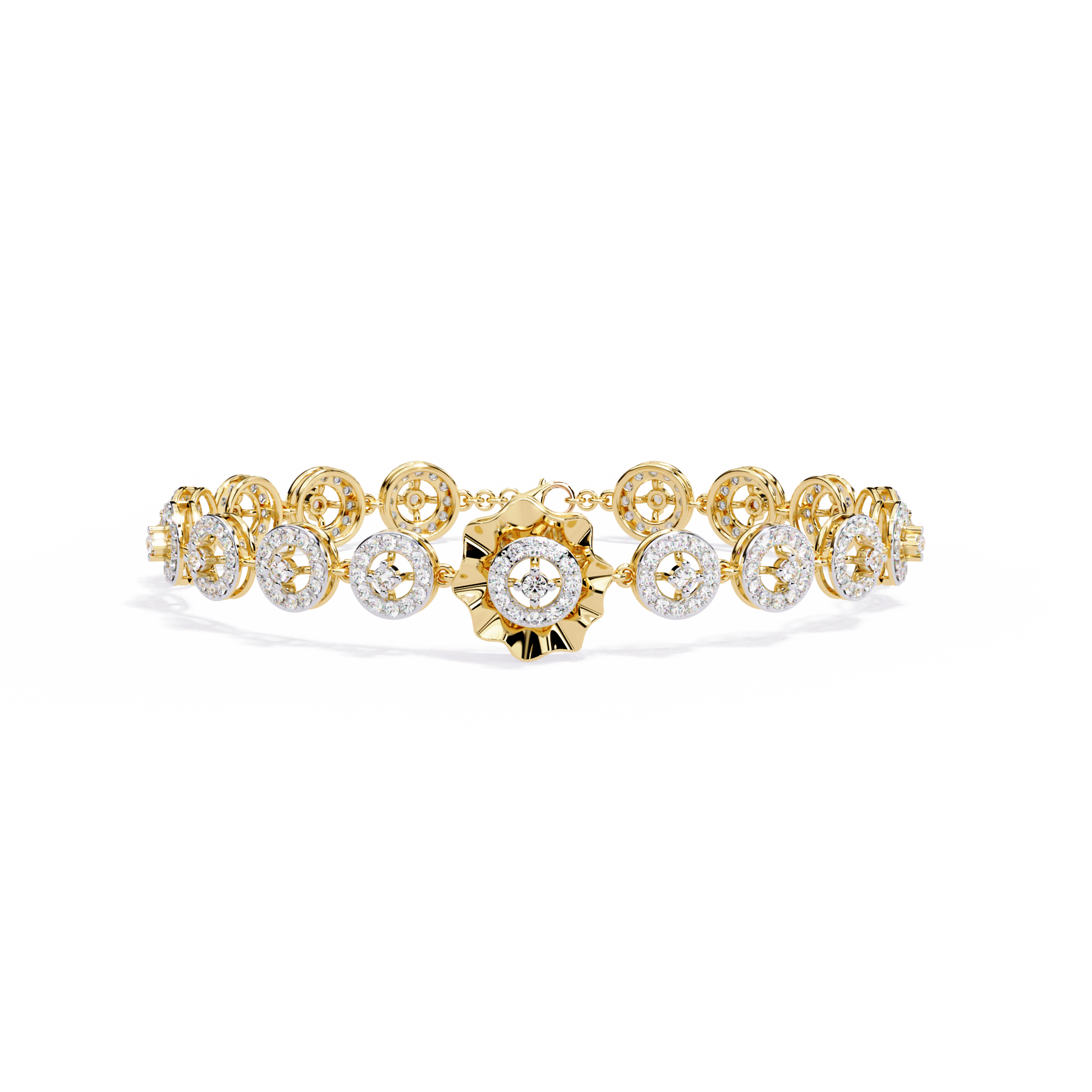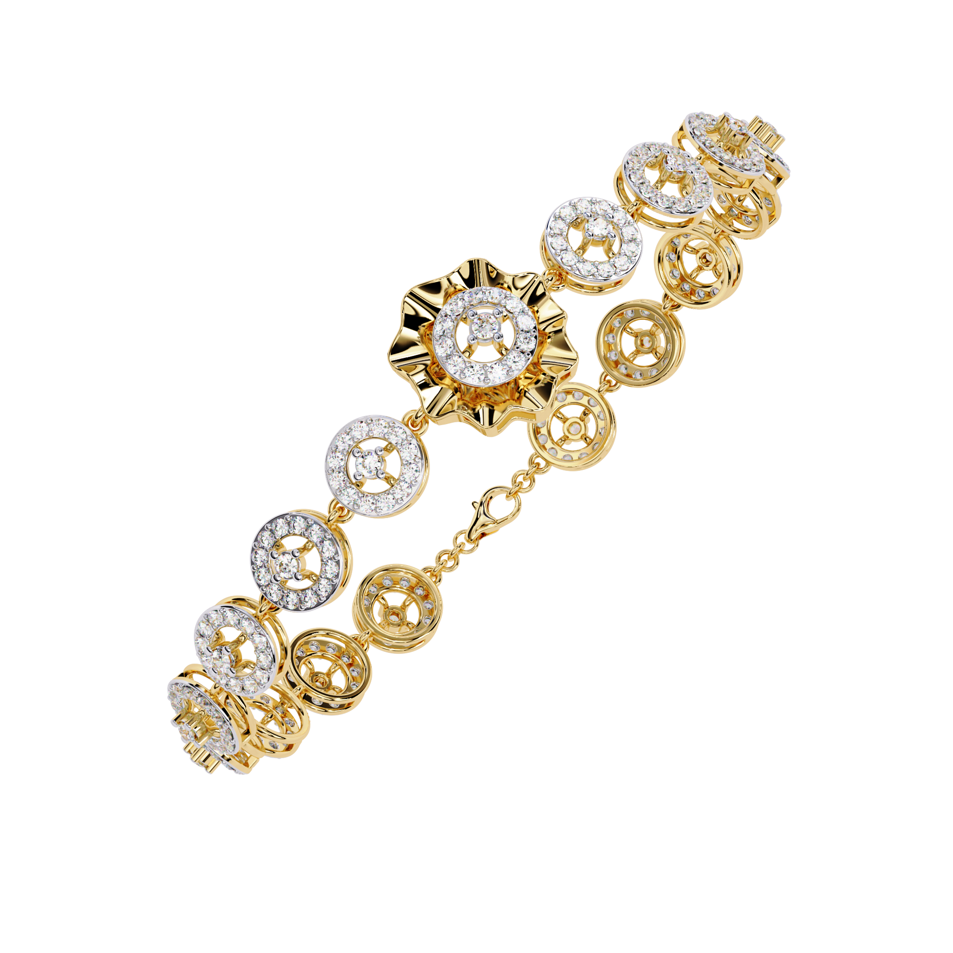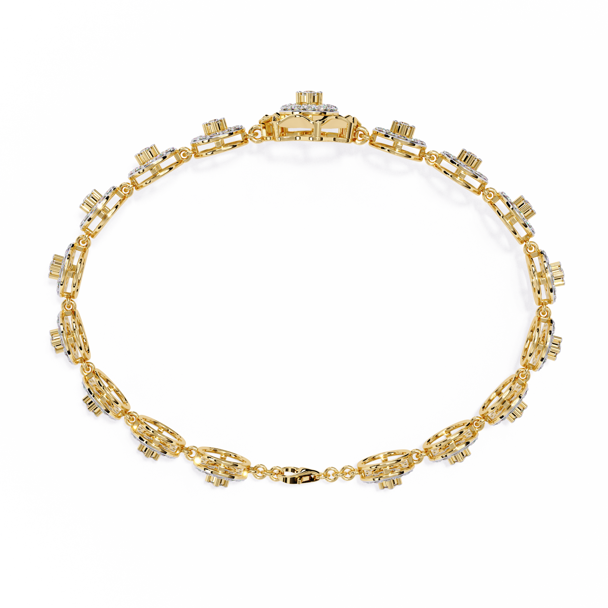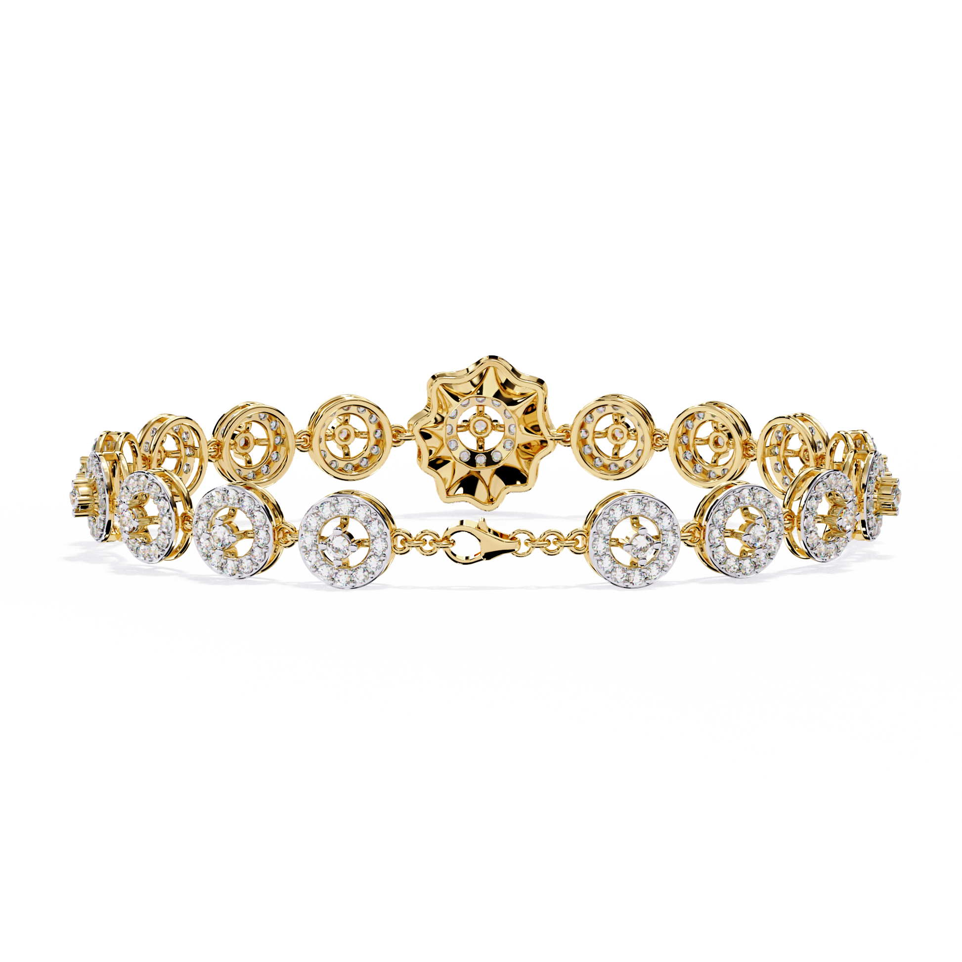 Indulge in timeless elegance with our vintage 18k solid yellow gold classic line bracelet, featuring a perfect 2.16Ct round cut top grade lab grown diamond for a touch of luxury. This delicate piece is the perfect gift for women who appreciate sophisticated beauty. Add a touch of glamour to any outfit with this exquisite bracelet.