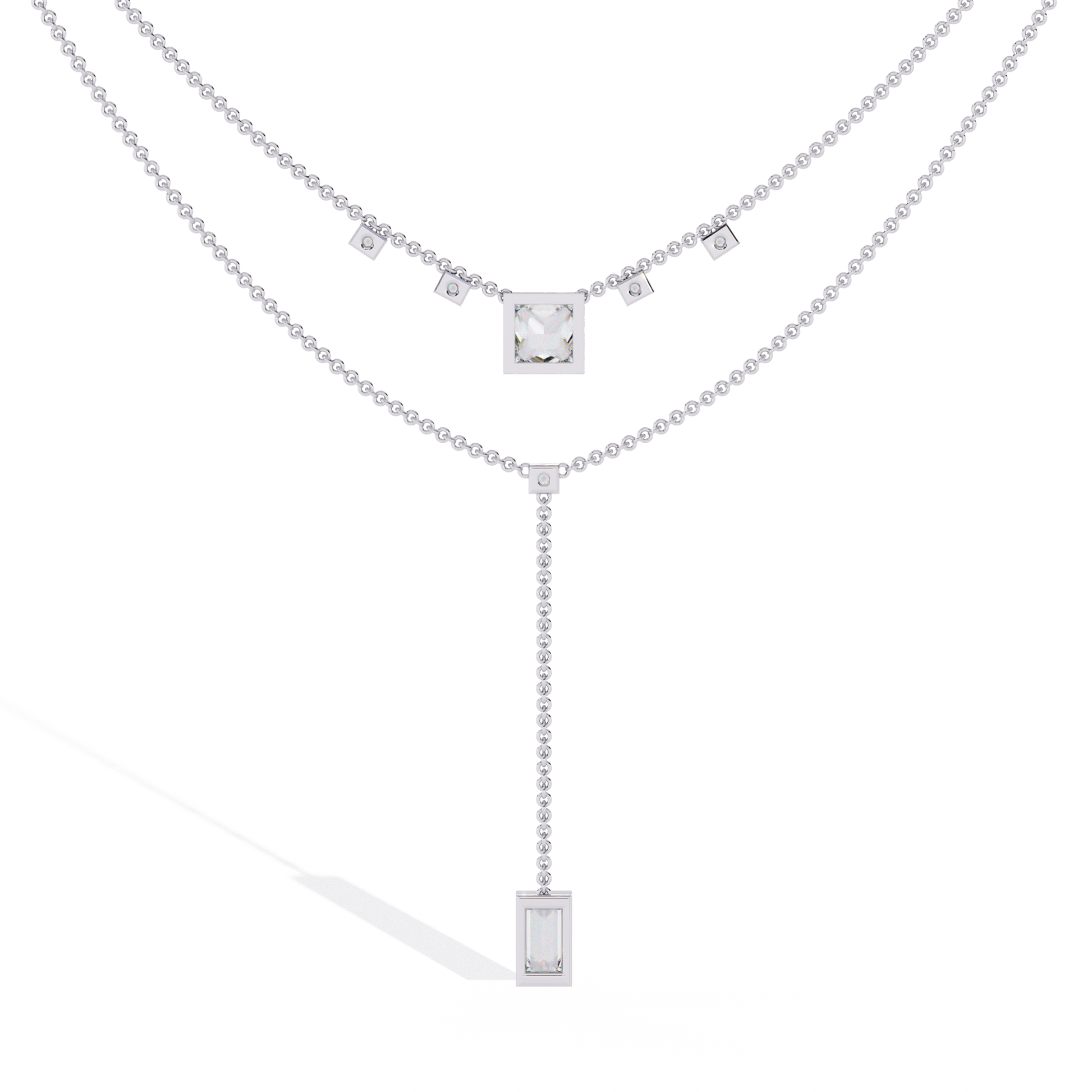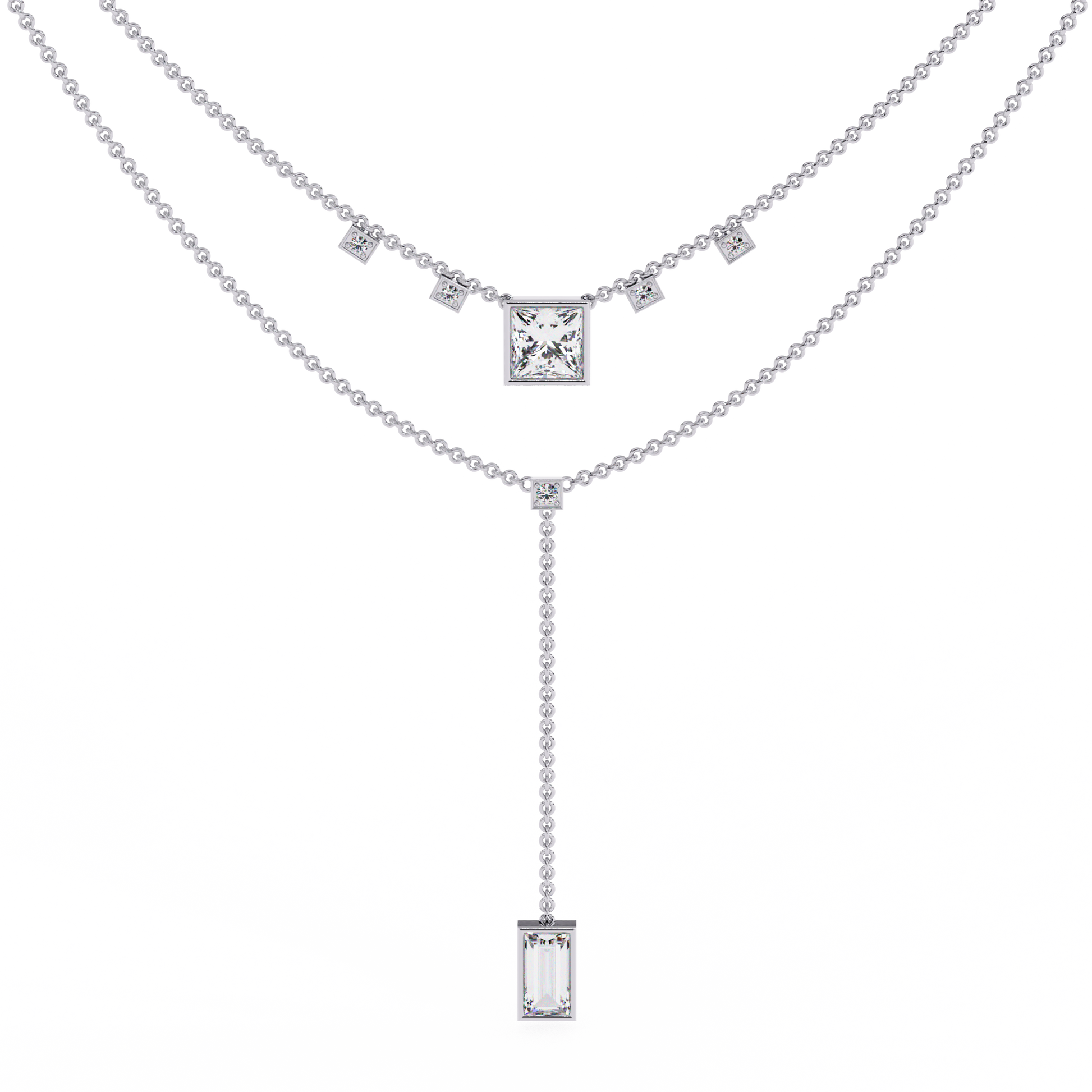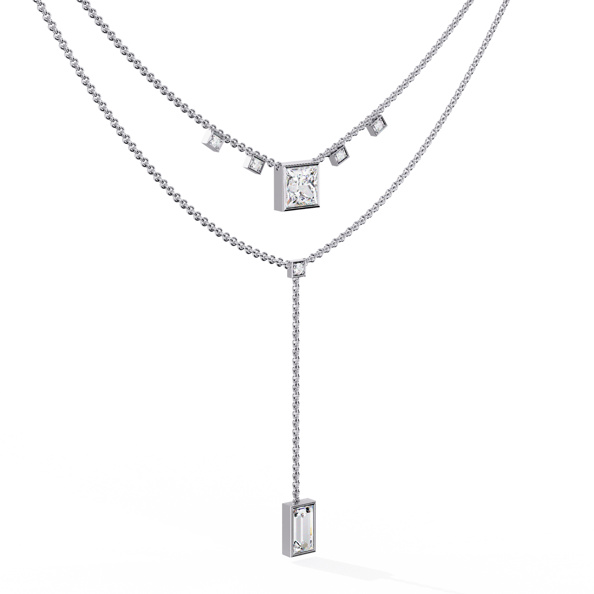 Baguette, Princess And Round Cut 3.44 Ct Lab Grown Diamond Bezel Set Dainty Diamond Necklace For gifted by bridal