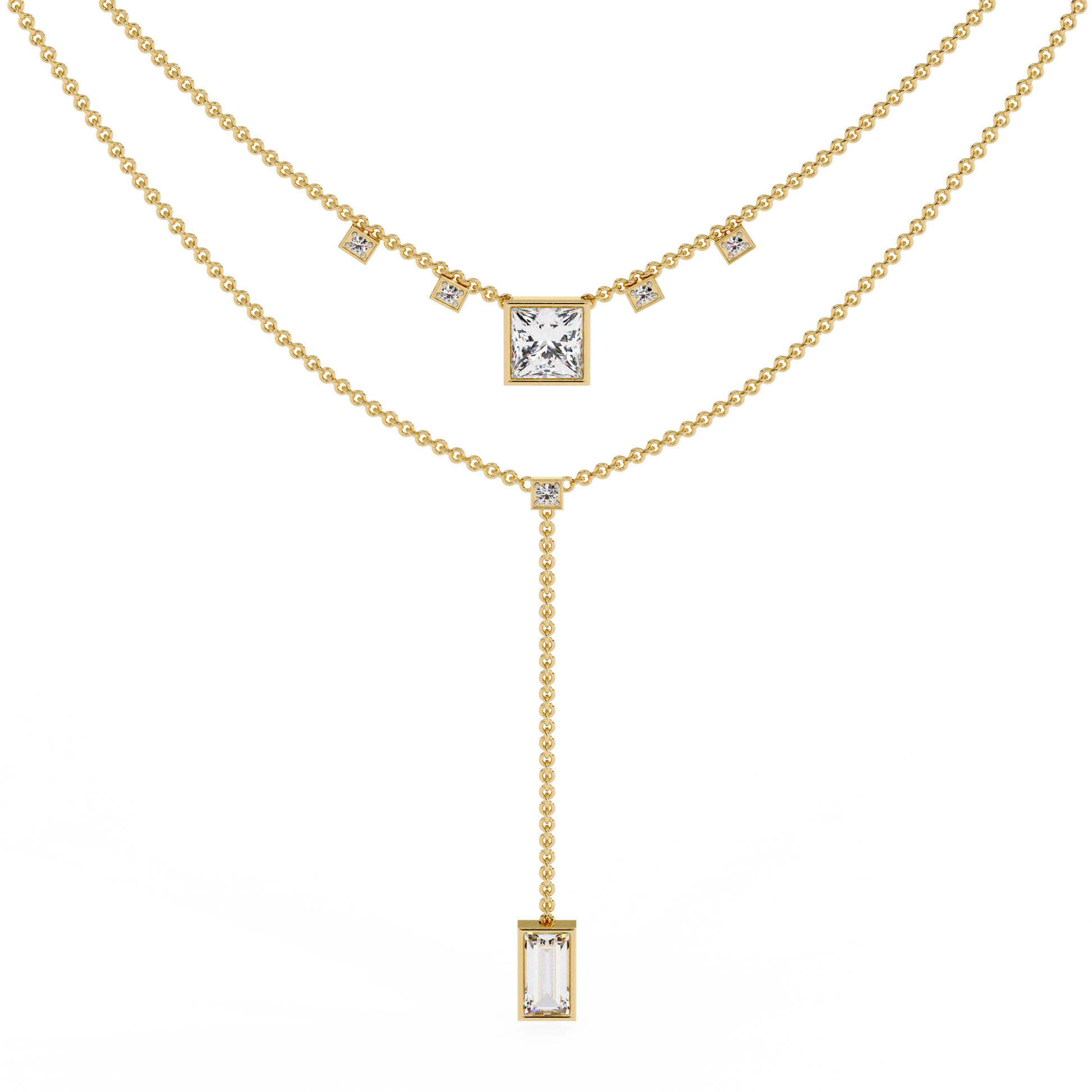 • Baguette, Princess And Round Cut 3.44 Ct  Lab Grown Diamond Bezel Set Dainty Diamond Necklace For gifted by bridal