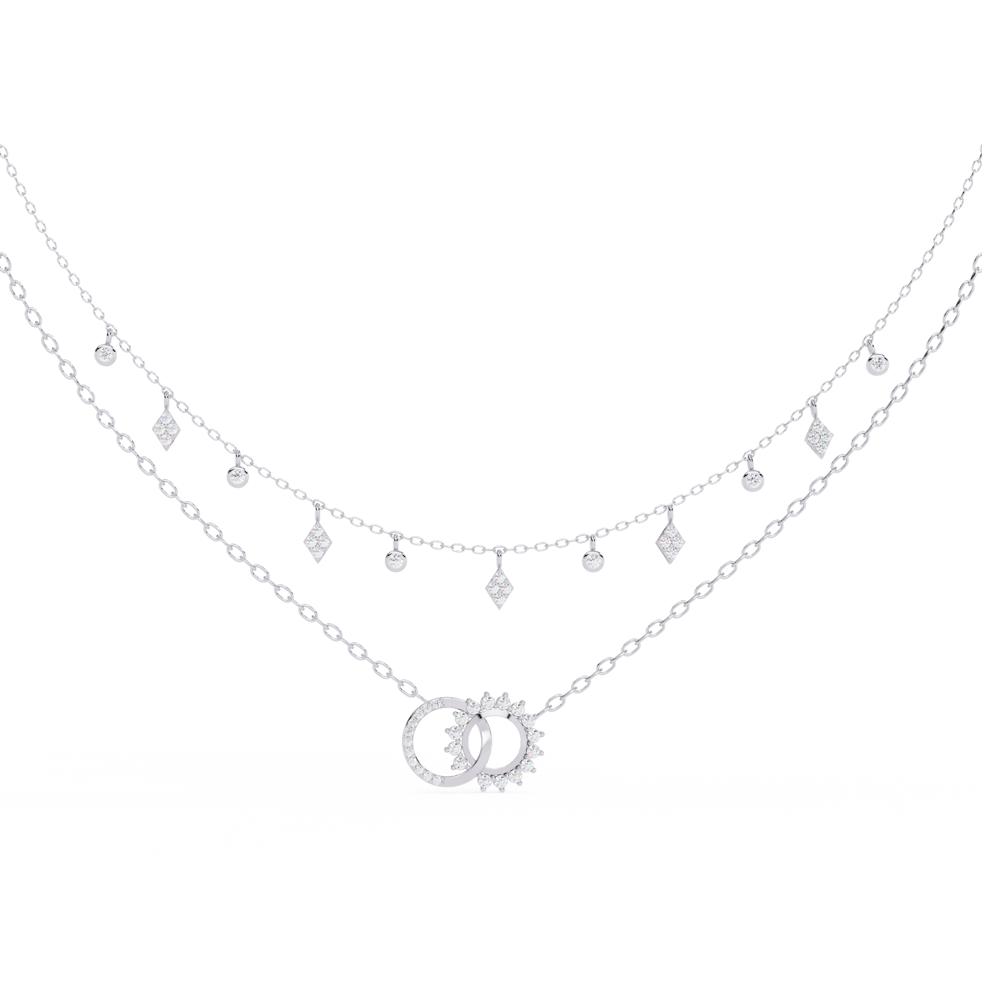 This stunning multi-layer statement necklace features a 10k Solid rose gold unique open circle design adorned with sparkling round cut diamonds. Its intricate vintage-inspired style adds a touch of timeless glamour, making it perfect for parties, anniversaries, or any special celebration. A luxurious gift that will make her shine with sophistication.
