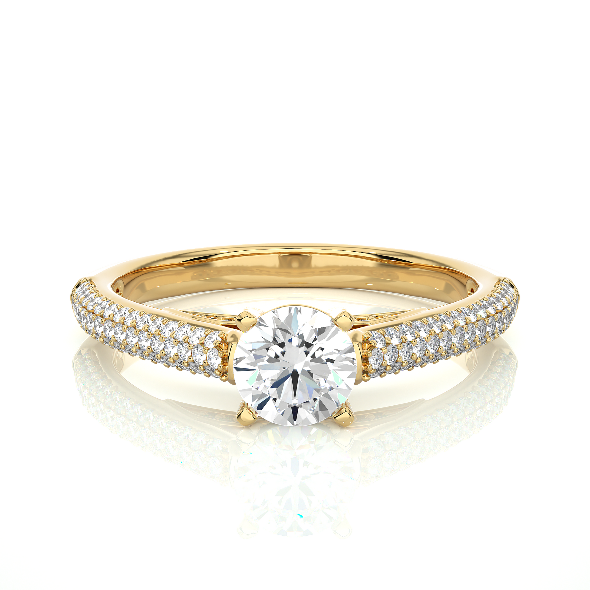 Adorn her hand with this stunning 5.70 Ct round lab-grown diamond engagement ring in 18k solid gold. Featuring dazzling side stones, this ring is a true symbol of love and commitment. A timeless piece that she will cherish forever. Perfect for the one who holds the key to your heart.