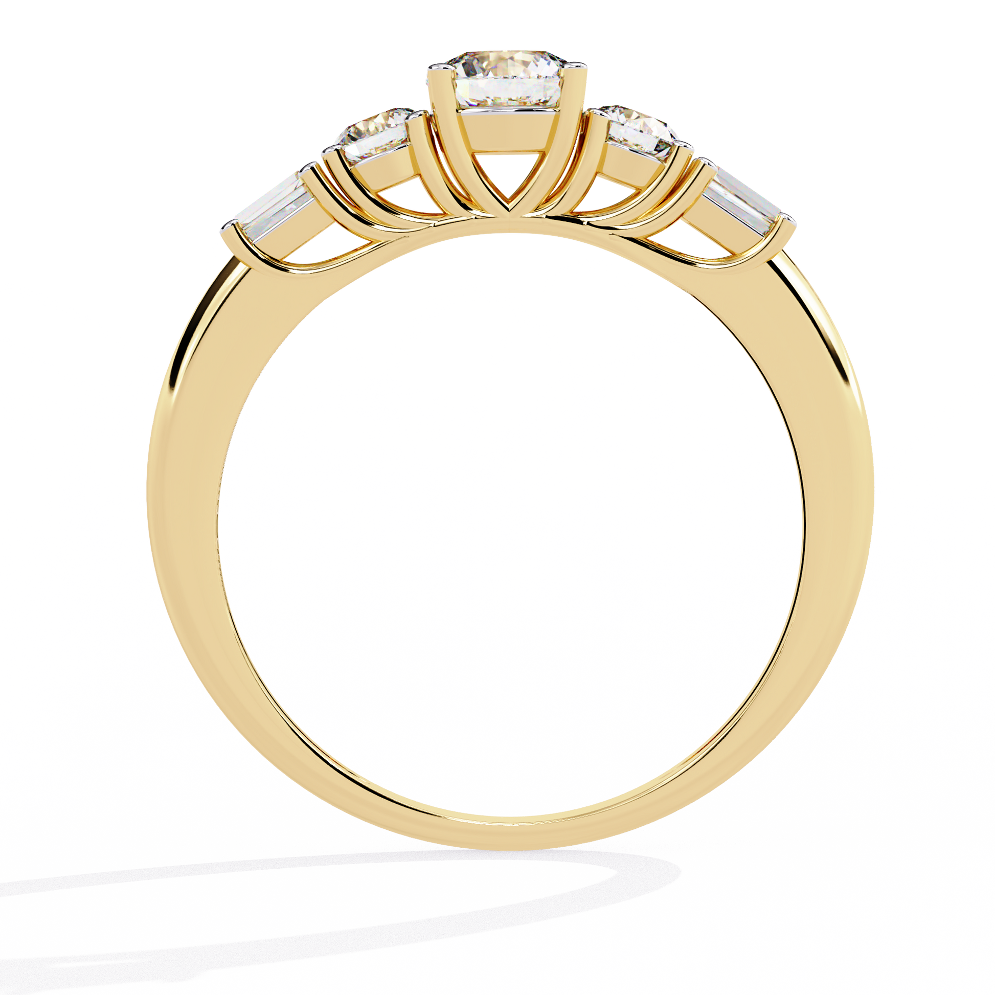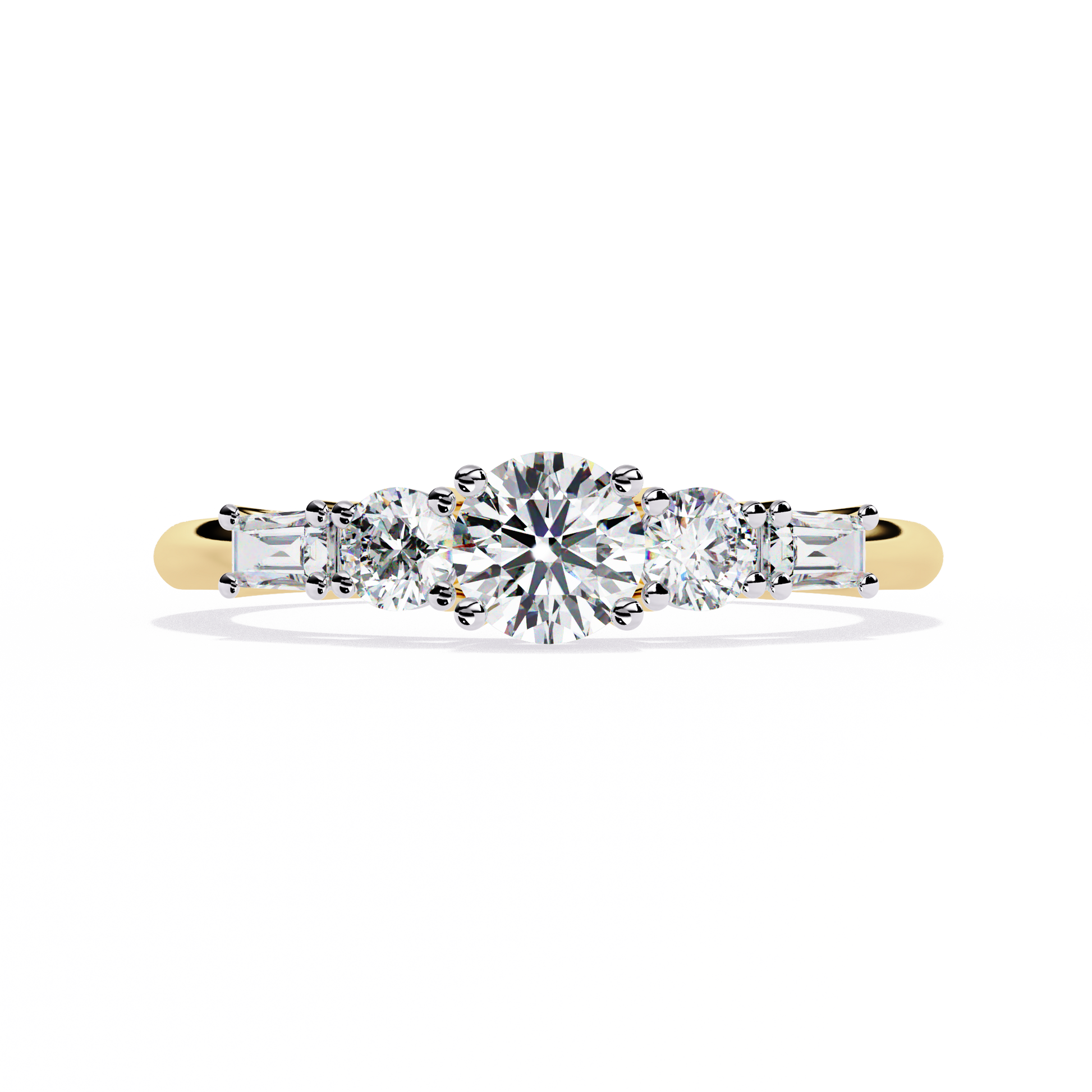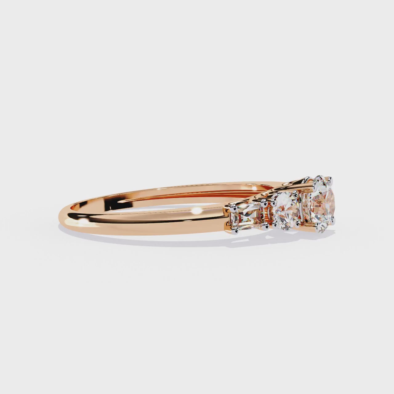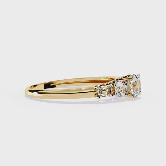 Round And Baguette Cut Lab Grown Diamond Stunning Perfect Every Day 5 Stone Ring For Her