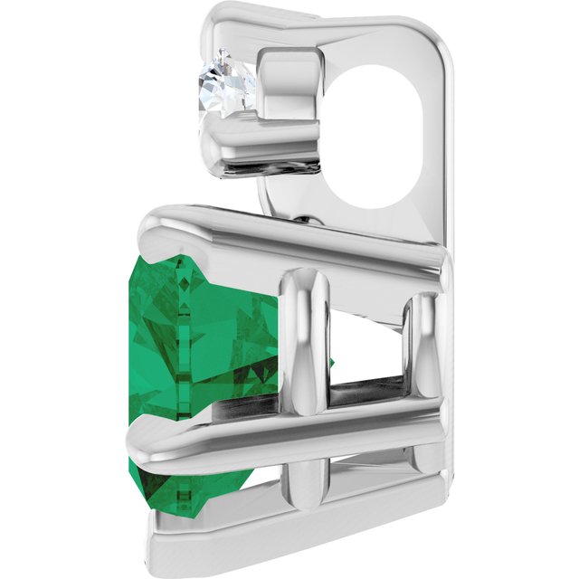 Pendant / Set / 14K White / Lab-Grown Emerald / 5 X 5Mm :: 0.03 Ct / Natural Diamond / I1, G-H / Polished / Lab-Grown Emerald And .03 Ct Natural Diamond Slide Pendant