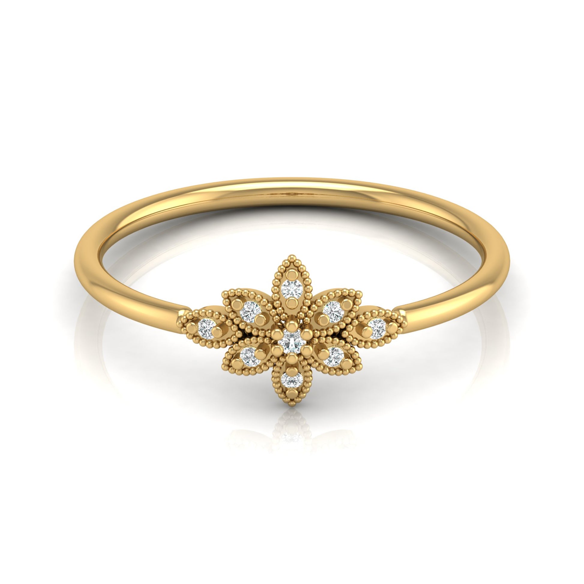 Floral Diamond Cluster Ring for Women's Elegant Flower Design Band in 18K Solid Gold