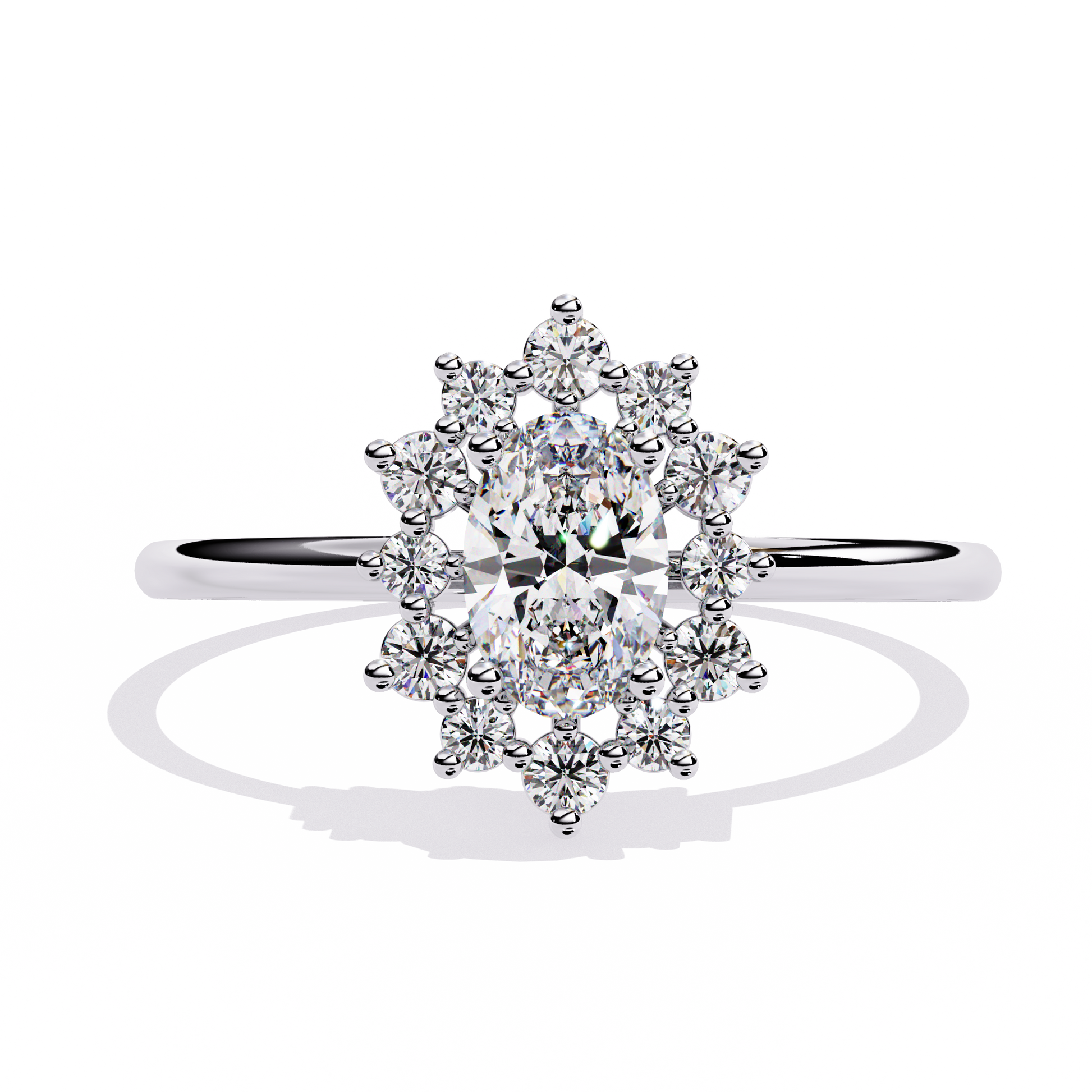 Oval And Round Cut Lab Grown Diamond Halo Solitaire Elegant Sparkling Prong Set Ring Gift For Annivrasry