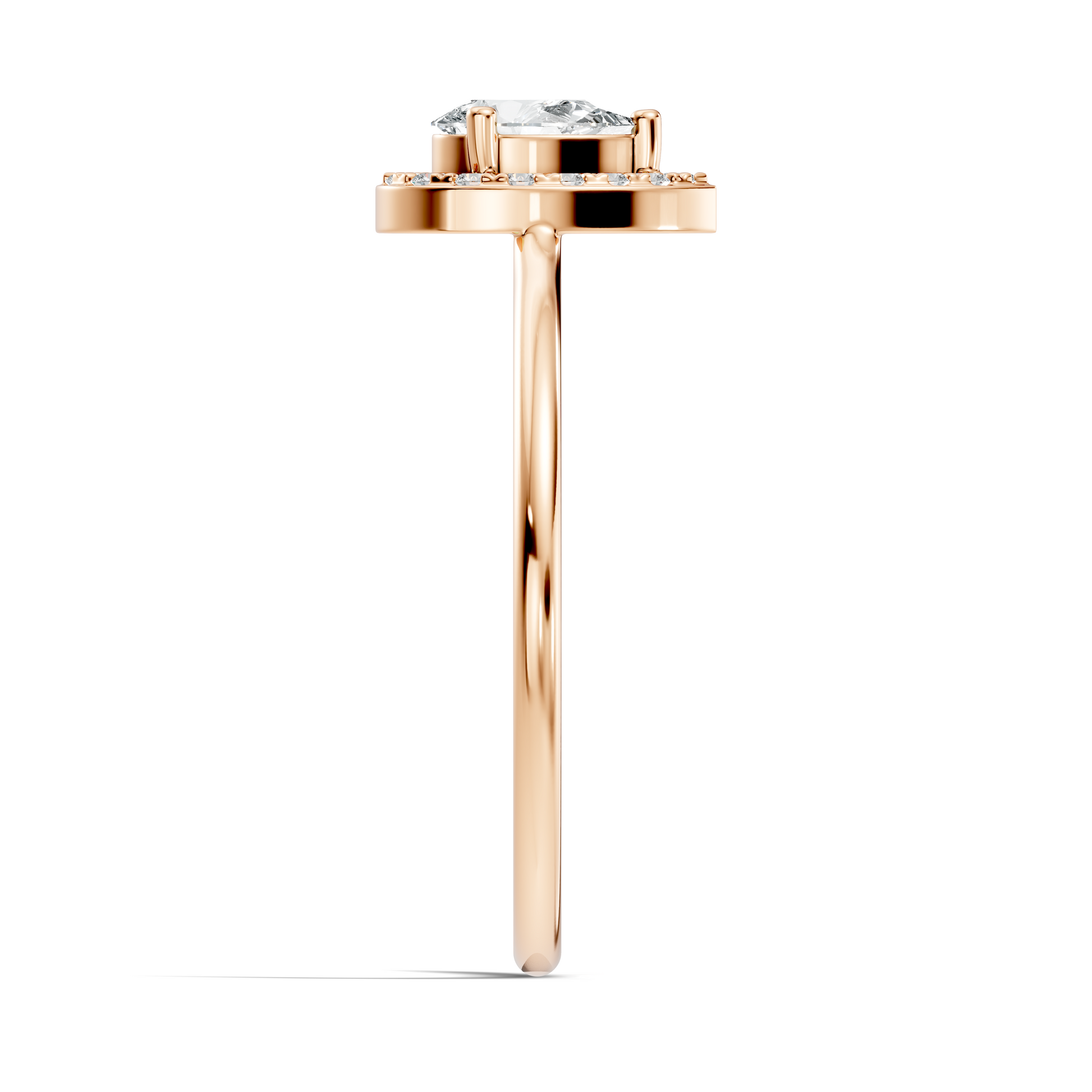 Pear and Round Cut Lab Grown Diamond Unique Delicate Vintage Halo Style Dainty Engagement Ring
