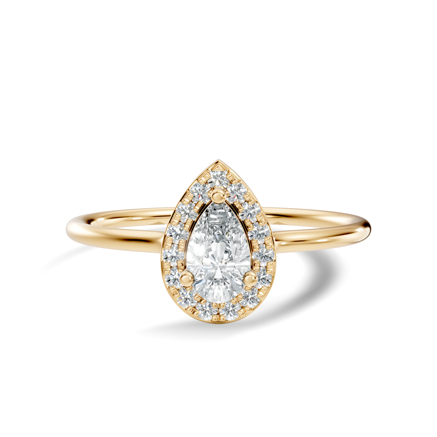 Celebrate a love as unique as hers with this 0.33Ct Pear and Round Cut Lab Grown Diamond Vintage Halo 14k Yellow Gold Engagement Ring, a dainty masterpiece that blends timeless romance with sustainable beauty. Crafted with precision, this ring features a breathtaking pear cut diamond at its center, surrounded by a sparkling halo of round cut diamonds, creating a radiant design that shines with unmatched brilliance. Celebrate a love as unique as hers with this Pear and Round Cut Lab Grown Diamond Vintage Halo Engagement Ring, a dainty masterpiece that blends timeless romance with sustainable beauty. Crafted with precision, this ring features a breathtaking pear cut diamond at its center, surrounded by a sparkling halo of round cut diamonds, creating a radiant design that shines with unmatched brilliance.