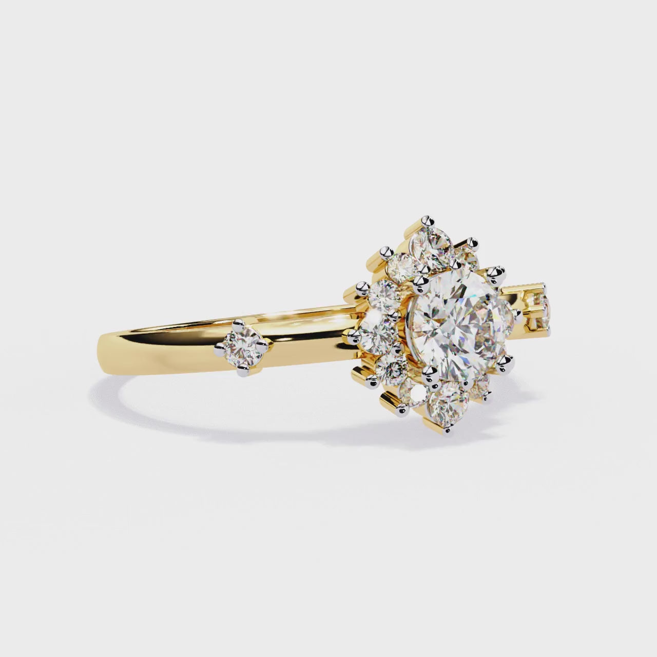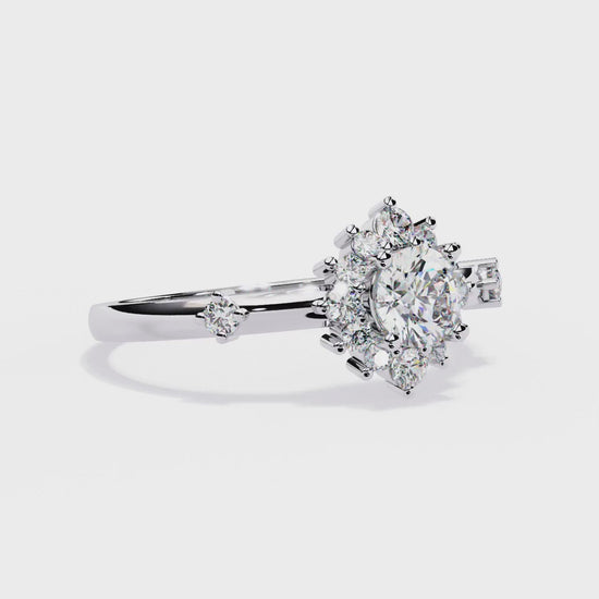 Round Cut Lab Grown Diamond Flower Shape Halo Style Prong Set Miniamlsit Promise Ring Gift For Her