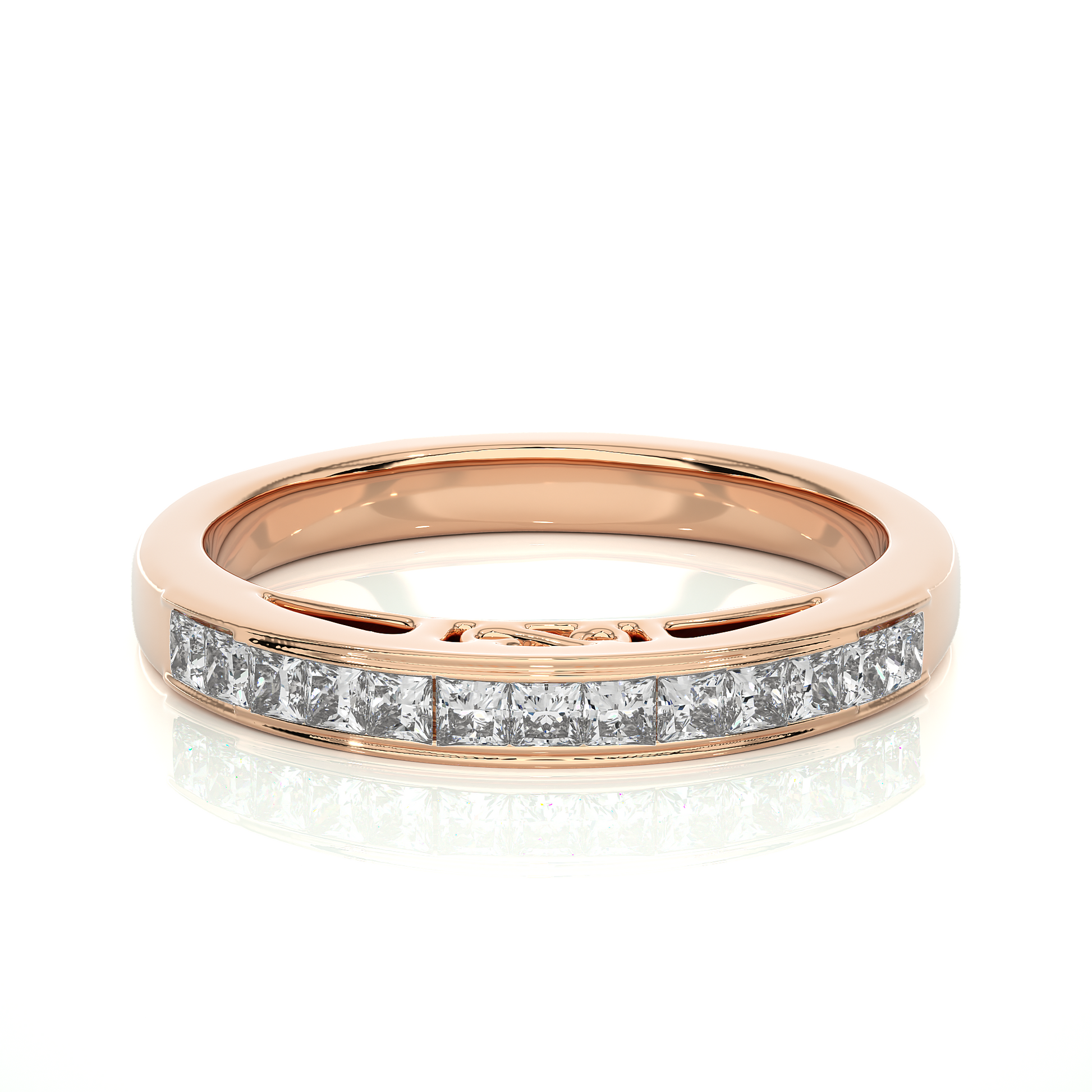 Labgrown Princess Cut Gold Half Eternity Band Ring 14K Solid Gold Stackable Band for Women's