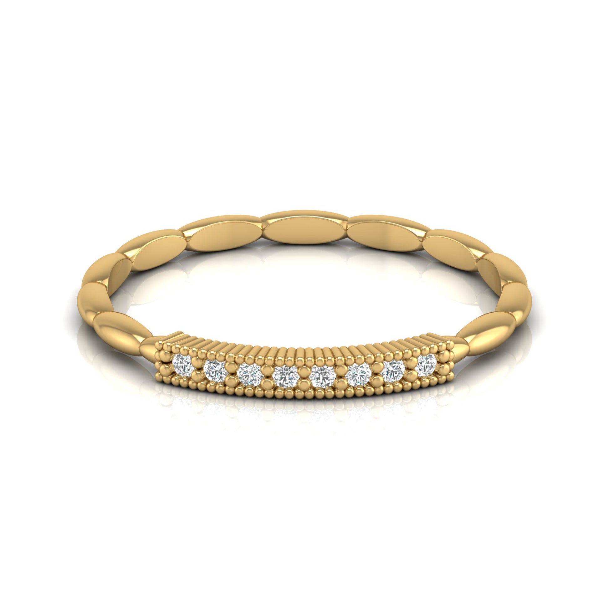 This vintage-inspired wedding band features sparkling round cut lab grown diamonds set in warm 14KT gold. Designed for timeless elegance and everyday comfort, it’s the perfect ring for her to celebrate love and commitment sustainably. Crafted with precision, this band blends classic charm with modern ethical craftsmanship.