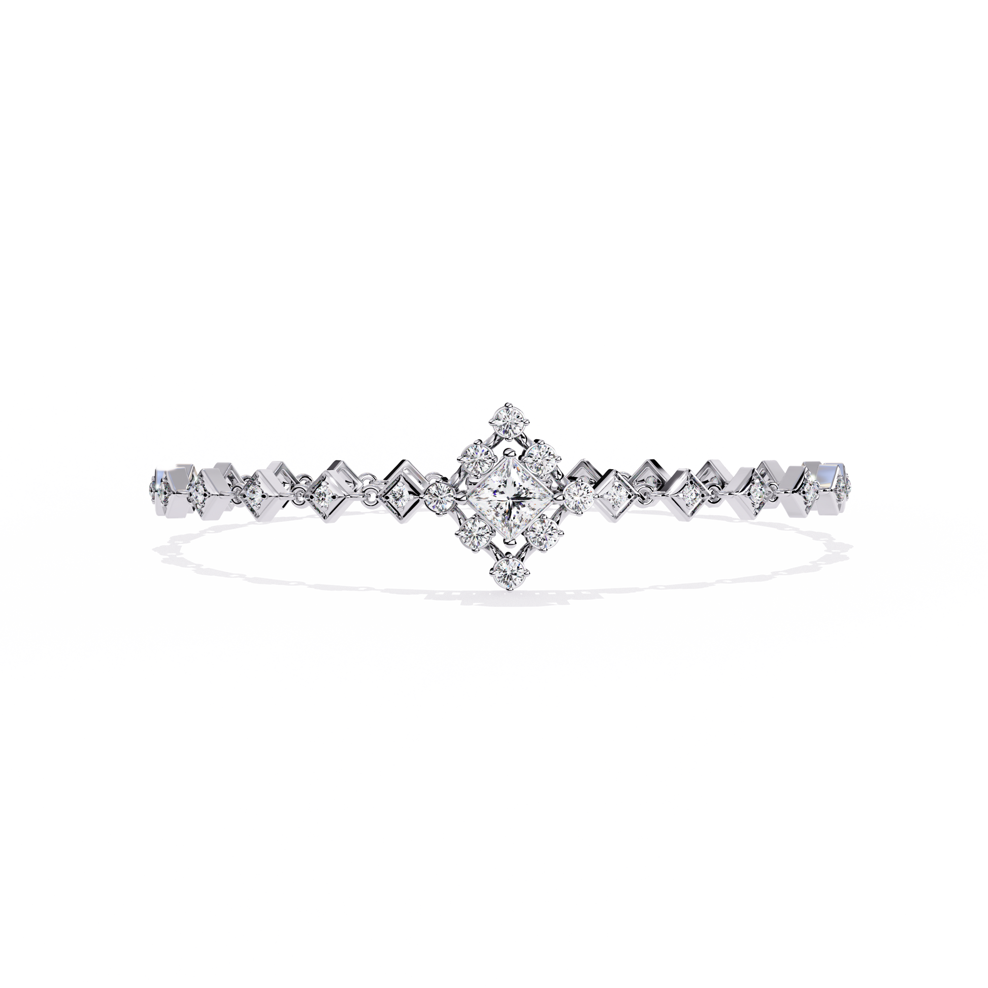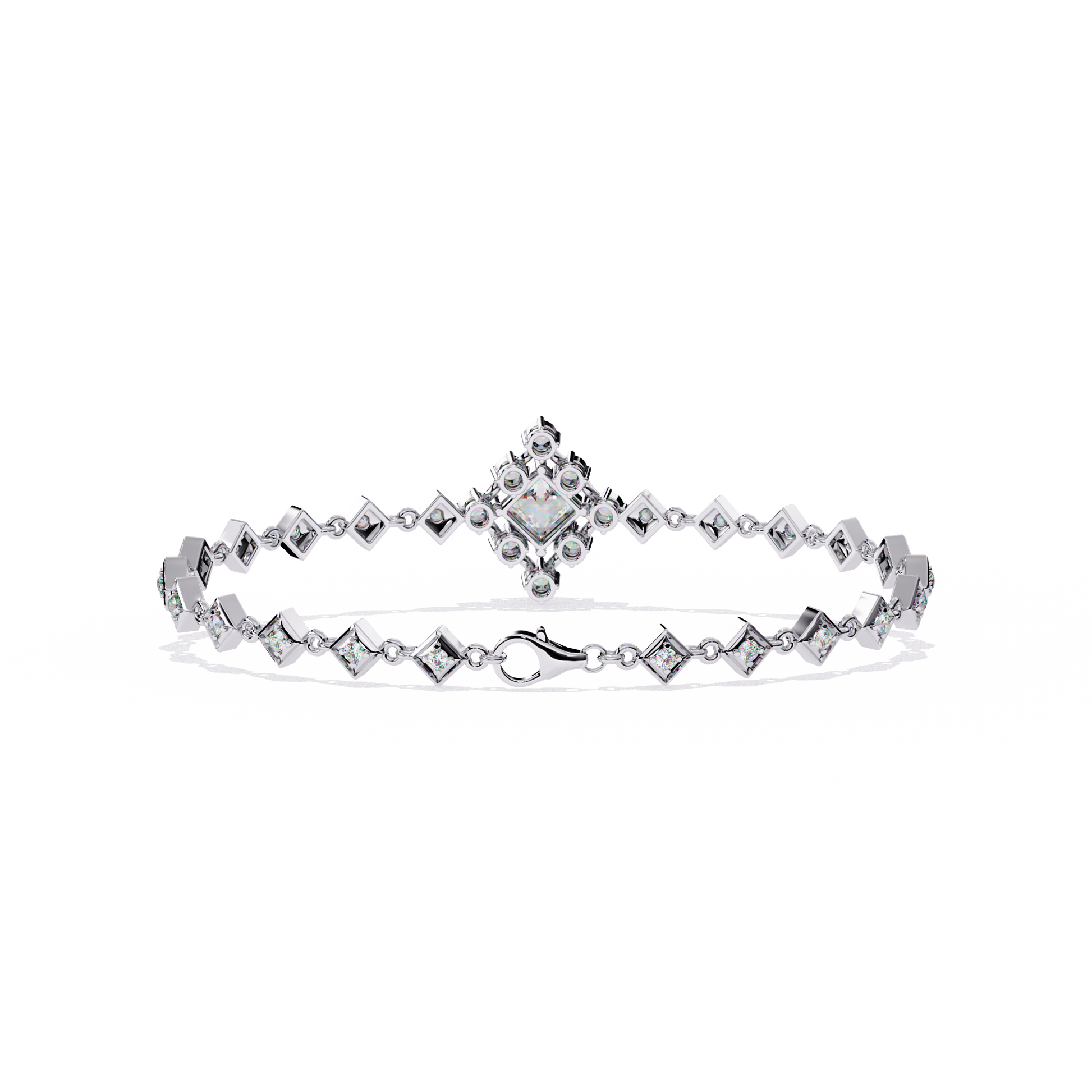 1.70Ct Princess And Round Cut Top Grade Diamond Halo Style Dainty Elegant Handcrafted Tennis Bracelet For Her