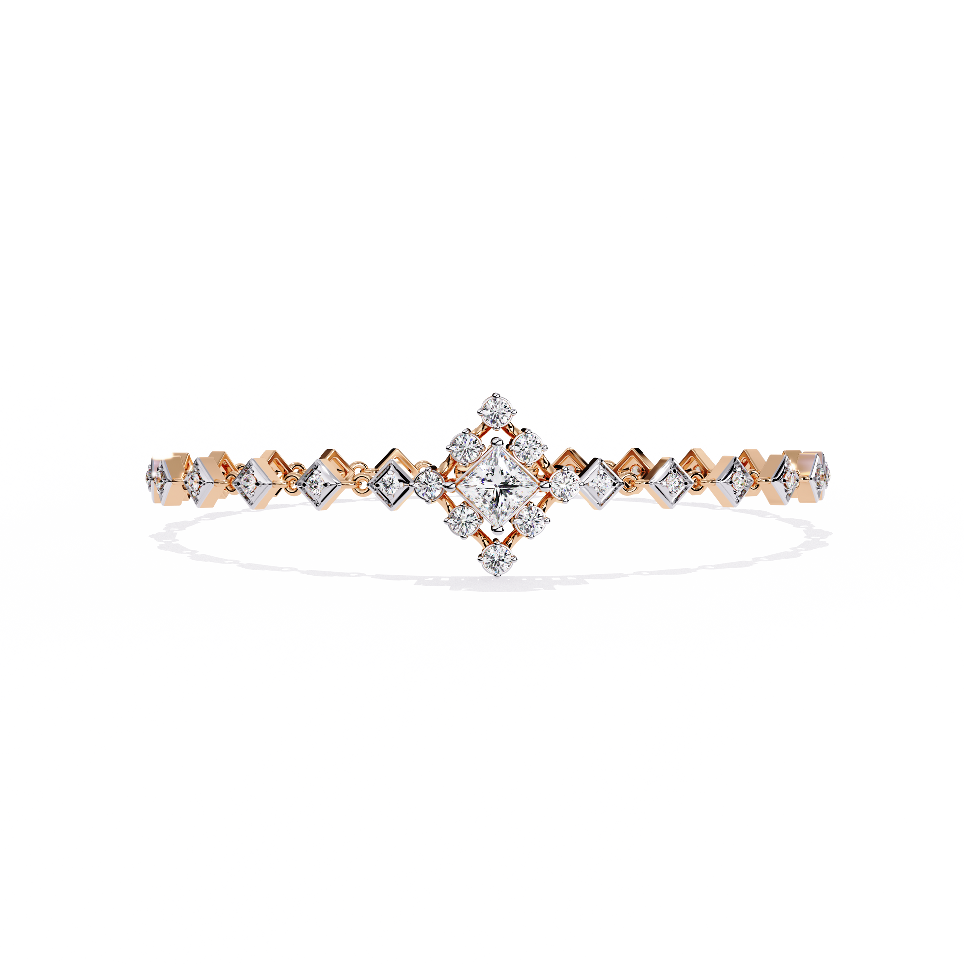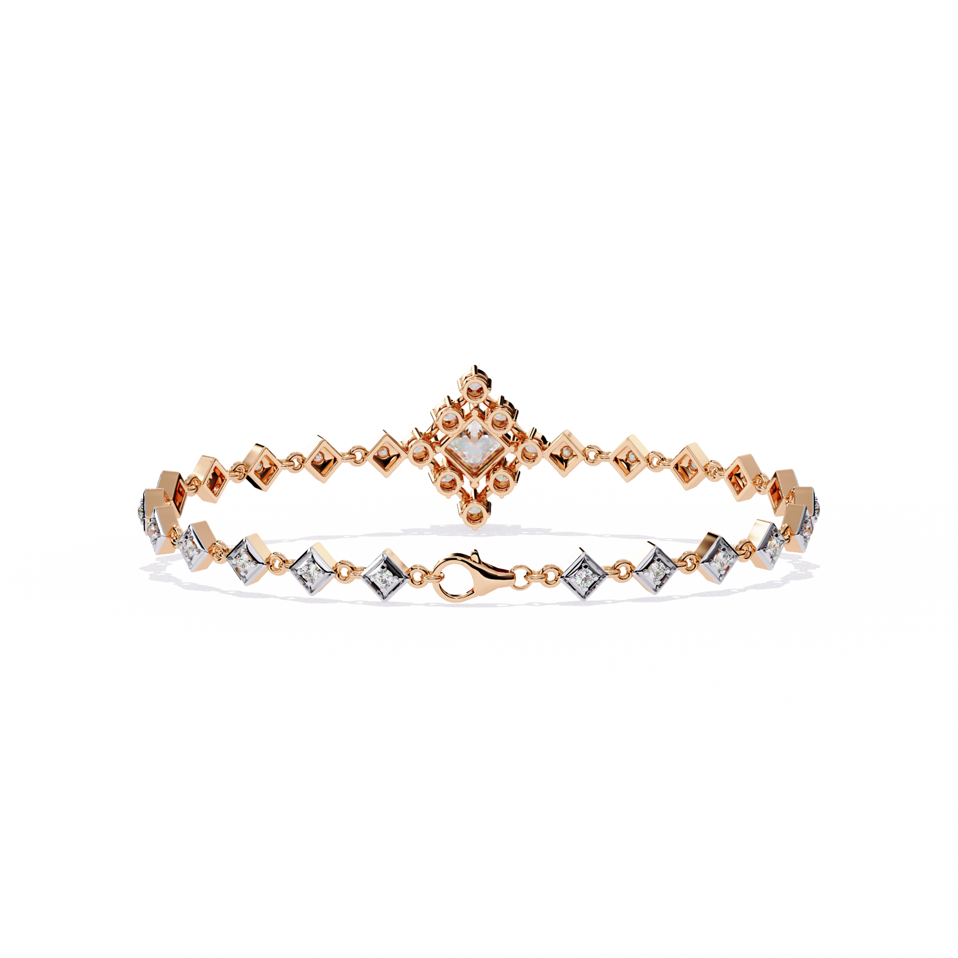 Celebrate elegance with our 1.70Ct Princess and Round Cut Top Grade Lab grown Diamond Halo Style Tennis 18k Solid Rose Gold Bracelet, expertly handcrafted for timeless beauty. Featuring a stunning combination of brilliant princess cuts and sparkling round cuts, each diamond is framed in a halo design to enhance its fire and brilliance. The dainty yet luxurious silhouette makes it perfect for bridal wear or any special occasion.