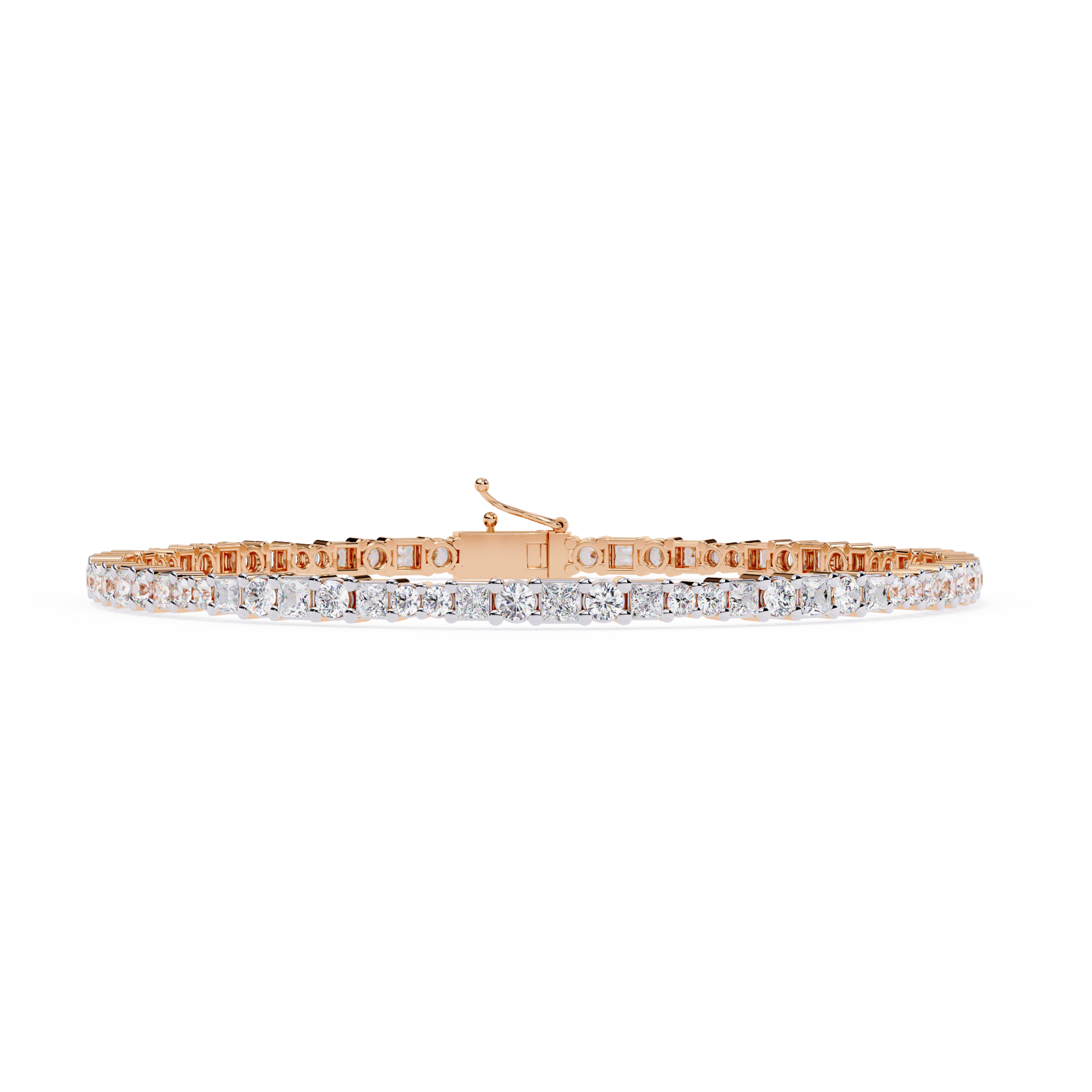 2.05Ct Round And Princess Cut Lab Grown Diamond Timeless Channel Set Dainty Tennis Bridesmaid Bracelet For Her