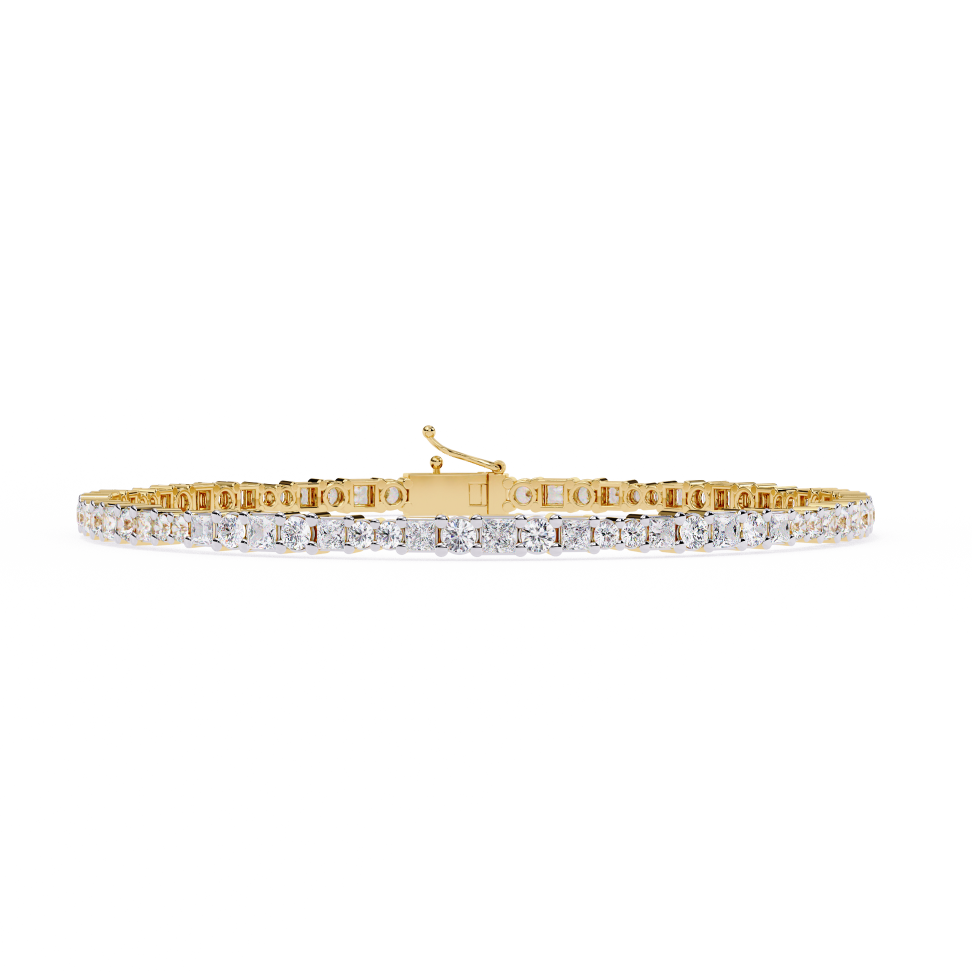 Timeless and elegant, this 2.05Ct Round and Princess Cut Lab Grown Diamond Tennis 18k Solid Yellow Gold Bracelet features a sleek channel setting for a refined, dainty look. Perfect as a bridesmaid gift or a meaningful piece for her, this bracelet blends classic charm with modern craftsmanship